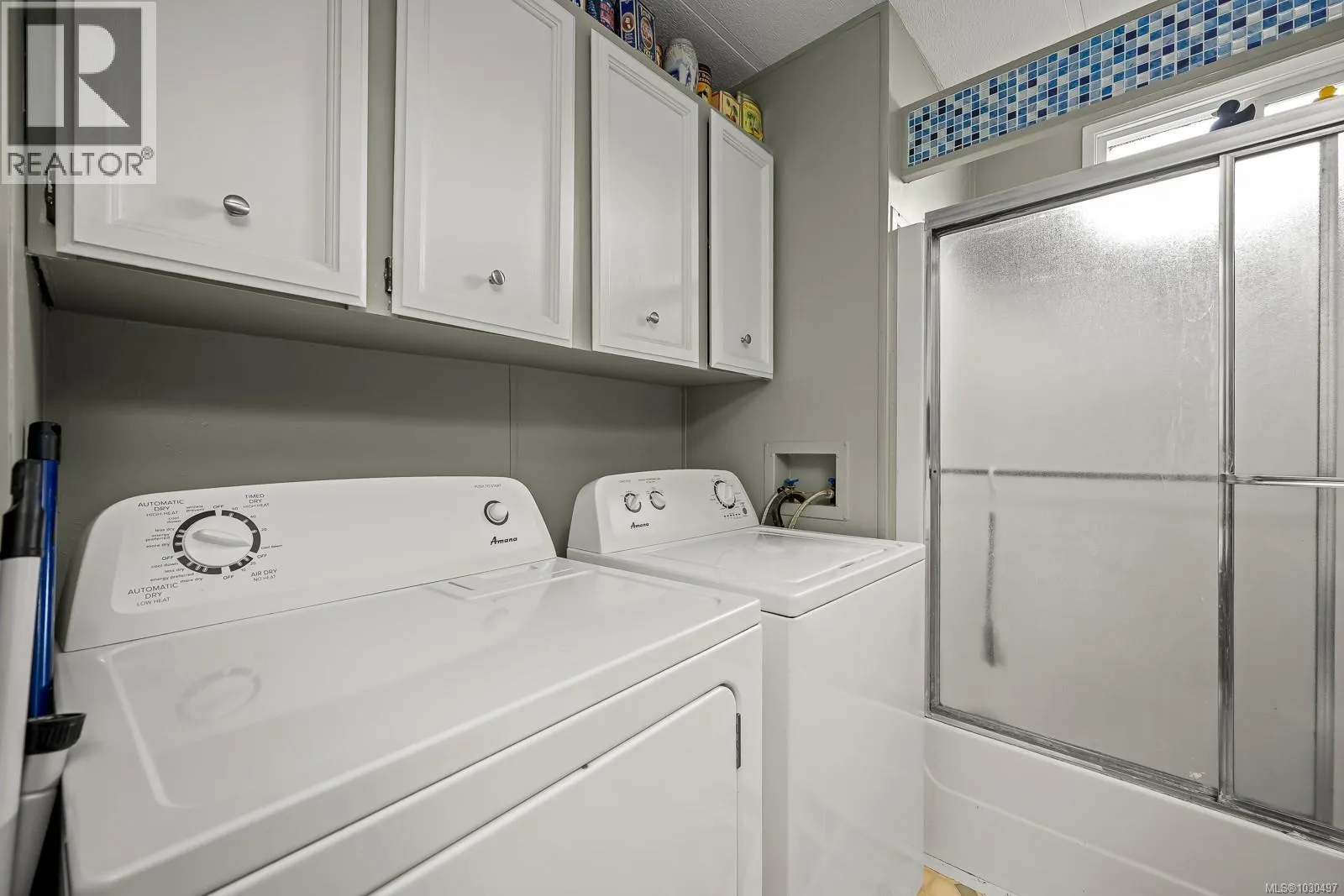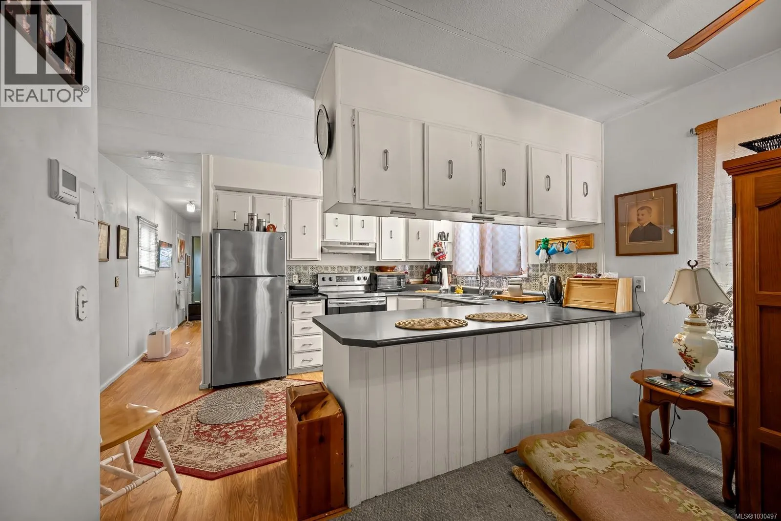 Welcome to the quiet side of the street at Uplands Manufactured Home Park, where comfort, convenience, and lifestyle come together â and yes, your pets and children are welcome here too. This well-cared-for 2-bedroom, 1-bathroom manufactured home offers a wonderful opportunity for those seeking affordable living in a central Courtenay location. Over the years, the current owner has thoughtfully maintained and improved the home, completing important updates such as vinyl siding on the back and sides, upgraded vinyl windows, and a durable torch-on roof. In the past year, the home has seen even more upgrades with a full set of new appliances, including the fridge, stove, dishwasher, washer, and dryer, along with a brand new hot water tank installed this year. Another valuable feature is the absence of Poly-B plumbing, offering added peace of mind. Inside, the layout is functional and bright, with comfortable living spaces that feel welcoming from the moment you walk in. There is still room to add your own decorating touches, but the home is clean, cared for, and move-in ready â ideal for downsizers, first-time buyers, or anyone looking to simplify without compromise. Step outside to a spacious backyard area with plenty of room to garden, unwind, or enjoy the outdoors. Itâs a peaceful setting, tucked along the quieter side of the park, where you can truly relax. Location is everything, and this one delivers. Youâre just minutes from North Island College, Thrifty Foods, Costco, Tim Hortons, Home Depot, and the Comox Valley Hospital, with the added convenience of being on the bus route. This is a home where practicality meets possibility â with the added bonus of being pet-friendly, so your whole family is welcome. A solid investment, a comfortable place to land, and a space you can truly make your own. (id:27476)