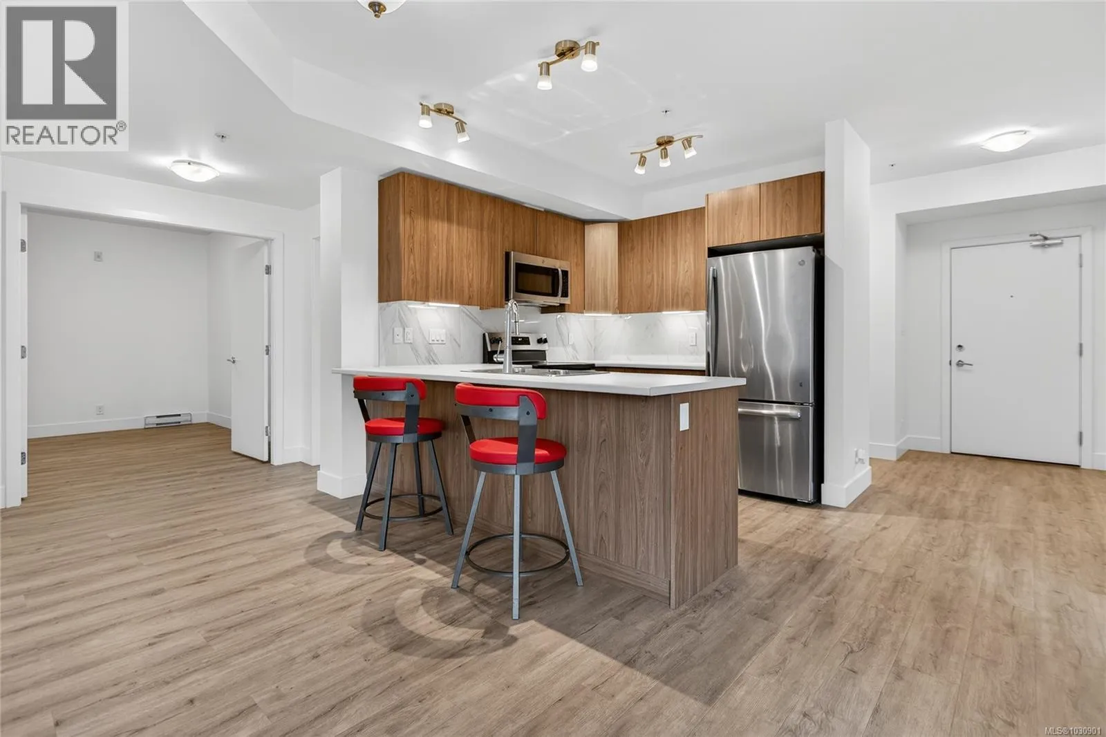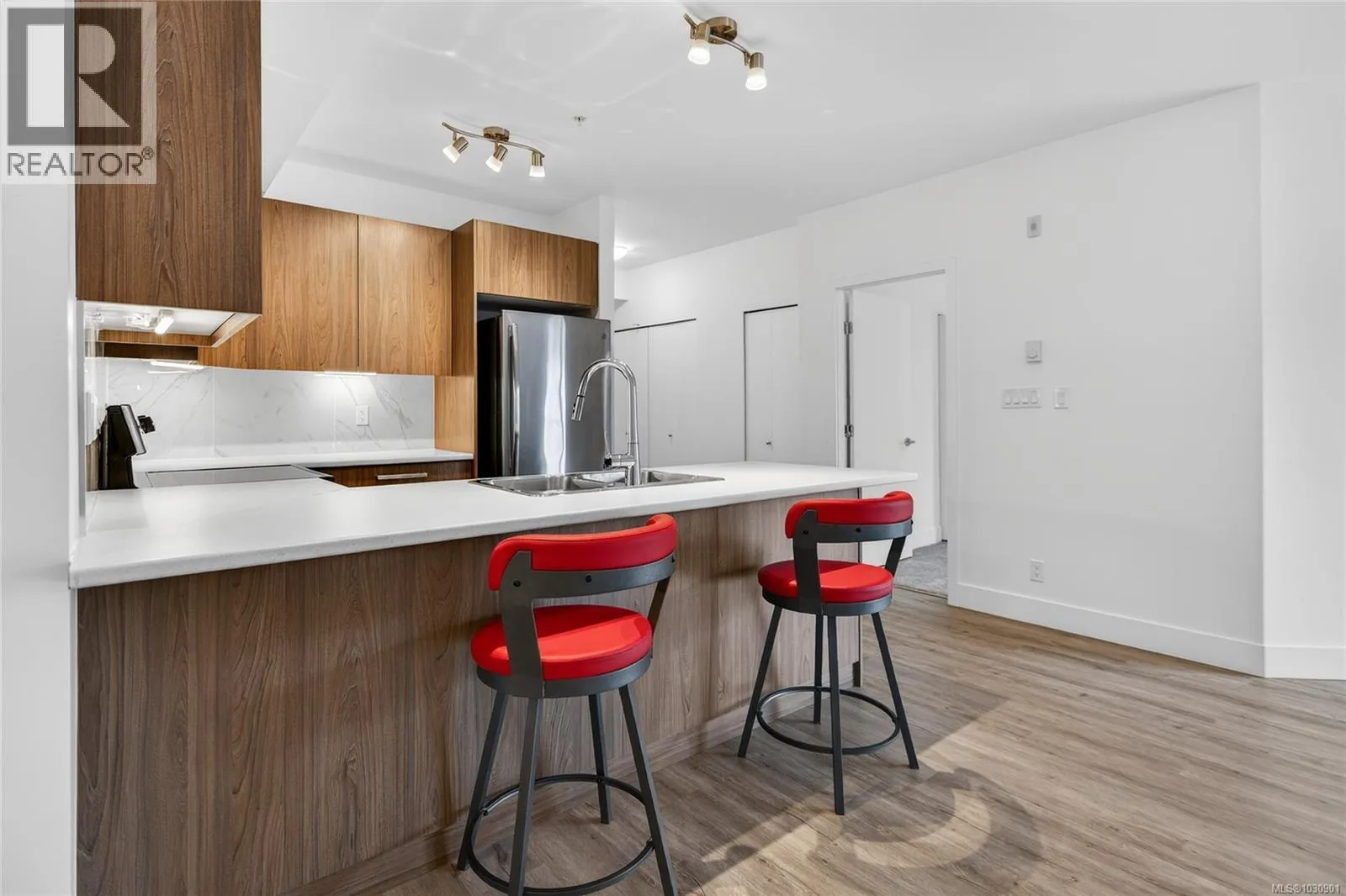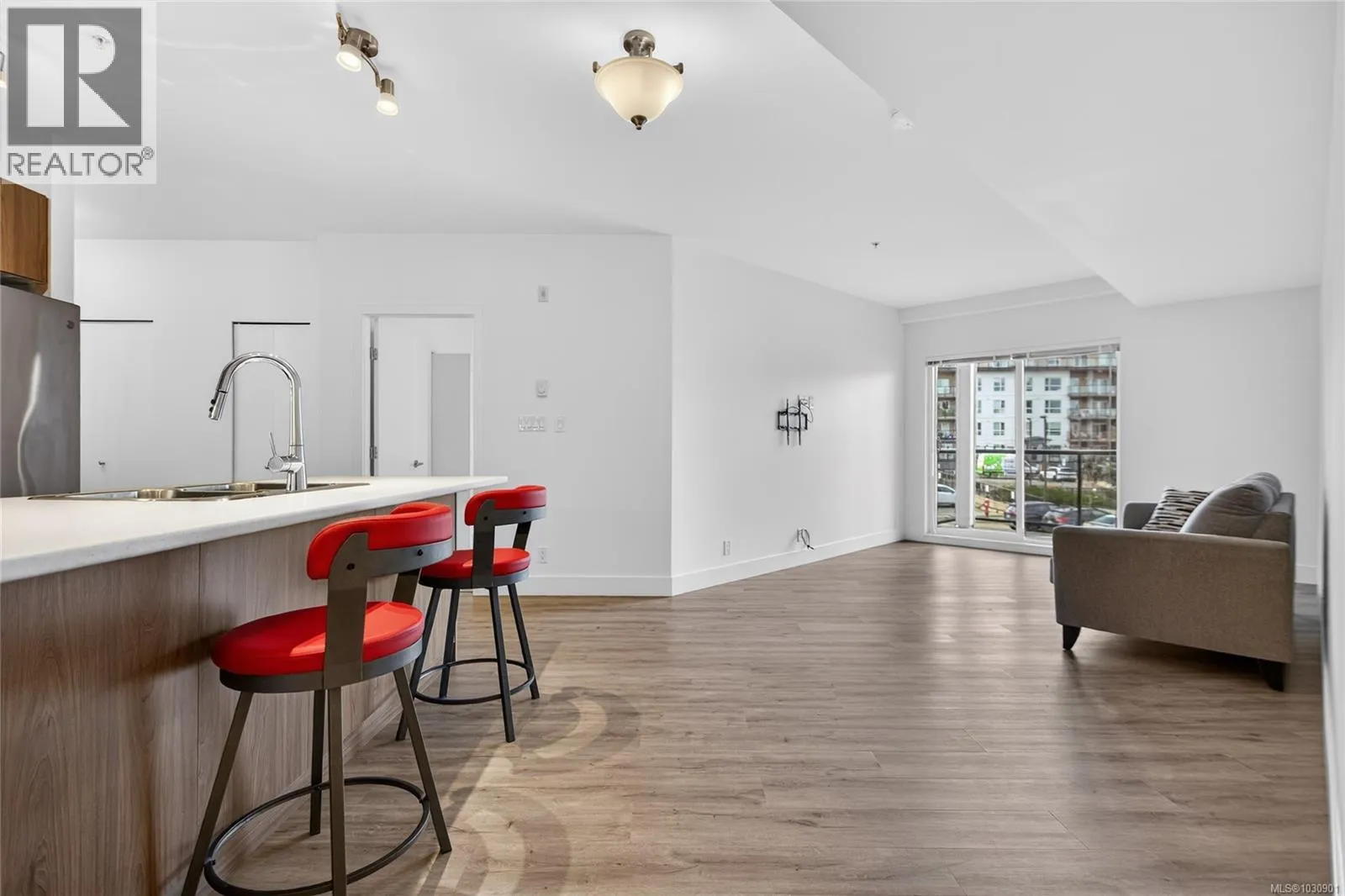 Relax and enjoy life at Newport Village with this bright and inviting second-floor condo. Designed with comfort and functionality in mind, the open-concept layout features a modern kitchen with quartz countertops that flows effortlessly into the dining and living areas, creating a warm and welcoming space for both everyday living and entertaining. The spacious primary bedroom offers a walk-through closet that leads to a well-appointed four-piece ensuite, providing a private and practical retreat. A versatile den adds flexibility for a home office, guest space, or hobby room. This home also includes an underground parking stall for added convenience. Ideally located just minutes from Walmart, Driftwood Mall and the scenic trails of the Millard Creek network, you will enjoy easy access to shopping, recreation, and nature right at your doorstep. A perfect opportunity for those seeking low-maintenance living in a central and connected location. (id:27476)