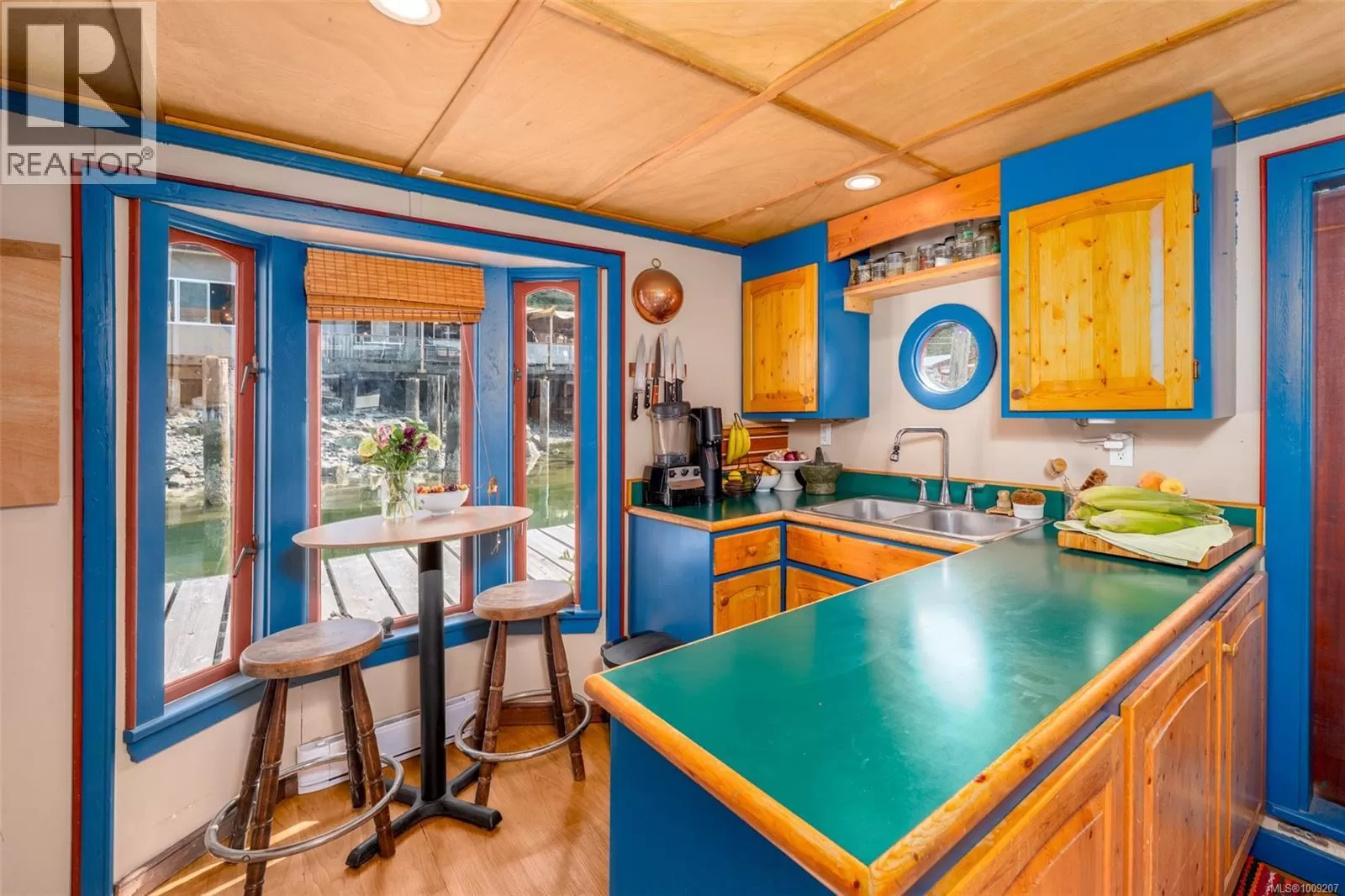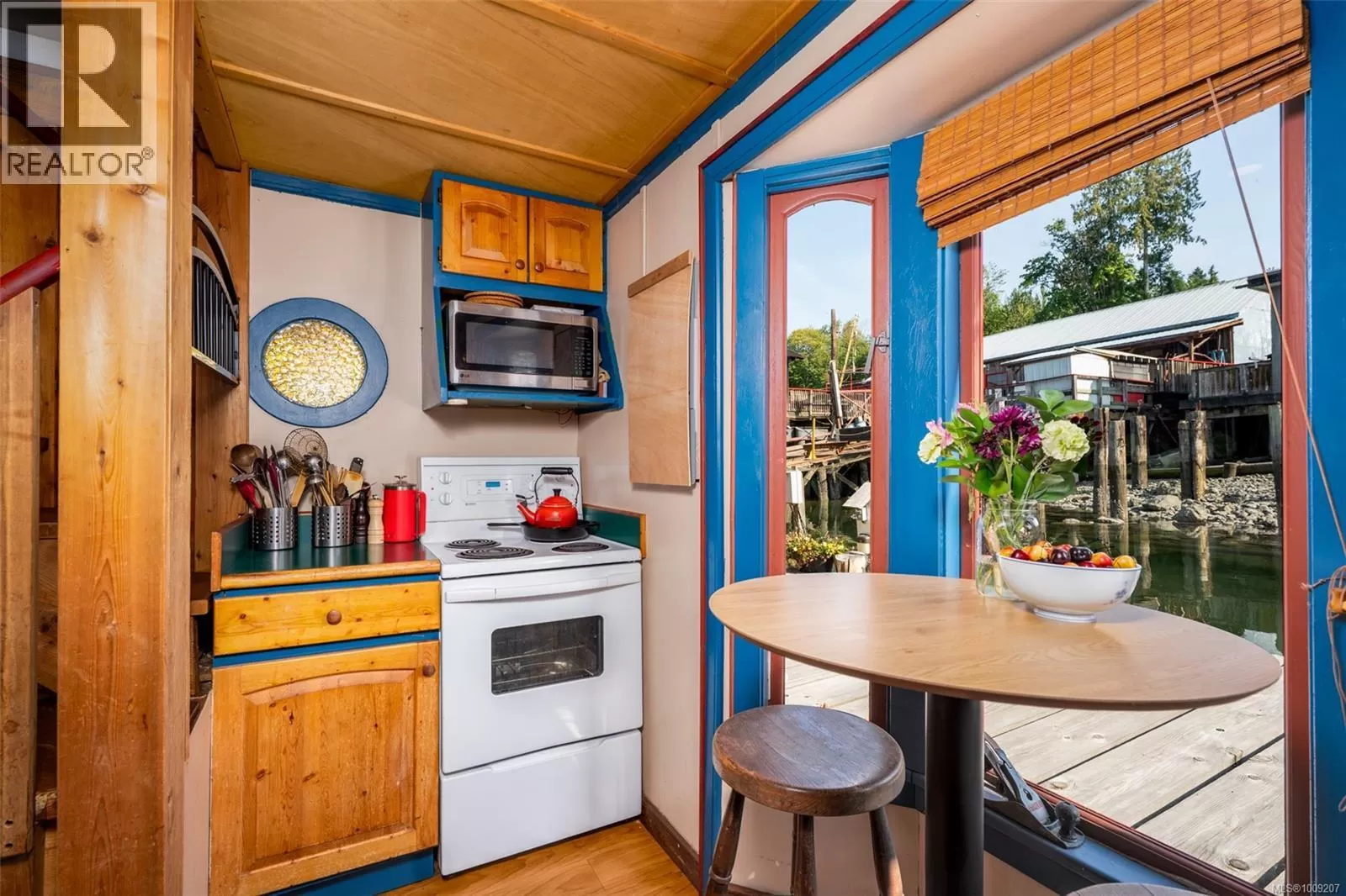 ICONIC COWICHAN BAY FLOAT HOME! Brimming with coastal charm, this iconic 2-bed, 1-bath float home captures the heart of Cowichan Bay living. With unobstructed views of the bay and Mt. Tzouhalem, an open-concept interior, and a private balcony off the primary bedroom where you can watch both sunrise and sunset, itâs a true sanctuary on the water. A longtime inspiration for artists throughout the Cowichan Valley, this unique home is located in Bluenose Marinaâsteps to cafés, shops, and the beloved Maritime Centre. Moorage includes water, sewer, garbage, recycling, and one parking stall. Book your showing today! Please do not enter the marina without an approved appointment https://my.matterport.com/show/?m=LUGH3d9a4v8 (id:27476)
