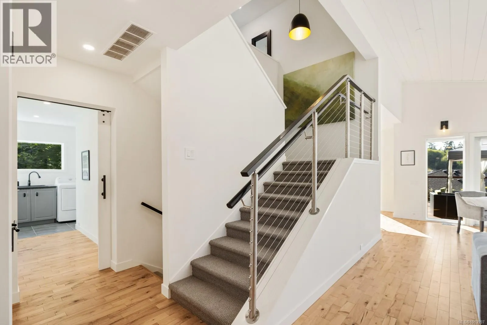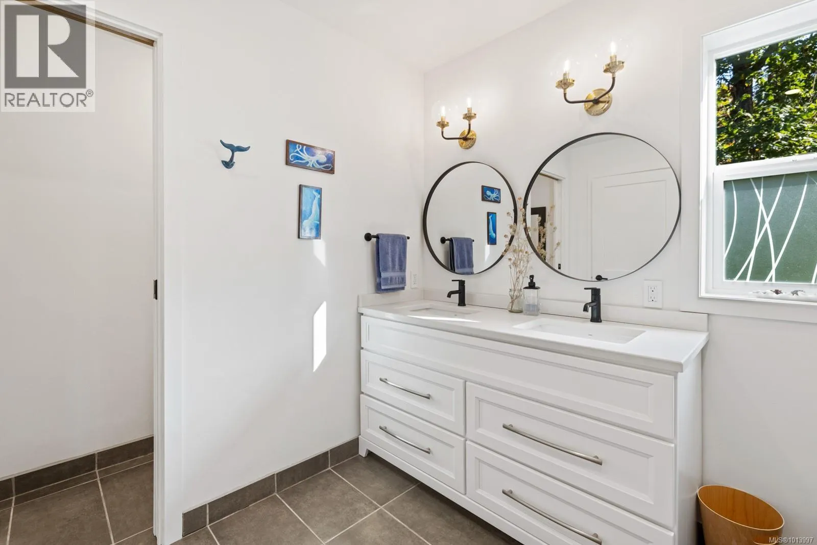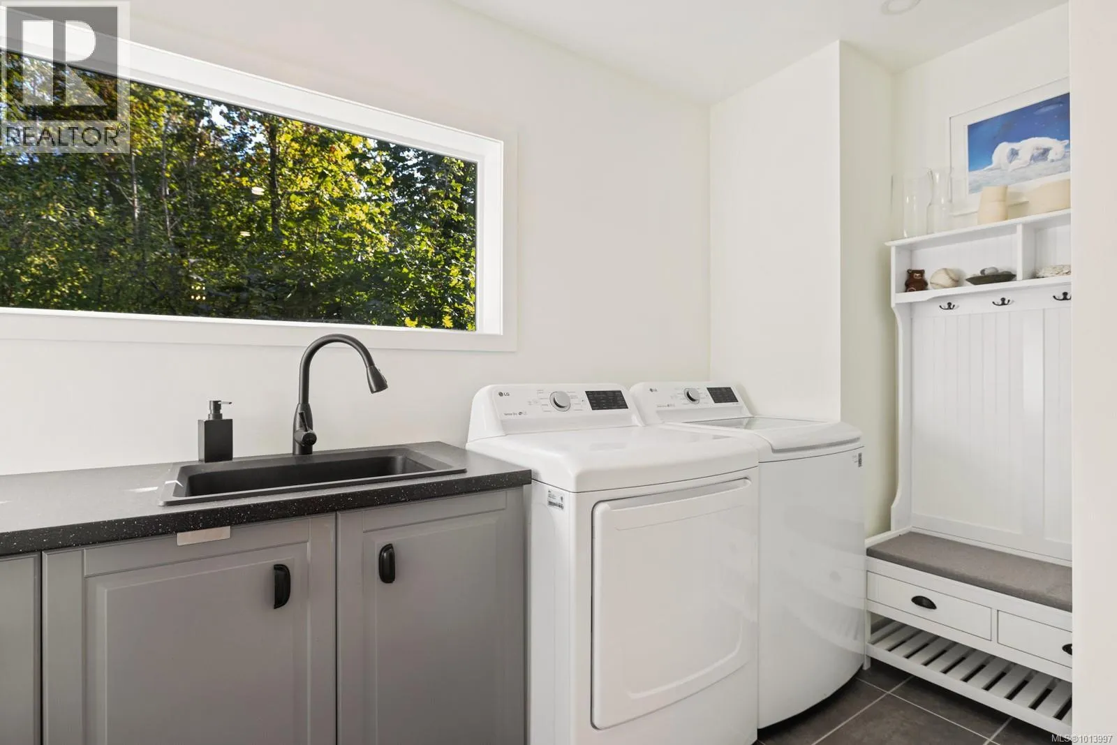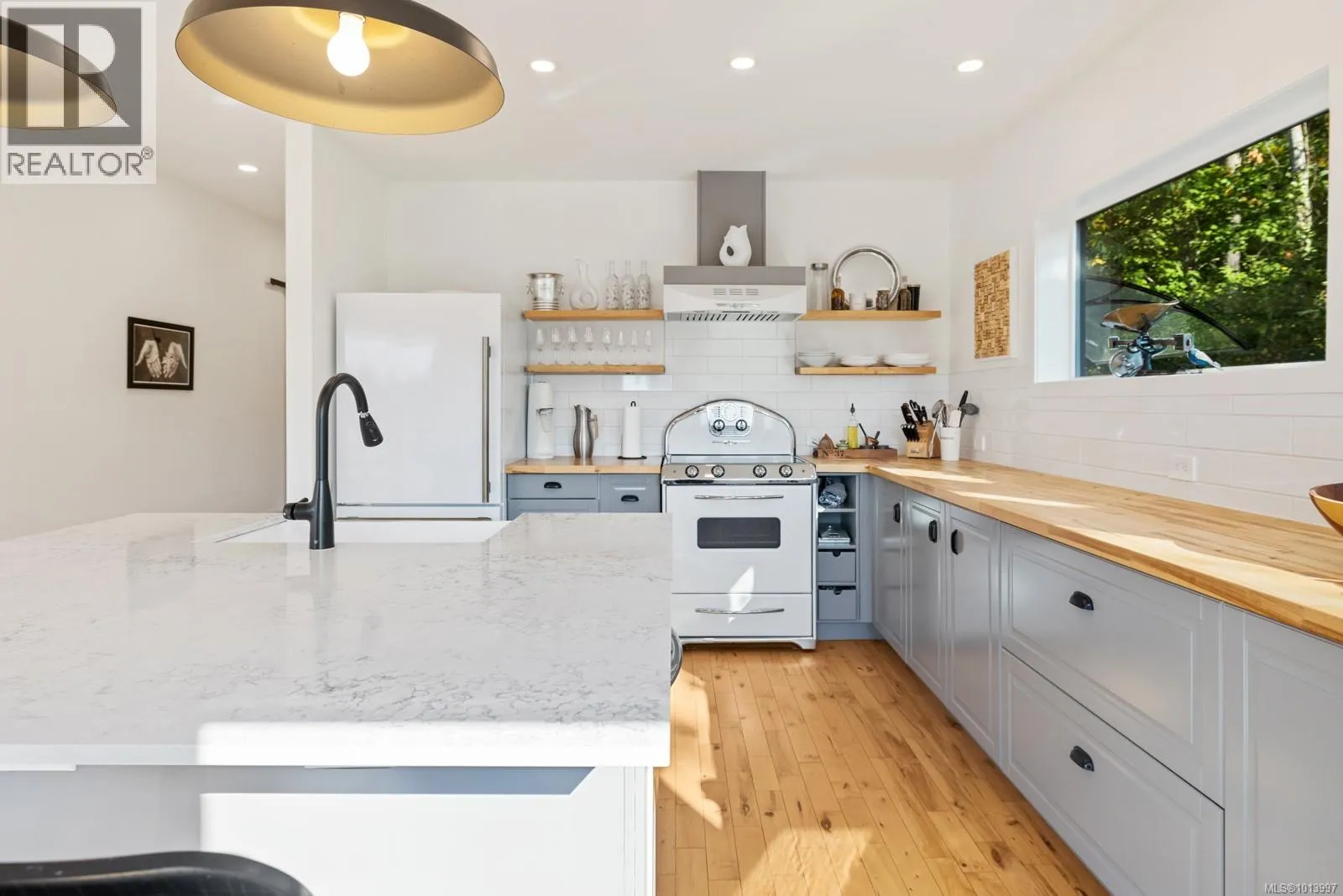 Welcome to 1784 Vee Road, Cowichan Bay. The covered entrance welcomes you into this architecturally designed home. The vaulted living room is filled with natural light that creates a wonderful, welcoming space. Flowing through the dining room, with its huge picture window to the Kitchen, featuring butcher block counters, a large central island and access to the entertainment sized rear patio. This west facing patio overlooks the fully fenced back yard, with fruit trees and very productive garden beds. The spacious primary bedroom is a relaxing space with private roof-top patio, as well as a 4 pcs ensuite and walk-in closet. There are two additional bedrooms on this level, complemented by a 5 pcs bath. Down is a one bed suite with its own entrance, great kitchen & island and a large bedroom with 3pcs ensuite. This is an excellent home in a highly desirable Cowichan Bay neighbourhood. (id:27476)