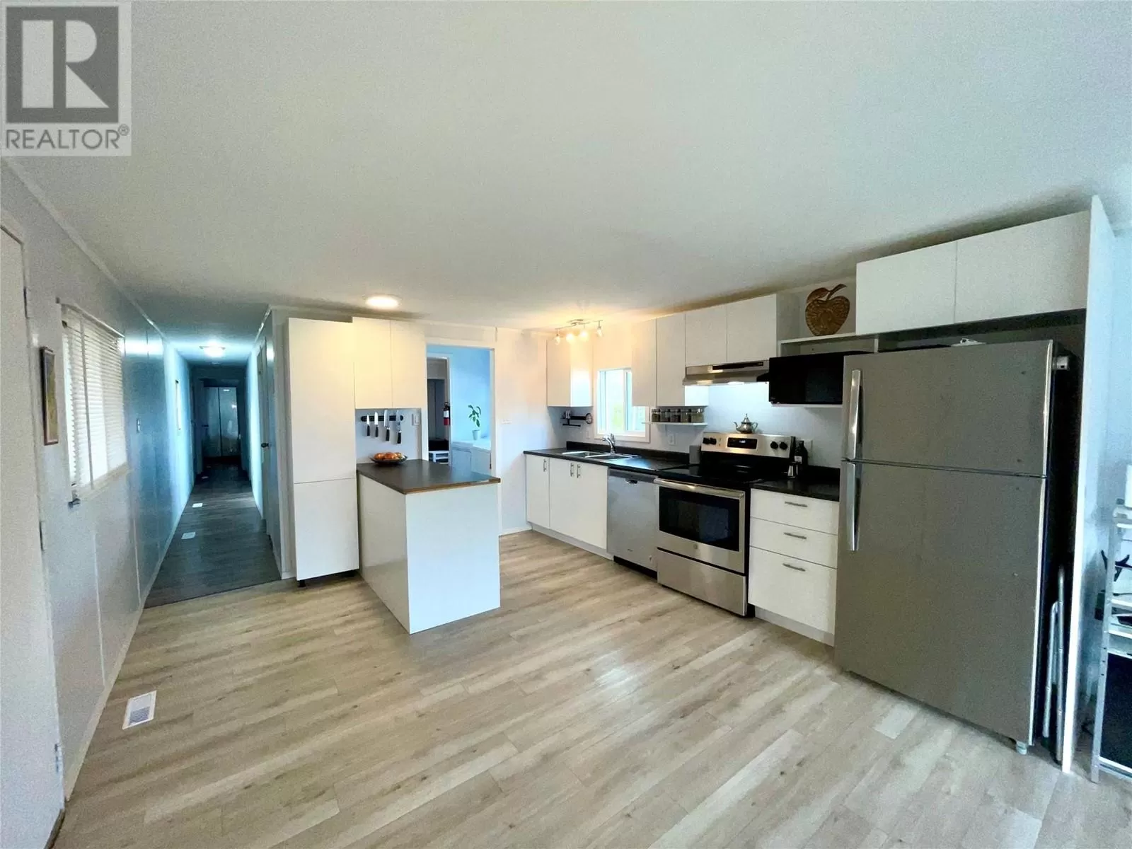 Welcome to this beautifully renovated 2 bedroom 1 bathroom modular home on its own spacious lot in a quiet cul-de-sac. The generous lot size leaves plenty of room for a garage or addition. There is newly installed vinyl plank flooring throughout the house, freshly painted interior walls in a neutral palette, modern kitchen cabinets with new stainless steel appliances including a sleek refrigerator, stove and dishwasher, as well as new fixtures throughout the home. The bathroom is updated with a new bathtub, tub surround, toilet and vanity. The plumbing has been updated and insulation was replaced in most of the walls to ensure energy efficiency and comfort year-round. An efficient furnace installed in 2024, air-conditioning 2025, and a 3 year old hot water tank gives peace of mind for reliable heat and hot water supply. The roof was replaced in 2015. A new back door and steps were recently installed, awaiting a future deck with mountain views. Enjoy outdoor gatherings around the fire pit in the fenced backyard, perfect for entertaining or relaxation. The expansive yard has a mature apple tree and vibrant perennials adding a touch of natural beauty to the landscape. This property offers a peaceful retreat with all the comforts of modern living. Located in Panorama Heights near the Community Forest where world class Mountain Biking and Hiking trails await. (id:27476)