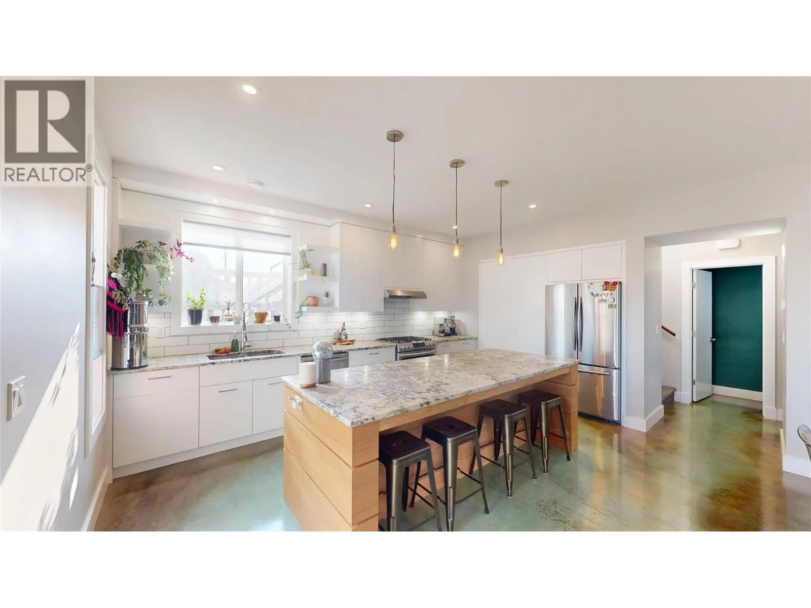 Step inside 1605 4th Street North and discover a home where every detail has been designed for comfort, connection, and lasting quality. Built in 2019, this modern masterpiece welcomes you with soaring ceilings, oversized windows, and heated concrete floors that make the main level feel both bright and cozy. Gather around the wood-burning fireplace, cook with ease on the gas stove, and host family and friends at the massive kitchen island, complete with custom cabinetry, granite counters, walnut accents, and an office nook to keep life organized. Upstairs, the primary suite is a true retreat with a walk-in closet, custom built-ins, and a sleek ensuite, while two additional bedrooms, a full bath and upstairs laundry bring everyday convenience. Step out to the expansive rooftop deck with fantastic views and its extended roof for shade. Perfect for summer barbecues, evening cocktails, or quiet nights under the stars. Outside, youâll find three-zone irrigation, a serene backyard, alley parking, and a custom shed with firewood storage. The heated two-car garage is built for more than just vehicles, featuring 220 power and workshop potential. With extras like air conditioning, on-demand hot water, central vac, surround sound, custom built-ins throughout, and double-insulated exterior walls, this home is as efficient as it is beautiful. 1605 4th Street North isnât just a house. Itâs where style, function, and comfort come together. (id:27476)