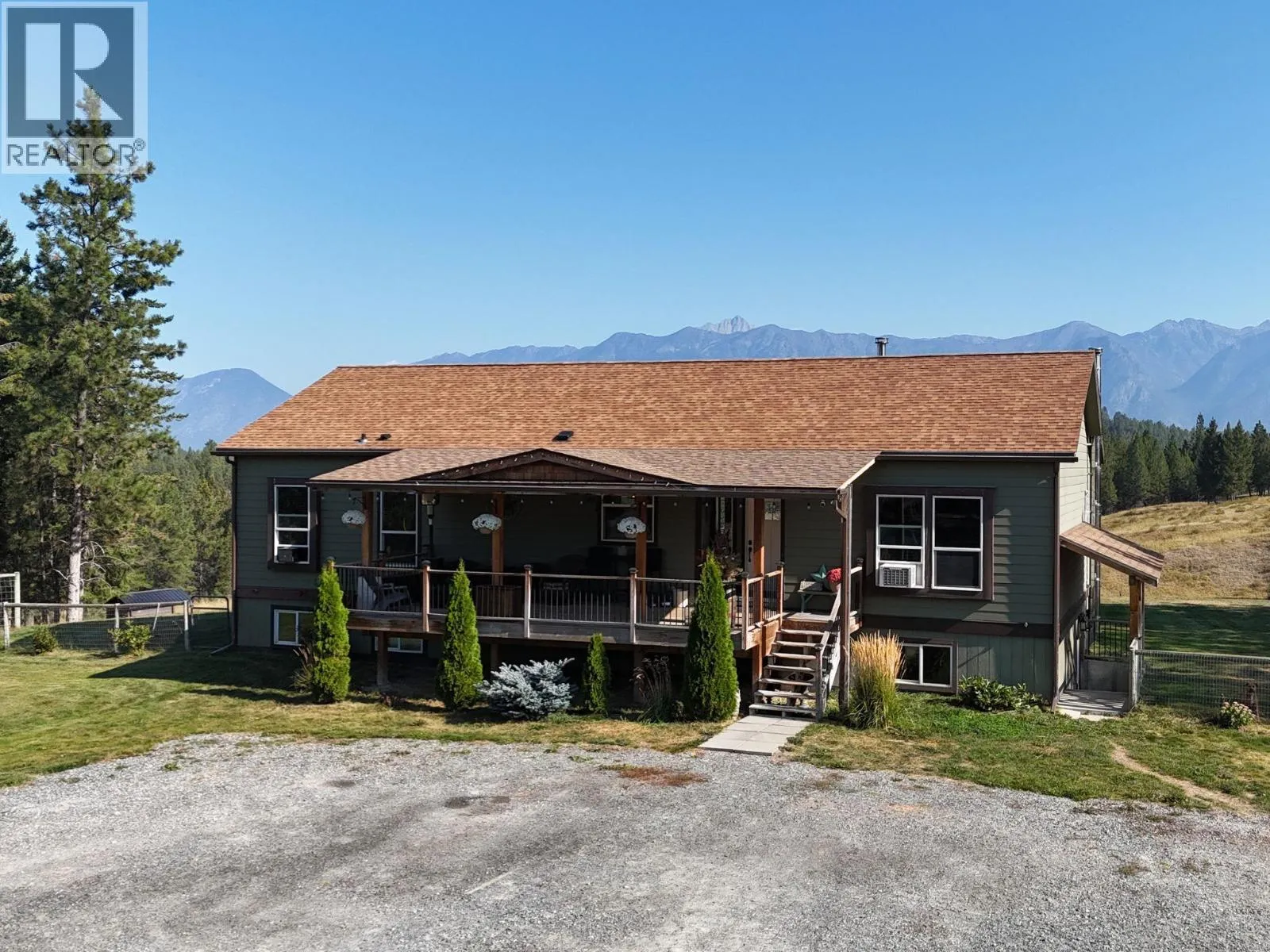 Just 10 minutes from Cranbrook is paradise found! On 19.768 fully fenced and cross fenced, gently rolling acres with a 180 degree view of our glorious Rocky Mountains. The property is separated from the Kootenay River by Crown Land! This is your opportunity to embrace the beauty of nature and freedom to roam freely. Your beautiful home was built in 2012 and features 1610 square feet per floor with 3 +1 bedrooms, 3 bathrooms, 9 foot ceilings both up and down. A cozy woodstove graces the living room and also one in the rec room to add comfort and take the edge off the heating bill. With a covered front verandah adding to the ""Ranch"" look, and a large sundeck to enjoy the view and nature off the dining room and watch your horses roam. With a barn, arenas, fire pit area and a well that produces 50 gpm, this setting is simply stunning. (id:27476)