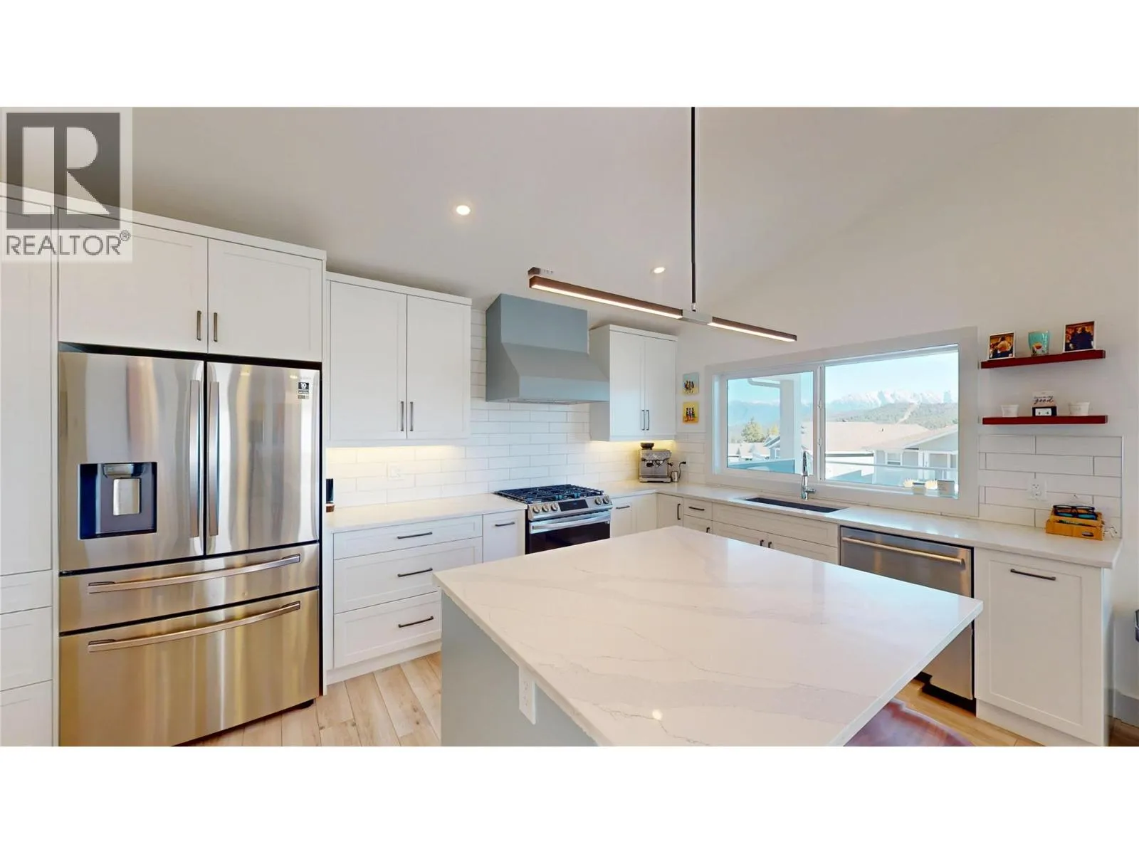 Golf course in the backyard and 180 degree rocky mountain view in your front yard. Backing onto the 14th hole in beautiful Wildstone Gold Course Resort. This stunning executive home built in 2021 is feature packed. With 1161sqft on the main floor, an open floor plan, vaulted ceilings in living room, dining room and kitchen and speaking of kitchen and extra large center island, quartz countertops, soft close cabinets and stainless steel appliances with a chefs delight gas range. With lovely vinyl plank flooring and the most amazing views. From your 20'11"" x 10' covered front deck you can watch the sunrise over Fisher Peak and even have a gas hookup for your barbeque! Main floor laundry, double attached garage, 2+2 Bedroom, 3 baths and so much more. (id:27476)