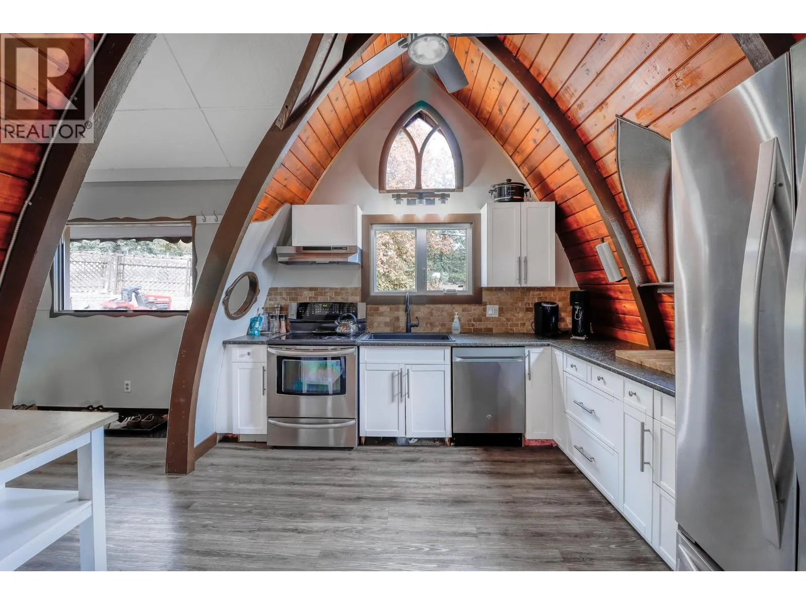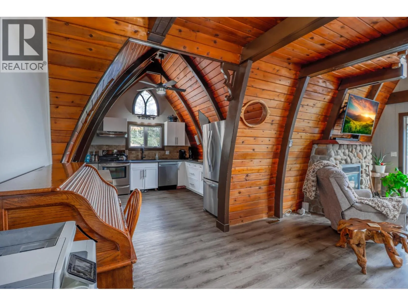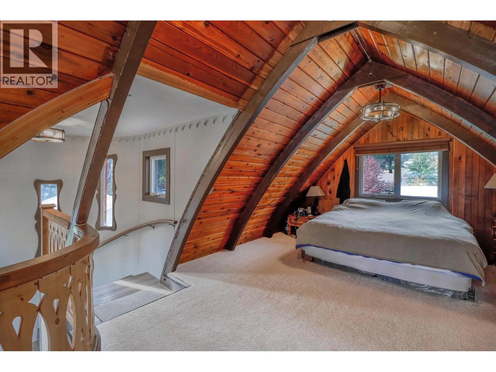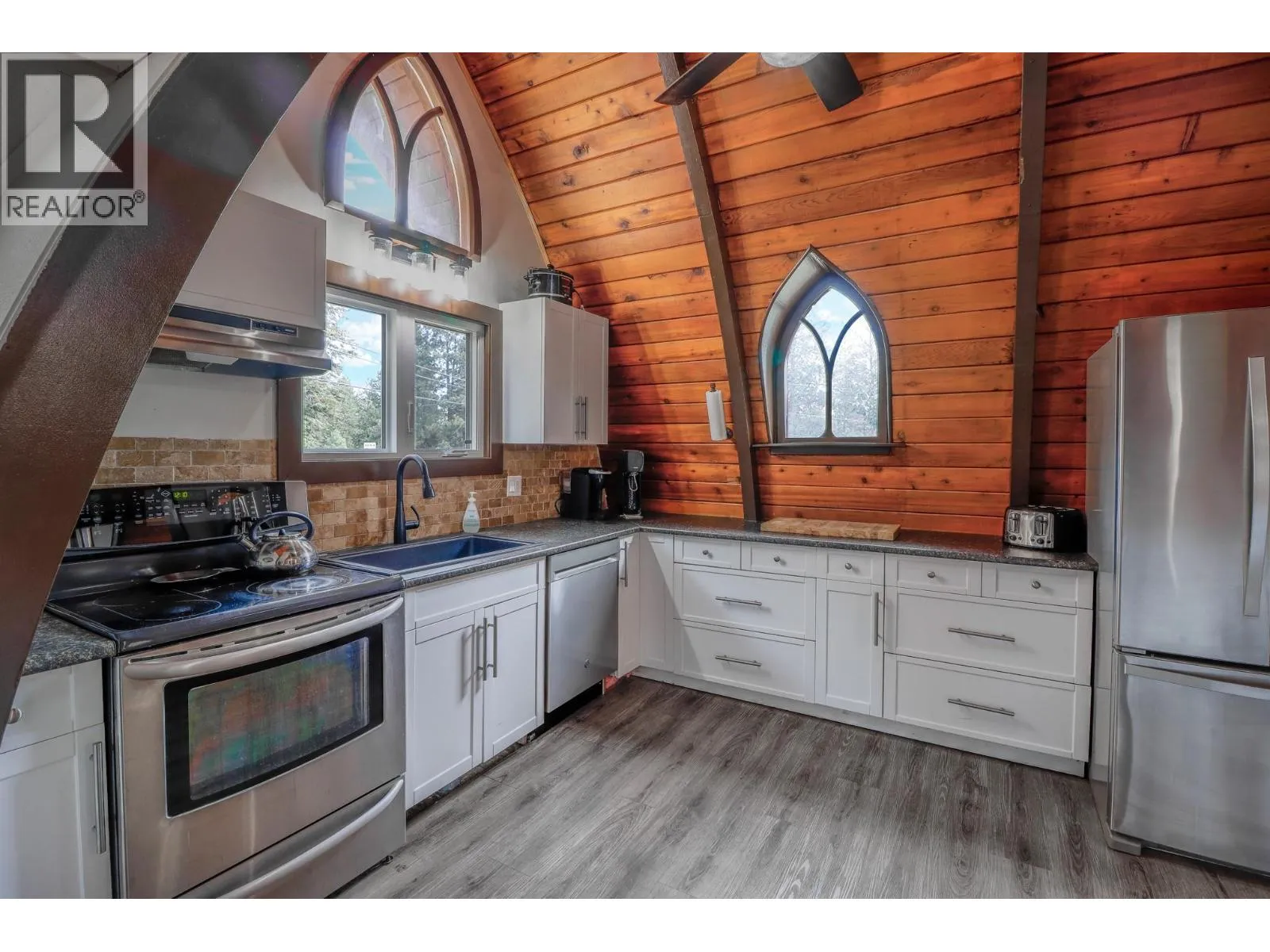 Check out our 24/7 virtual open house. Welcome Home! Perfectly positioned at the edge of town for an ideal blend of country serenity and city convenience. Set on a generous 0.54-acre lot with abundant outdoor space, this updated chalet style home features approximately 1,400 sq.ft. with 2 bedrooms and 1 bathroom, highlighted by distinctive curved walls and staircase, vaulted wood ceilings, custom millwork throughout, a cozy stone fireplace and a bright modern kitchen. This custom home is one-of-a-kind and must be seen to be appreciated and shows pride of ownership throughout. As an added bonus enjoy a 400sq.ft fully equipped guest cottage with its own parking, heat, kitchen, bathroom, and laundryâwell suited for a extended family, a home-based business, workshop, or art studio. This cute guest cottage has rented for up to $1800/month! With quick access to Cranbrook amenities and nearby Jim Smith Lake, this unique property offers charm, flexibility, and an exceptional lifestyle. (id:27476)