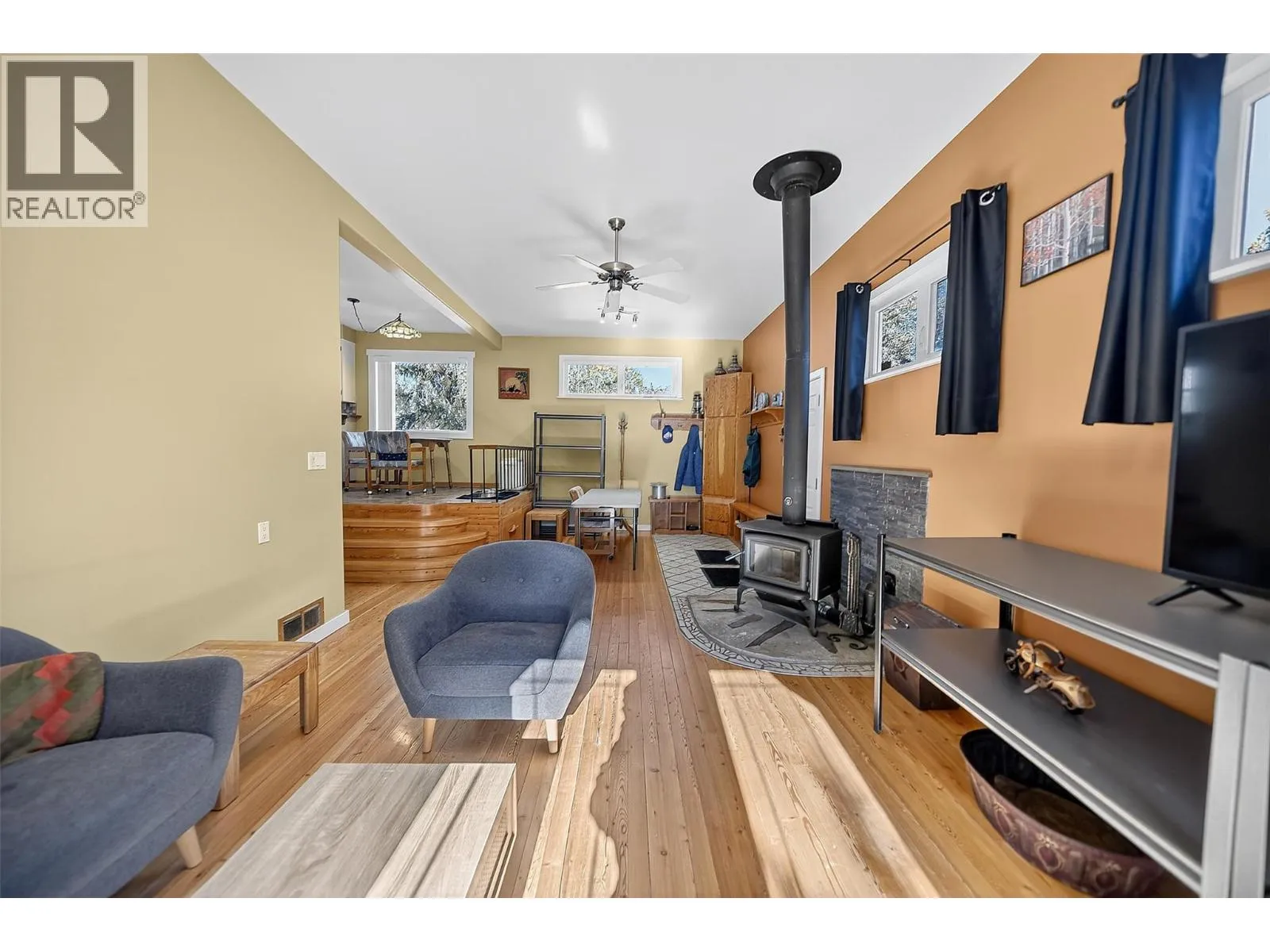 Charming bungalow in Gyro Park offers exceptional value, character and space on one and half lots. The home blends timeless appeal with practical updates. This 4-bed, 2-bath home offers a functional layout perfect for families or anyone seeking comfortable main level living. The bright main floor welcomes you with a cozy living area and newer wood burning stove, leading into a cheerful kitchen and dining space. The walk-out basement includes one bedroom, a full bathroom, office or den, laundry, and ample storage. Enjoy cozy winters with a wood stove and peace of mind from recent updates including a new furnace (2021), roof (2019), and eight replaced windows. Outside, relax around the firepit, tend to your garden in the sweet greenhouse, or make use of the detached garage with back lane access. Located steps from Gyro Park, schools, and transit, this home offers walkability, mountain views, and small town charm, all at a price point that makes sense! (id:27476)