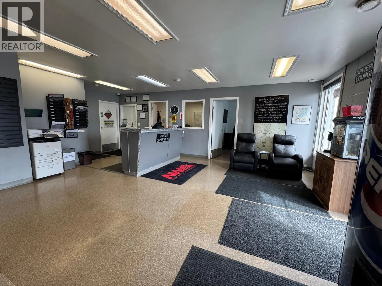 Well-positioned industrial owner-occupier or investment opportunity located at 301 Slater Road NW in Cranbrook, BC. The property comprises a 9,278 SF freestanding industrial building situated on a 1.25-acre fully-fenced corner lot, offering excellent exposure, access, and functional site flow. Zoned M-1 (Clean Industrial), the property supports a wide range of industrial and service commercial uses. The building features 6,338 SF of shop space with 15â9â clear ceiling height, complemented by 2,347 SF of main floor office and a 593 SF second floor area. A 1,637 SF storage mezzanine provides added utility without sacrificing floor area. The shop is highly functional with nine 12â x 14â drive-in doors, configured for efficient drive-through loading and workflow, making it well suited for fleet, service, fabrication, or distribution uses. The site benefits from dual access points, ample yard space, and strong circulation for trucks and service vehicles. Infrastructure includes 200-amp, 120/208-volt, and potential three-phase power, fibre optic connectivity, and a clean-burn energy system utilizing recycled oil to supplement heating. The property offers immediate availability and direct access to Highway 95 and regional transportation routes, with proximity to fuel, restaurants, and key amenities. An excellent opportunity for an owner-occupier seeking scale and functionality, or an investor targeting a well-located industrial asset with long-term utility and flexibility. (id:27476)