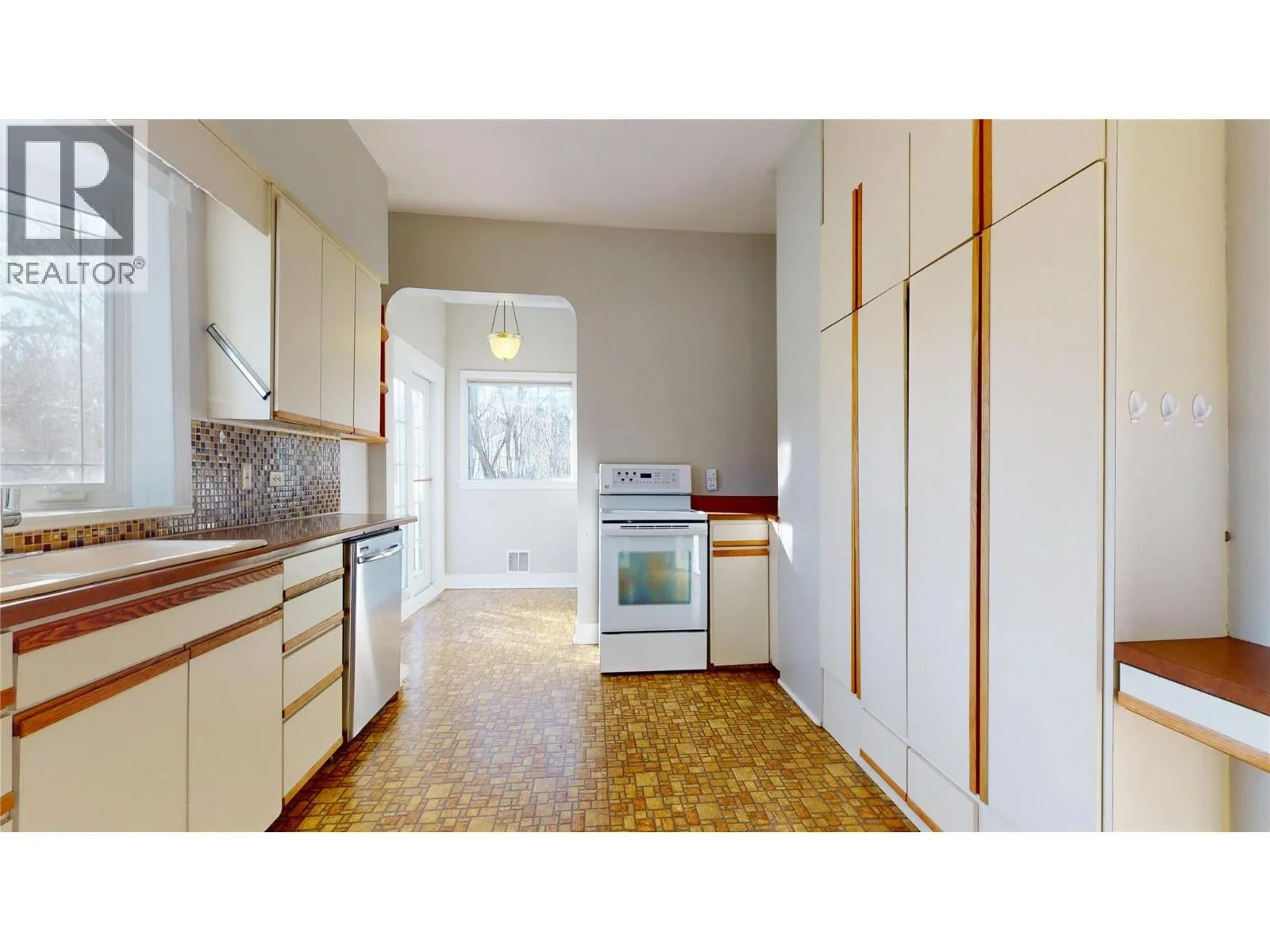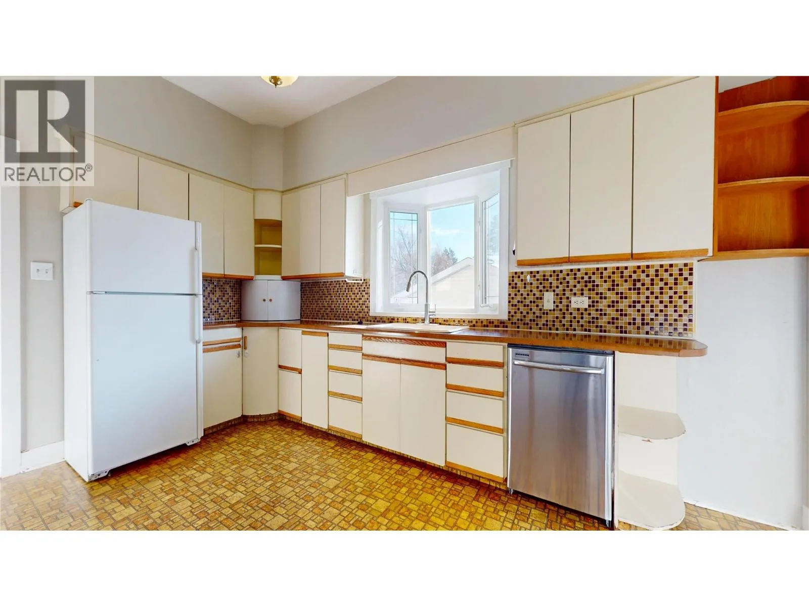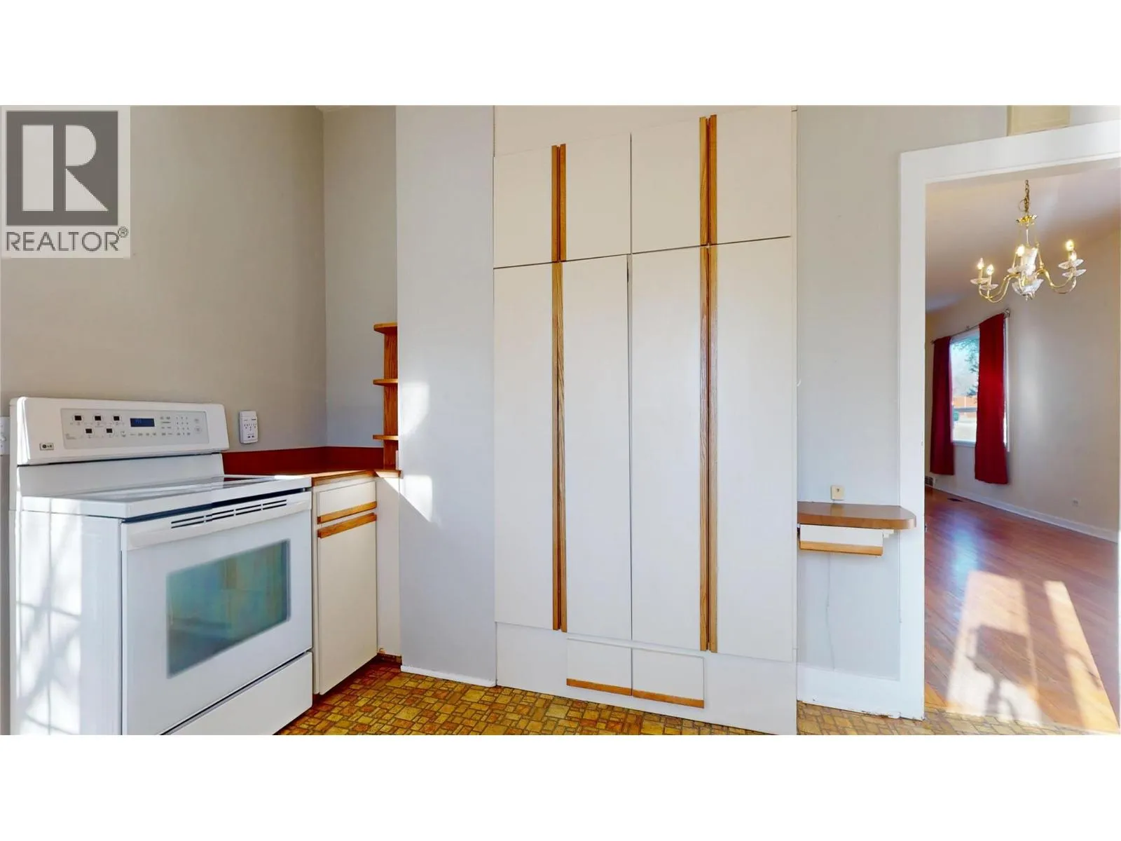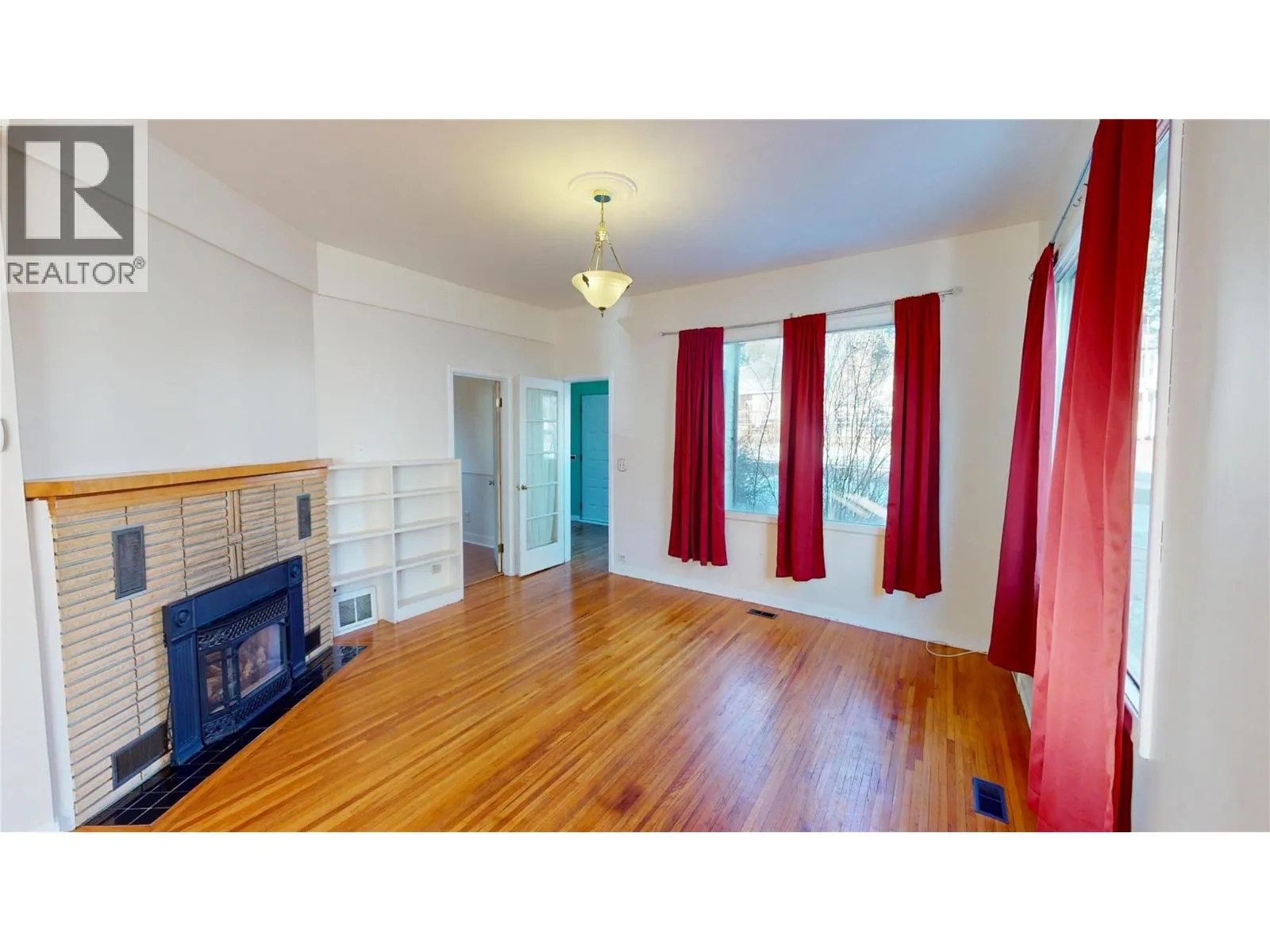 This charming and spacious two storey home is ideally located close to parks, schools, shopping and within walking distance to downtown. Full of character and timeless appeal, the home offers 5 bedrooms, including an upper level bedroom with its own kitchen, and a beautifully updated full bathroom. The main floor features 9 ft ceilings, original hardwood flooring, elegant crown mouldings and large bright windows that fill the home with natural light. The inviting layout includes a bright living room with a classic brick gas fireplace, a formal dining room and a generous country style kitchen with sliding doors leading to a deck overlooking the private backyard with Joseph Creek just across the rear alley. The main floor also offers a spacious primary bedroom. The home features a full concrete basement providing excellent storage or future development potential. Outside you will find a fully fenced yard with gardens and a fire pit area perfect for relaxing or entertaining, along with a detached single garage and carport with convenient alley access. Book your showing today (id:27476)