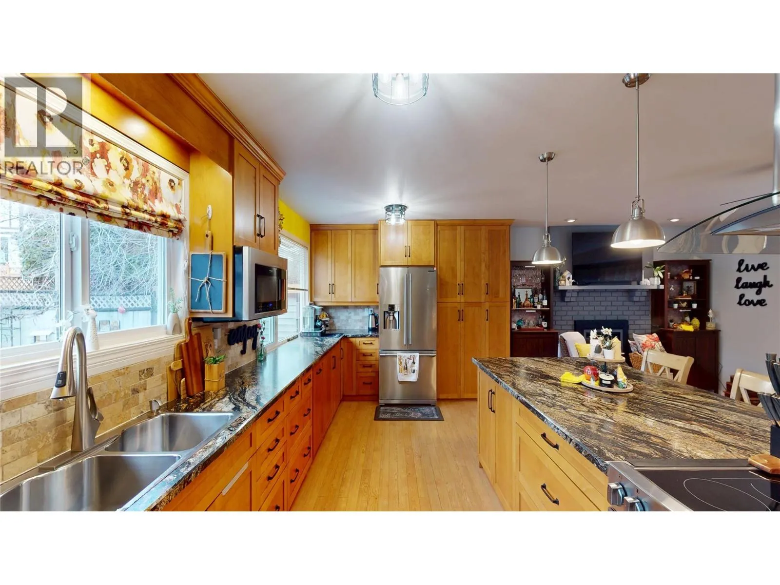 Welcome to this beautifully updated home in the highly desirable Highlands area, just one block from the golf course and close to schools. Offering exceptional curb appeal and numerous updates throughout, this property blends comfort and functionality. The bright, spacious kitchen is perfect for everyday living and entertaining, featuring a massive island, stainless steel appliances, and abundant storage. The inviting living area showcases a cozy gas fireplace with a classic brick surround. This home also includes central vacuum, a 160-amp electrical panel, and plenty of storage throughout. A rare highlight is the presence of two primary bedrooms, each complete with its own private ensuite, ideal for multi-generational living or hosting guests. The main bathroom also features a large soaker tub, perfect for relaxing at the end of the day. Step outside to a beautifully landscaped, very private yard with underground sprinklers and irrigated garden beds. Mature ornamental cherry, crabapple, and chokecherry trees add charm and seasonal beauty, while the garden area offers space to enjoy the outdoors. The attached double heated garage (20'4"" x 24') includes a convenient man door to the yard, and the driveway provides parking for up to three vehicles. Located in one of the area's most desirable neighbourhoods, this well-maintained home is move-in ready. Hot tub is negotiable. (id:27476)