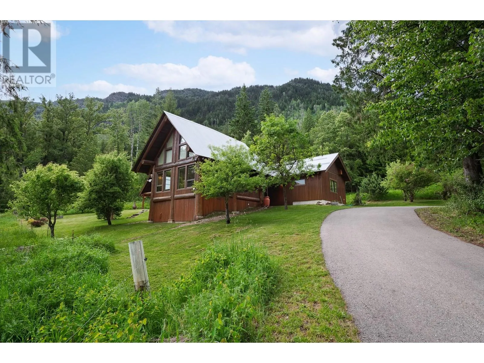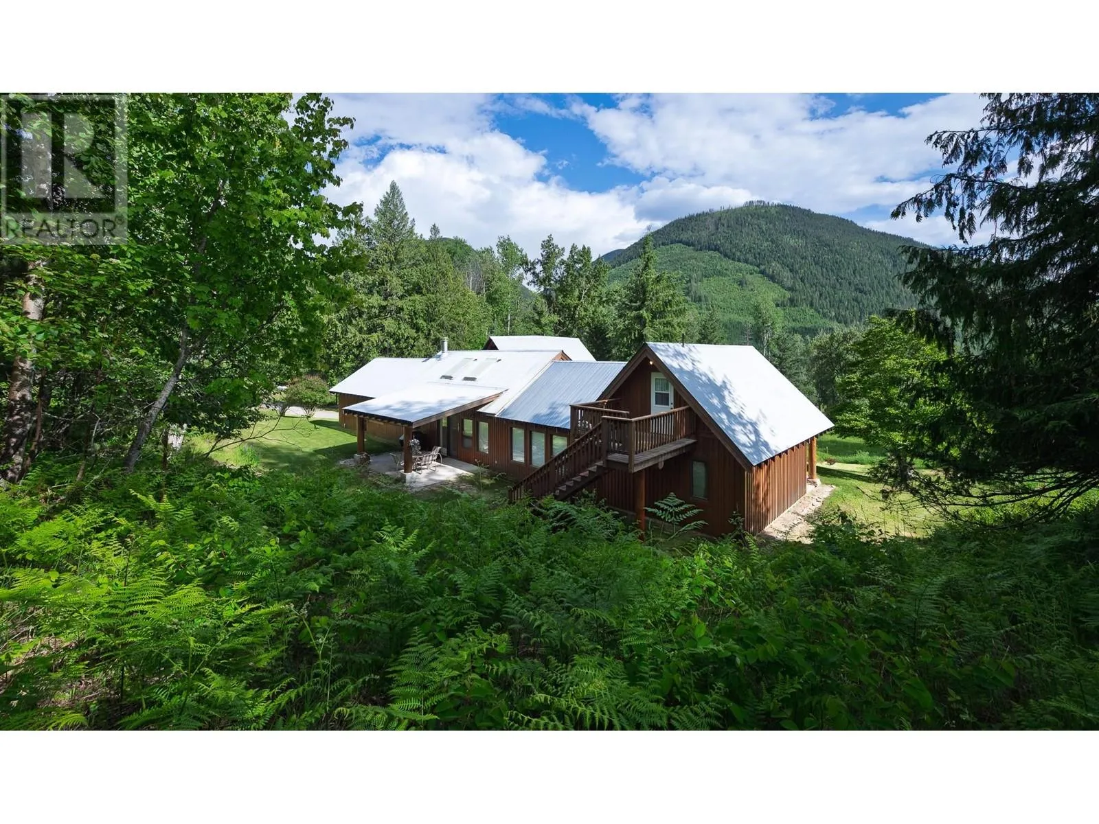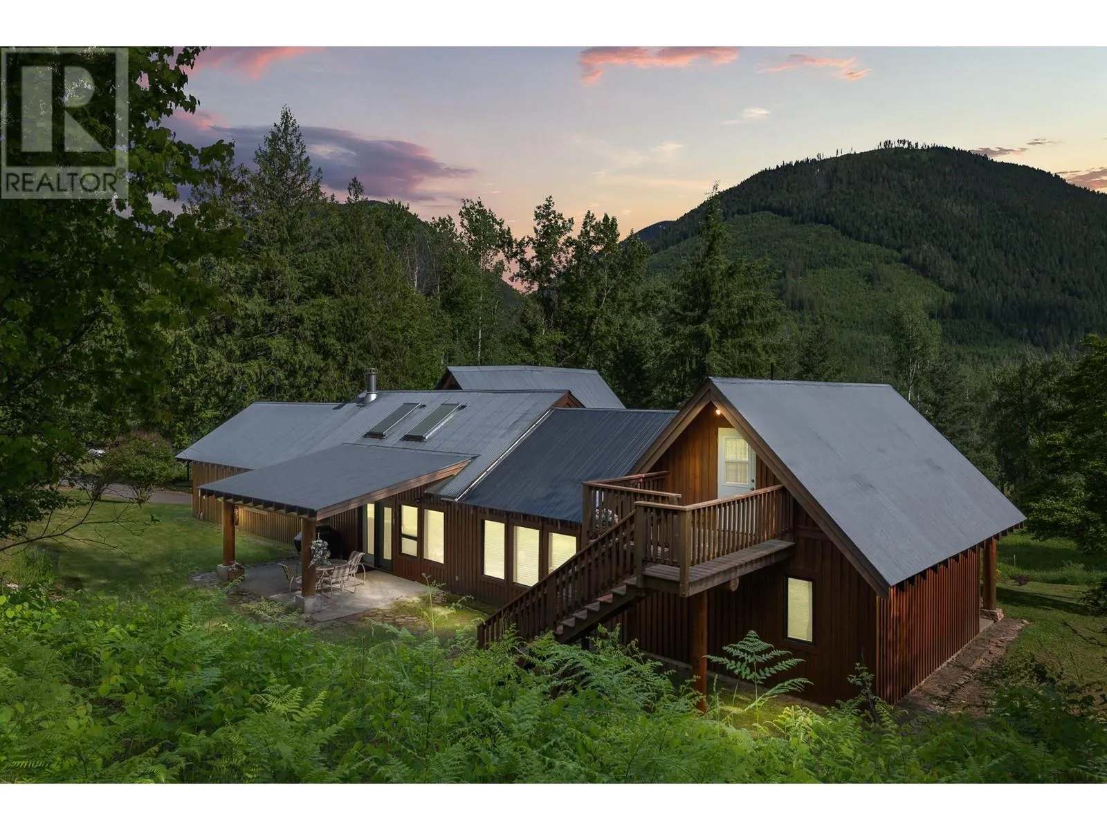 Welcome to one of the regionâs most iconic and admired propertiesâ40 acres of usable, open meadowland nestled in the mountains. This stunning home offers executive comfort, custom craftsmanship, and limitless potential in a serene, natural setting. The expansive main level features soaring ceilings, exposed log beams, and a custom fireplace wall, with large windows throughout that frame sweeping views of the surrounding landscape. Designed for both luxury and functionality, the home includes three spacious bedrooms, each with its own ensuite and ample closet space. The primary suite is a private retreat with multiple closetsâincluding a large walk-inâand a spacious ensuite bath. Both guest bedrooms offer direct outdoor access to the patio. Multiple living and entertaining areas, abundant storage, and thoughtful finishes throughout make this home truly special. An upstairs hobby room adds flexible space for creativity or relaxation. Outdoor living shines with several seating areas, including a covered patio. The grounds feature mature landscaping, fruit trees, and a paved driveway that winds through the trees, revealing panoramic views. A massive shop with tall ceilings, a charming Chalet, RV parking with hookups, and covered parking for boats or equipment provide exceptional versatility. Adding historic charm, a restored heritage building sits on the propertyâa known local landmark and art piece. With land on both sides of Crawford Creek Road, the possibilities are endless: a private retreat, guest accommodations, or the ranch of your dreams. Located minutes from Kokanee Springs Golf Course, Kootenay Lake, beaches, marinas, and endless backcountry roads, this rare offering blends natural beauty, privacy, and adventure. (id:27476)