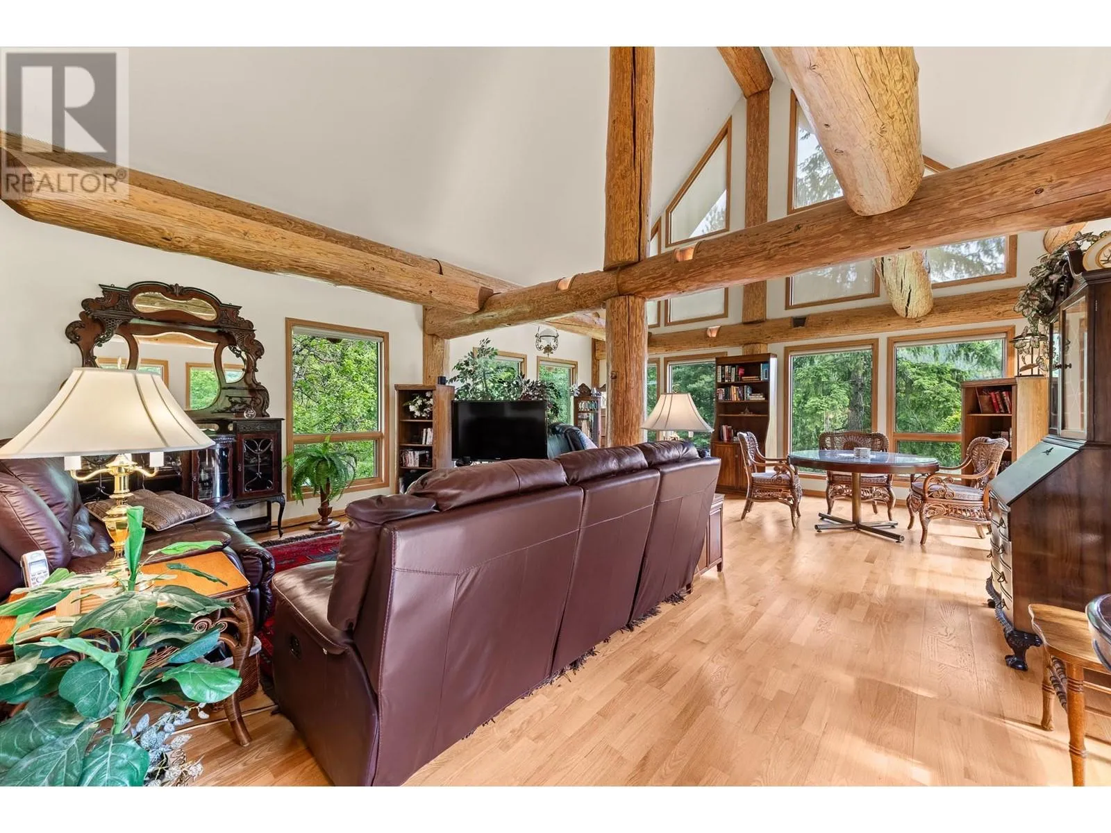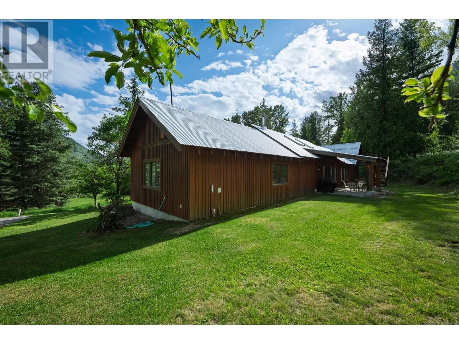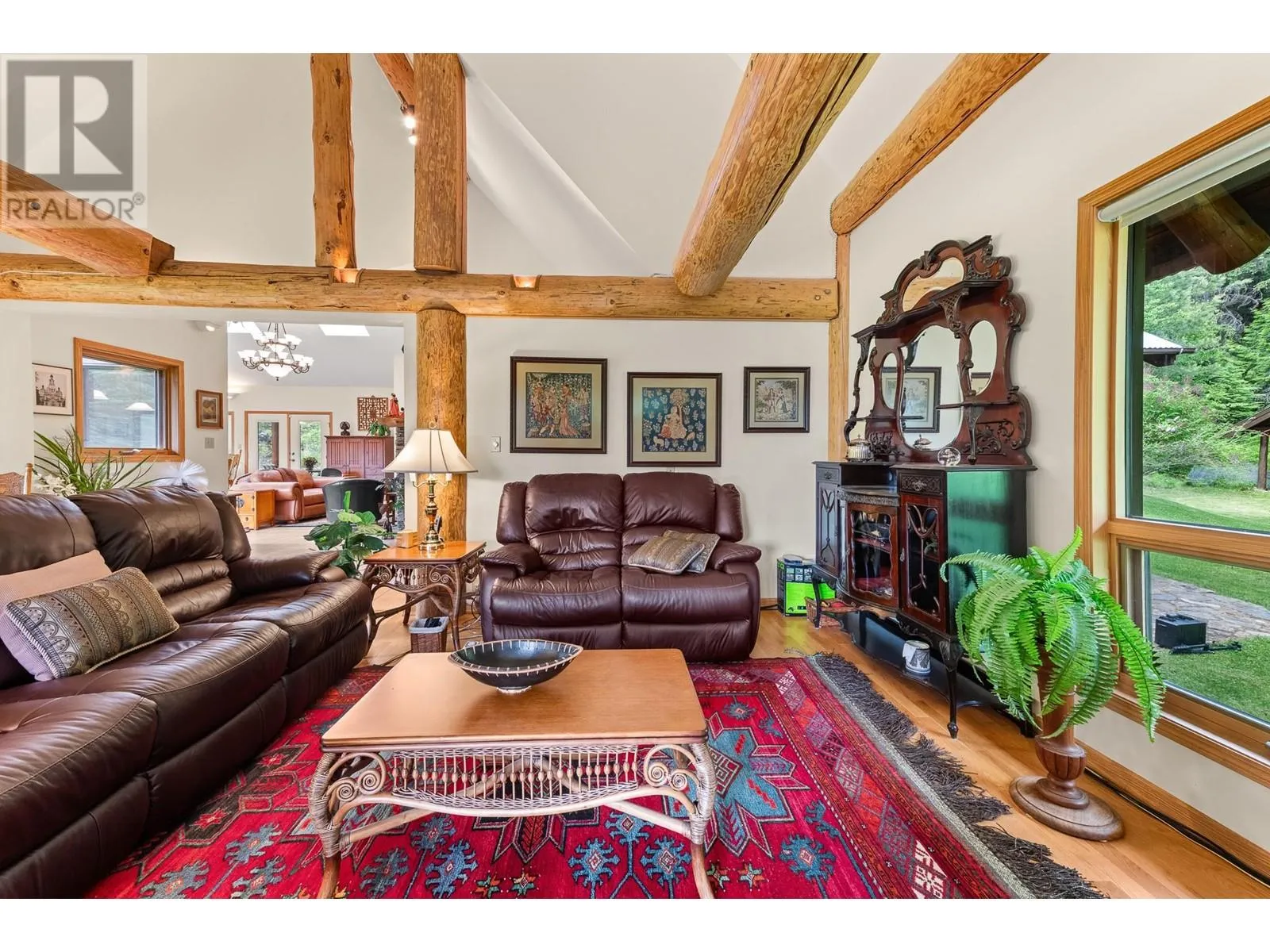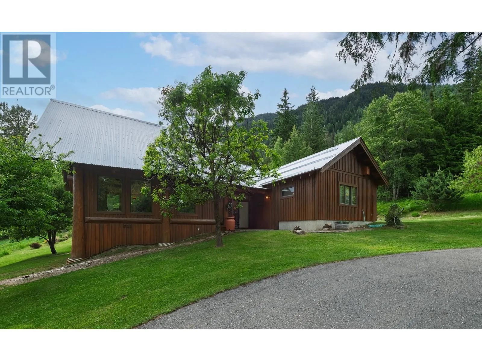 Welcome to one of the regionâs most iconic and admired propertiesâ40 acres of usable, open meadowland nestled in the mountains. This stunning home offers executive comfort, custom craftsmanship, and limitless potential in a serene, natural setting. The expansive main level features soaring ceilings, exposed log beams, and a custom fireplace wall, with large windows throughout that frame sweeping views of the surrounding landscape. Designed for both luxury and functionality, the home includes three spacious bedrooms, each with its own ensuite and ample closet space. The primary suite is a private retreat with multiple closetsâincluding a large walk-inâand a spacious ensuite bath. Both guest bedrooms offer direct outdoor access to the patio. Multiple living and entertaining areas, abundant storage, and thoughtful finishes throughout make this home truly special. An upstairs hobby room adds flexible space for creativity or relaxation. Outdoor living shines with several seating areas, including a covered patio. The grounds feature mature landscaping, fruit trees, and a paved driveway that winds through the trees, revealing panoramic views. A massive shop with tall ceilings, a charming Chalet, RV parking with hookups, and covered parking for boats or equipment provide exceptional versatility. Adding historic charm, a restored heritage building sits on the propertyâa known local landmark and art piece. With land on both sides of Crawford Creek Road, the possibilities are endless: a private retreat, guest accommodations, or the ranch of your dreams. Located minutes from Kokanee Springs Golf Course, Kootenay Lake, beaches, marinas, and endless backcountry roads, this rare offering blends natural beauty, privacy, and adventure. (id:27476)