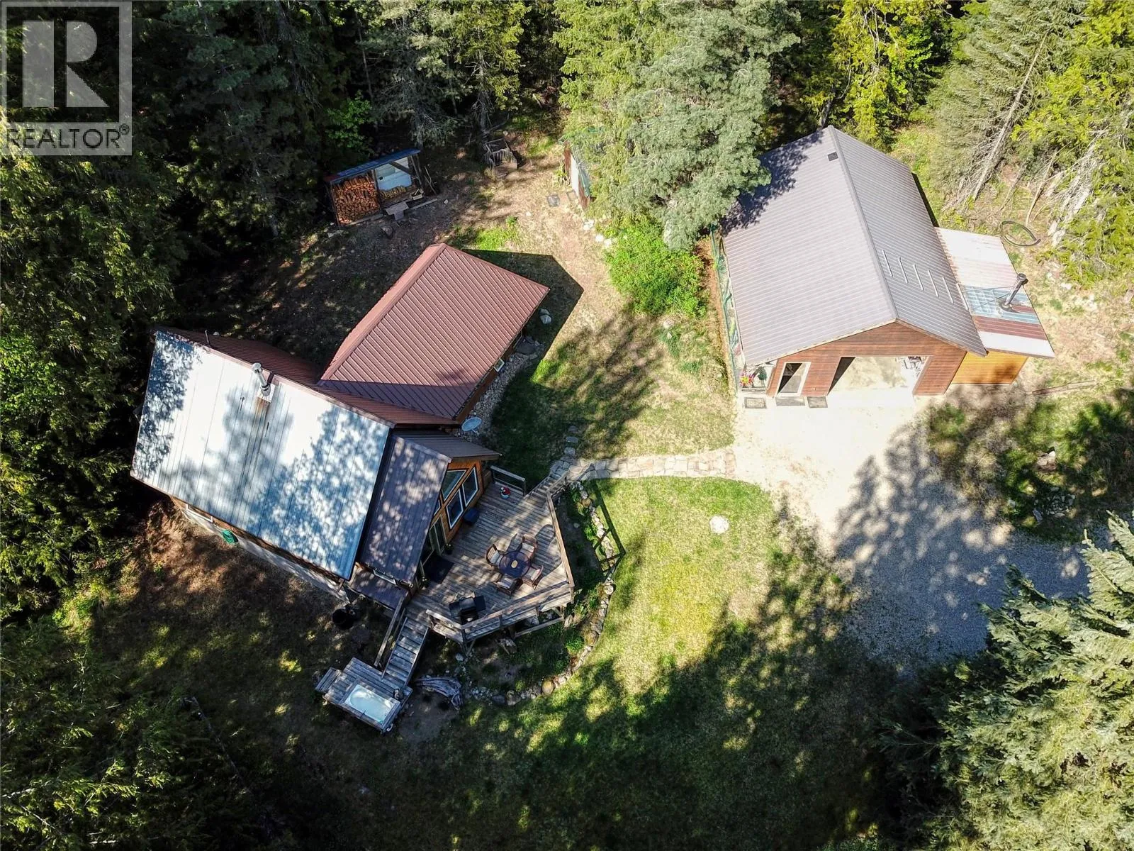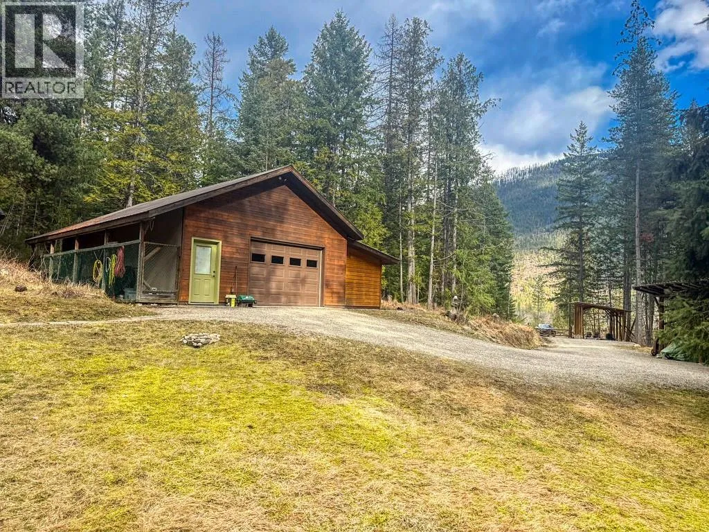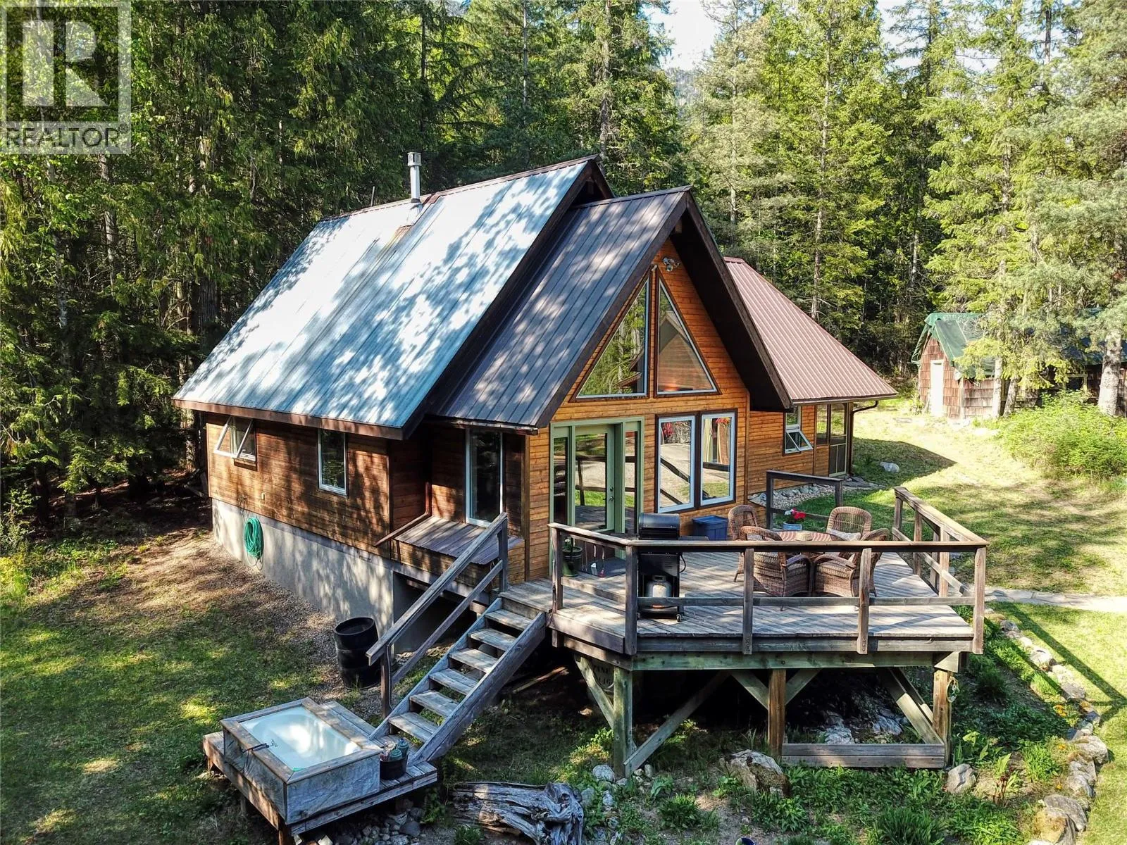 Welcome to your private Kootenay retreat just minutes from the charming artisan community of Crawford Bay. Set on 9.88 forested acres, this rare property offers privacy, recreation, and future potential in one remarkable package. Being close to artisan shops, restaurants, the local market, elementary school, Kokanee Springs Golf Resort, and the shores of Kootenay Lake, youâll enjoy rural serenity without sacrificing convenience. The inviting 2-bedroom home features a generous front deck and a custom wood entry door that opens to a bright vaulted great room, dining area, and modern kitchen. The main level includes a vaulted primary bedroom, full bath, and screened sun porch. A handcrafted spiral staircase leads to a loft bedroom that feels like a treehouse retreat, complete with its own forest-view deck. Your private retreat features a mature forest with towering trees, a soothing creek, and established biking and hiking trails. Relax in the unique hot/cold tub surrounded by nature at your leisure. With no zoning and subdivision potential, the possibilities are exceptional. Bonus features include a purpose-built heated double garage/shop ideal for automotive projects, restoration work, or toy storage that features power, full bath and laundry, storage room and media room. In addition there is a 3-bay carport and large RV carport with power on site. This is mountain-lake living at its finest. Be sure to book your personal viewing today! (id:27476)