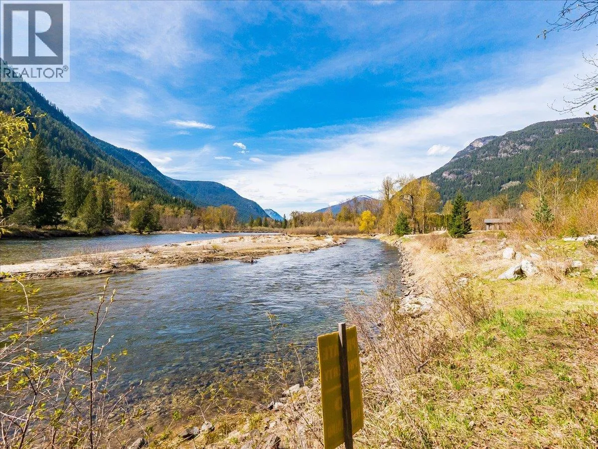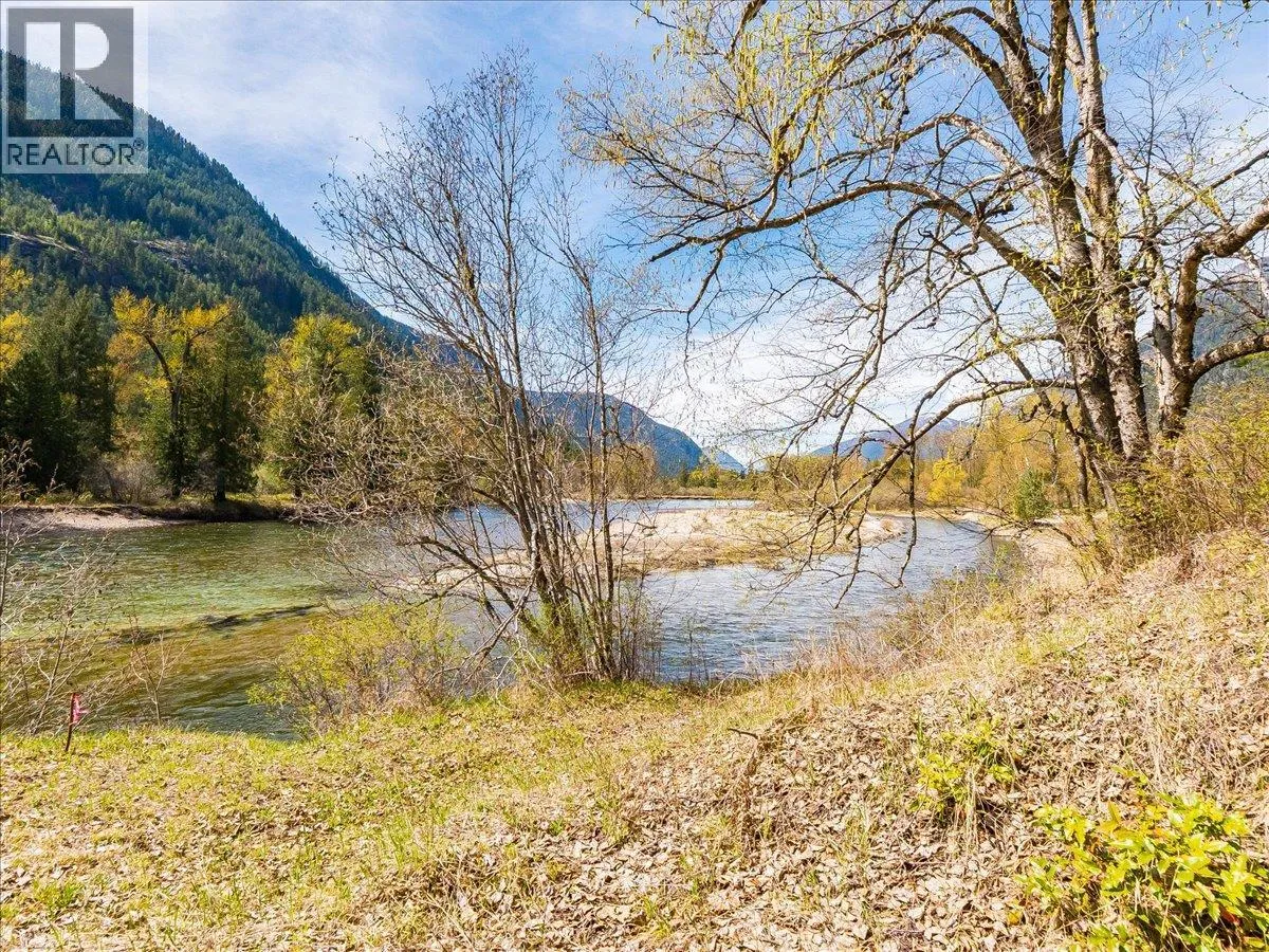 Incredible 1.27-acre riverfront building lot offering approximately 450 feet of river frontage. This exceptional property features tremendous value and impressive shoreline stability, with professional rip-rapping completed under government supervision to help prevent erosion.Enjoy magical views of the river, a large vegetated island frequented by elk and other wildlife, a beautifully manicured sandy beach, and a small private walking trail. The Rails to Trails is conveniently close for access, yet far enough behind the property to maintain privacy.The groundwork is already in place to help you get started on your dream home, with easy highway access, a water licence from the Slocan River, a previously approved pressure septic field, and a 16' x 20' summer viewing cottage for storage or comfort. (id:27476)