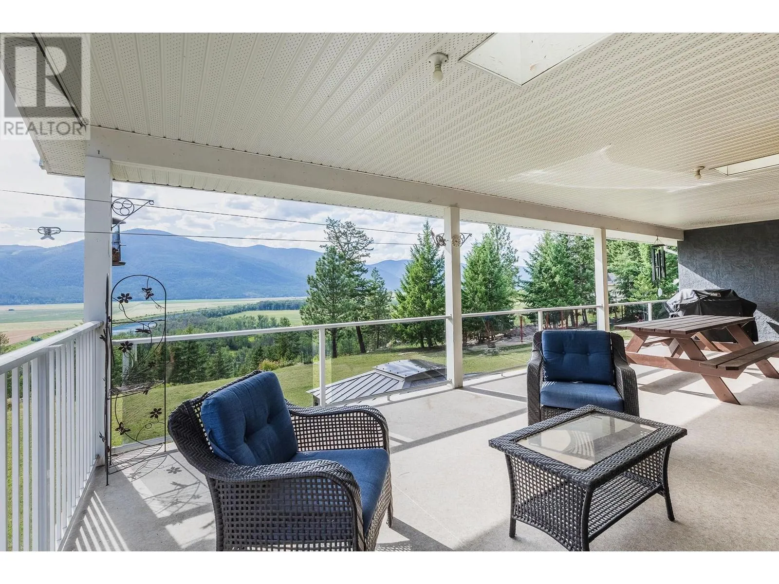 Looking for a view that stops you in your tracks?! This 4.75 acre property has unobstructed views right into the state of Idaho and a birds eye view of the Kootenay River and Creston Valley Floor! Looking for room? Well look no further as we have just over 2950 finished sq ft of home boasting 4 bedrooms,3 bathrooms, 2 kitchens, large Recreation Room and walkout lower level. Enjoy year round on the 12 by 32 foot covered deck. Open kitchen with eating island, main floor laundry and plenty more! Forced air gas furnace with free standing wood stove and indoor wood storage close by. For the person that needs a big shop, once again look no further as this 50' by 28' fully heated shop with its 200amp service and 3 bays will satisfy anyone with those needs, Hot and cold water for easy clean ups! There is also boat or rv covered storage, sauna and unique chicken coup for those that want to be more self sufficient! The list goes on and the Sellers have price it under assessed value to sell sooner than later. For a private tour call your REALTOR® Today! (id:27476)