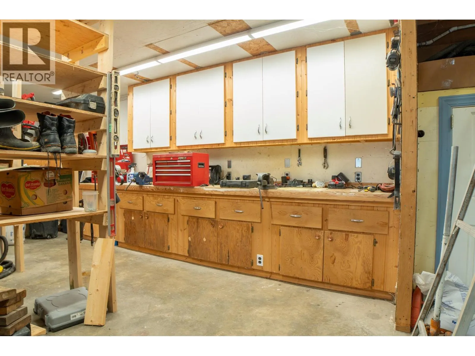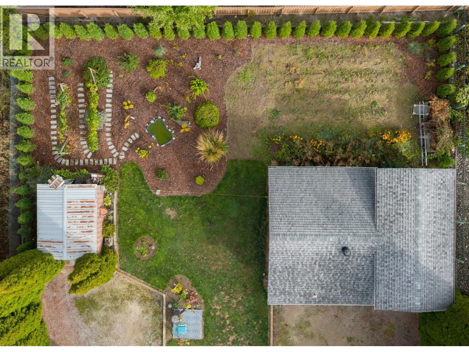 Donât miss this one! Set on a 1/3-acre lot just steps from town, and Centennial Park, this property offers the perfect blend of convenience and privacy. The property includes a driveway, carport, and spacious workshop with tall garage doors -ideal for oversized vehicles, an RV, or your favourite projects. The backyard feels like a private park with cedar trees, a small pond, raspberries, blueberries, grapes, and a generous garden space for self-sustainable living. Inside, the main level features two bedrooms and two bathrooms along with a spacious open-concept living and dining area. The kitchen walks out to a bright south-facing covered deck, perfect for enjoying the afternoon sun. The lower level includes a generous rec room plus a one-bedroom suite complete with its own kitchen, bathroom, and private entrance -ideal for extended family or rental income. With its large yard, impressive shop, and well-maintained home, this property has so much to offer. Call your REALTOR® today to book a showing! (id:27476)