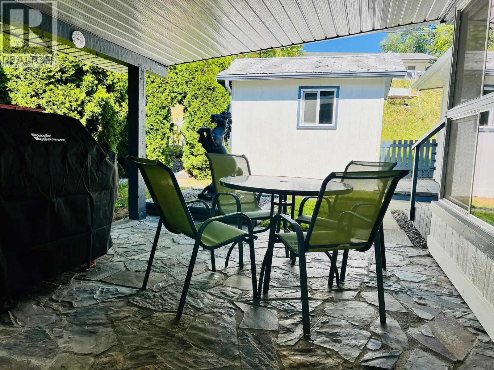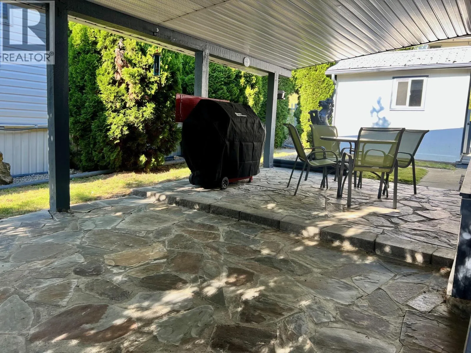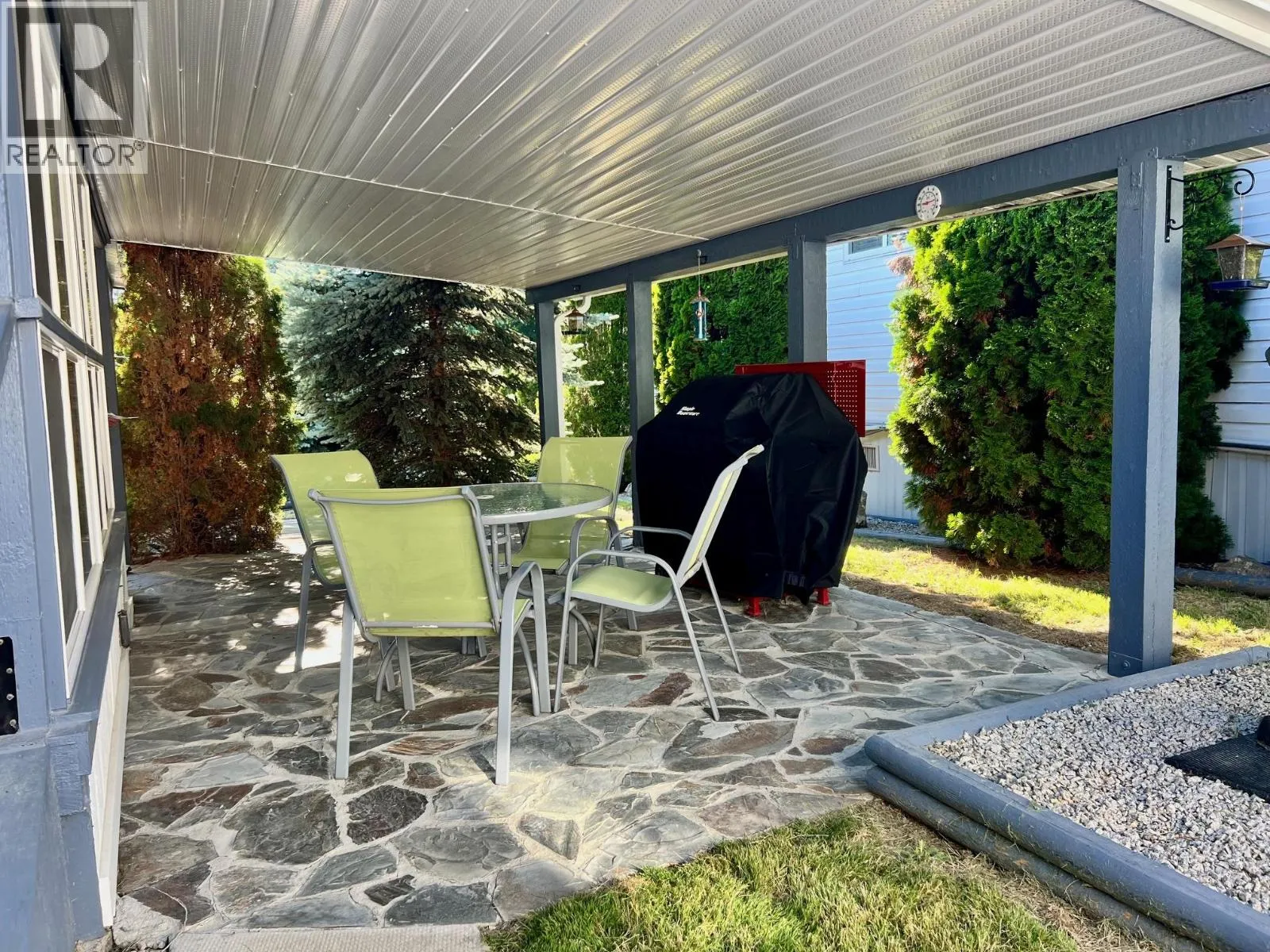 Downsize with confidence into this beautifully cared-for 2+ bedroom, 1 bathroom home, perfectly positioned at the quiet end of the road in Crestglen Mobile Home Park, just minutes from town amenities and services. Thoughtfully updated and truly move-in ready, this home offers newer windows, updated flooring and paint, a stylishly redone kitchen and bathroom, durable Hardiplank exterior, and a newer hot water tank (2024), delivering comfort and peace of mind from day one. The bright, functional layout features an ample kitchen, a 3-piece bathroom with laundry, and two comfortable bedrooms, plus a bonus sunroom and den that could easily adapt to a guest space, hobby room, home office, or potential third bedroom. One of the standout features is the covered slate patio, offering a peaceful place to relax and unwind in every season, surrounded by mature Blue Spruce and Pyramid Cedars that provide exceptional privacyâsomething rarely found in park living. Storage is abundant with space underneath the home, inside the unit, and in the shed and additional outbuildingâperfect for a workshop or creative space. A covered carport and extra parking for at least two more vehicles add everyday convenience. Located in a well-managed, all-ages park that allows pets and rentals with approval, this is an outstanding opportunity to simplify without sacrifice. Quick possession availableâact now and make this your next chapter. (id:27476)
