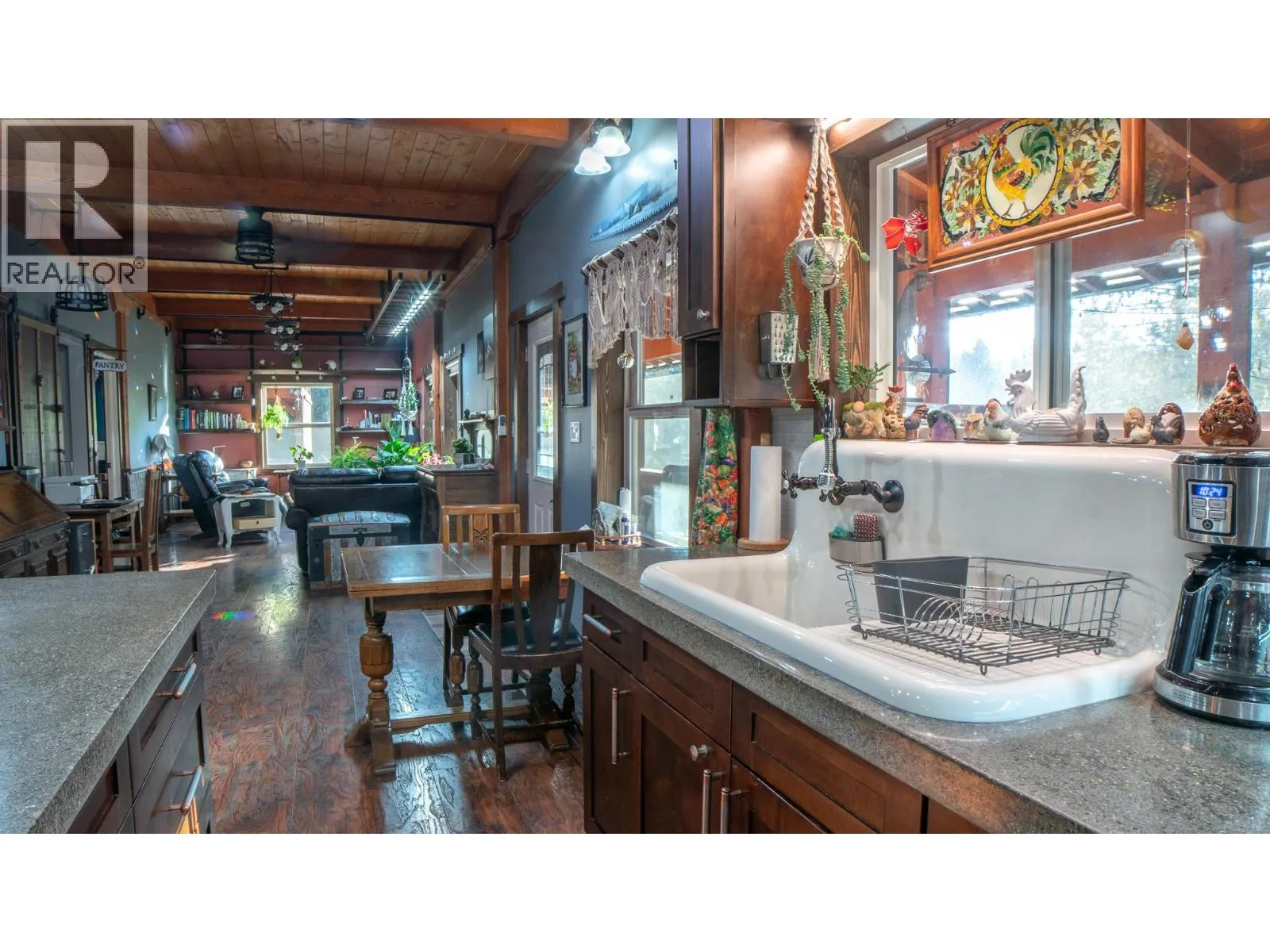 From the moment you turn onto the crushed driveway, this property makes an impression. Over 125 trees and shrubs frame the approach to a 10 year old single level home on 1.77 acres, and the care put into the exterior carries straight through to the interior. Inside, radiant in-floor heating and an open concept layout connect the living room, dining area, and kitchen without interruption. Large windows pull in natural light throughout, complementing the thoughtful finishes from the lighting to the window coverings. This property was designed with self-sufficiency in mind. A year round greenhouse, battery storage capable of powering the building and supporting crops for up to 30 days, a rainwater collection system, and a root cellar make this a genuinely functional homestead. Multiple sea cans have been outfitted with shelving and serve as workshops and additional storage. The kitchen features modern appliances and a spacious island, ideal for everyday cooking and entertaining alike. The primary suite includes a generous walk-in closet. A detached guest cabin with bathroom offers privacy for visiting friends and family. Glaser Creek runs through the land year round, and the warm pioneer character woven into every corner of this property is something that truly has to be experienced in person. Properties like this don't come along often in the Creston Valley. Call your Realtor to book a showing! (id:27476)