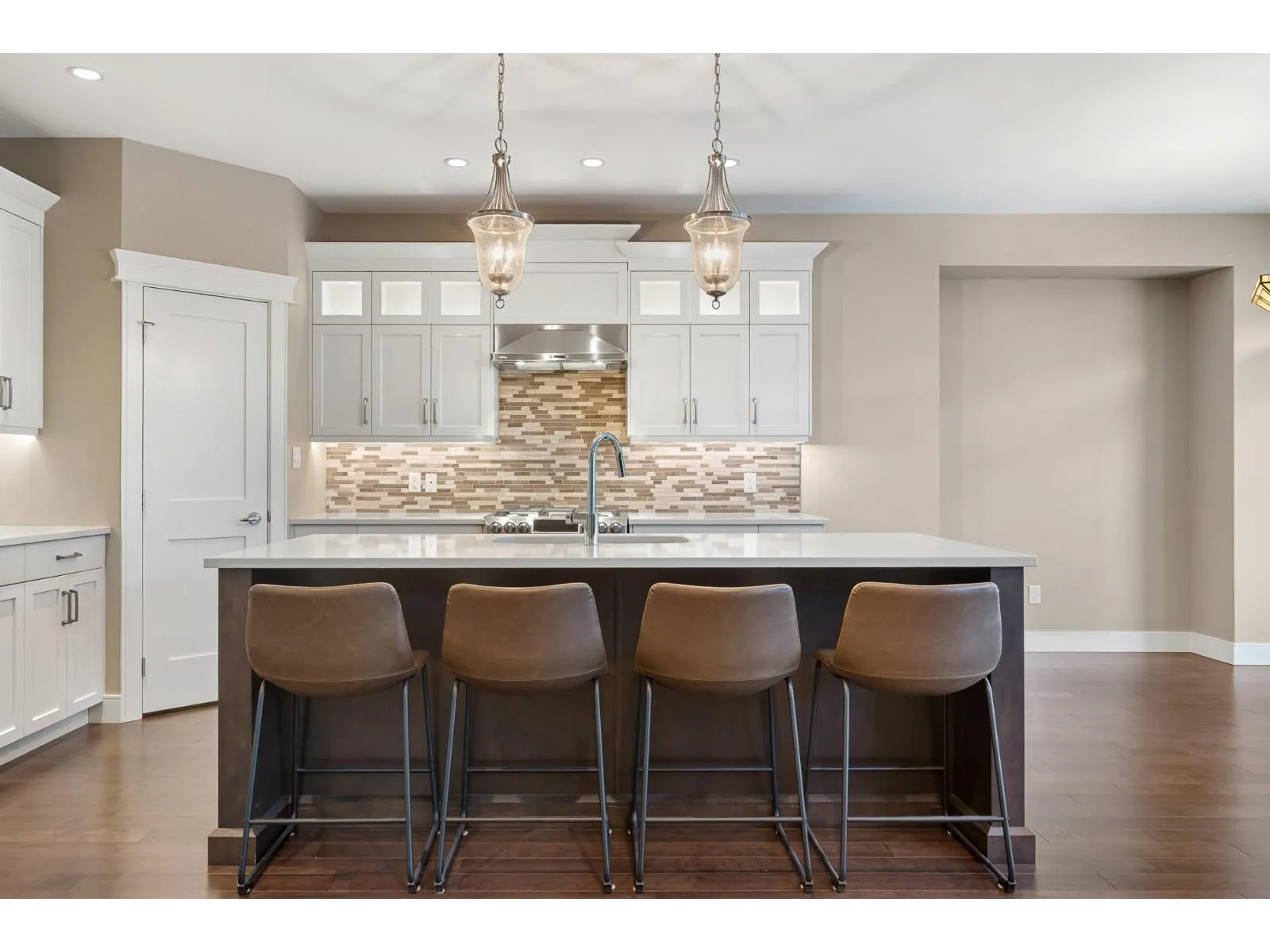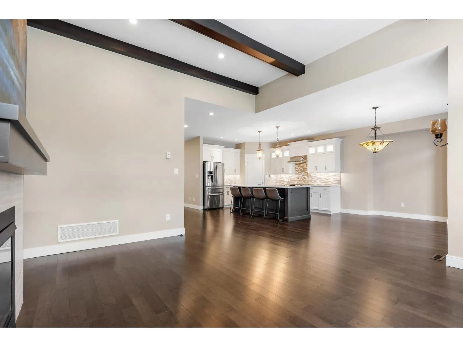 SPECTACULAR rancher in the sought-after Riverstone Estates community! This wheelchair accessible home offers an impressive open concept layout w/hardwood floors throughout. The spacious kitchen features a pantry, high-end SS appliances, gas range, quartz counters, & a generous island w/eating bar, flowing seamlessly into the dining & living areas "- IDEAL for entertaining. Enjoy the serene back patio & private fenced yard. The living room boasts vaulted 9' ceiling w/beams, gas f/p, & MASSIVE windows allowing for TONS of natural light. The primary bedroom features a W.I.C. & spa-like 5 pc ensuite w/dual sinks, glass W.I. shower & sep. soaker tub. Additional bedroom, office/hobby space, DBL garage, PLUS carport w/fence for added security. BONUS: triple-width DW w/space for a 40+ ft RV! * PREC - Personal Real Estate Corporation (id:27476)
