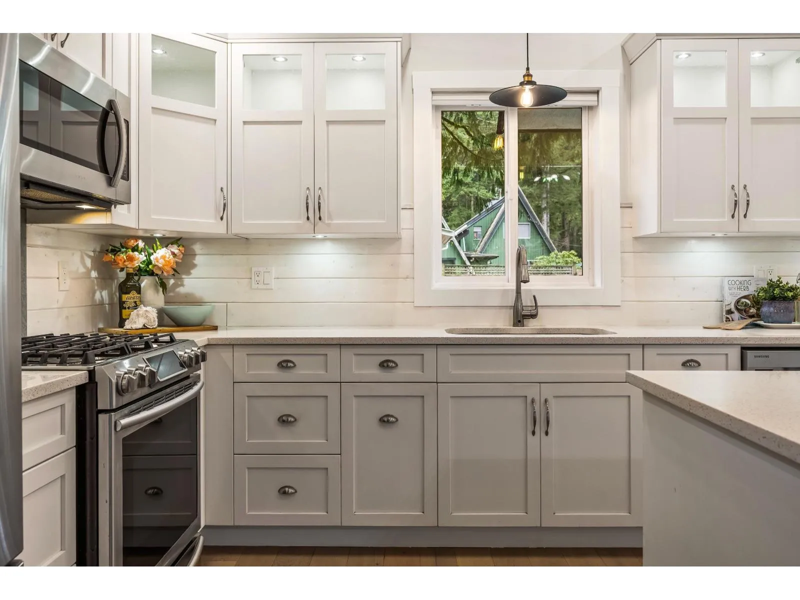 CULTUS LAKE DREAM! Situated on coveted Mountain View, this RENOVATED 2 bed, 1 bath RANCHER offers bright OPEN CONCEPT living designed for year-round enjoyment or the perfect summer escape. This STUNNING kitchen features SHAKER cabinets, QUARTZ counters, SS appliances, GAS STOVE, oversized ISLAND & generous PANTRY"-ideal for entertaining. Expansive living room with cozy GAS FIREPLACE & HEAT PUMP A/C for comfort in every season. Spa-inspired 5-piece bath with DUAL SINKS & HEATED TILE. Primary retreat with HIS & HERS closets & patio access to OUTDOOR SHOWER. AMPLE PARKING for 6+ vehicles, RV & BOAT. CARPORT, STORAGE SHED, powered 12x15 WORKSHOP & MANICURED FENCED YARD with FRUIT TREES! A MUST SEE!! * PREC - Personal Real Estate Corporation (id:27476)