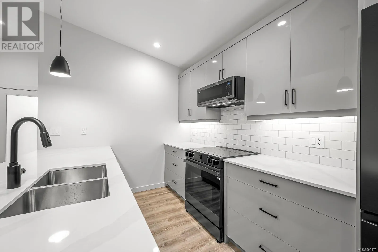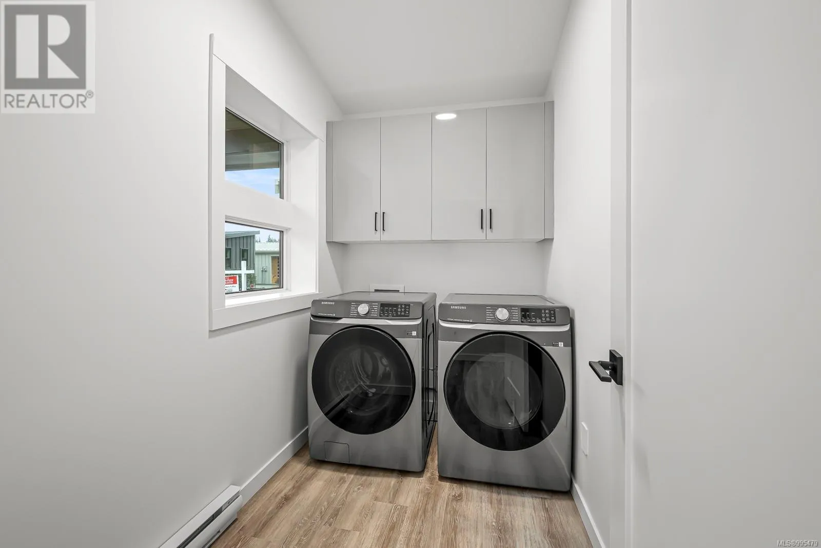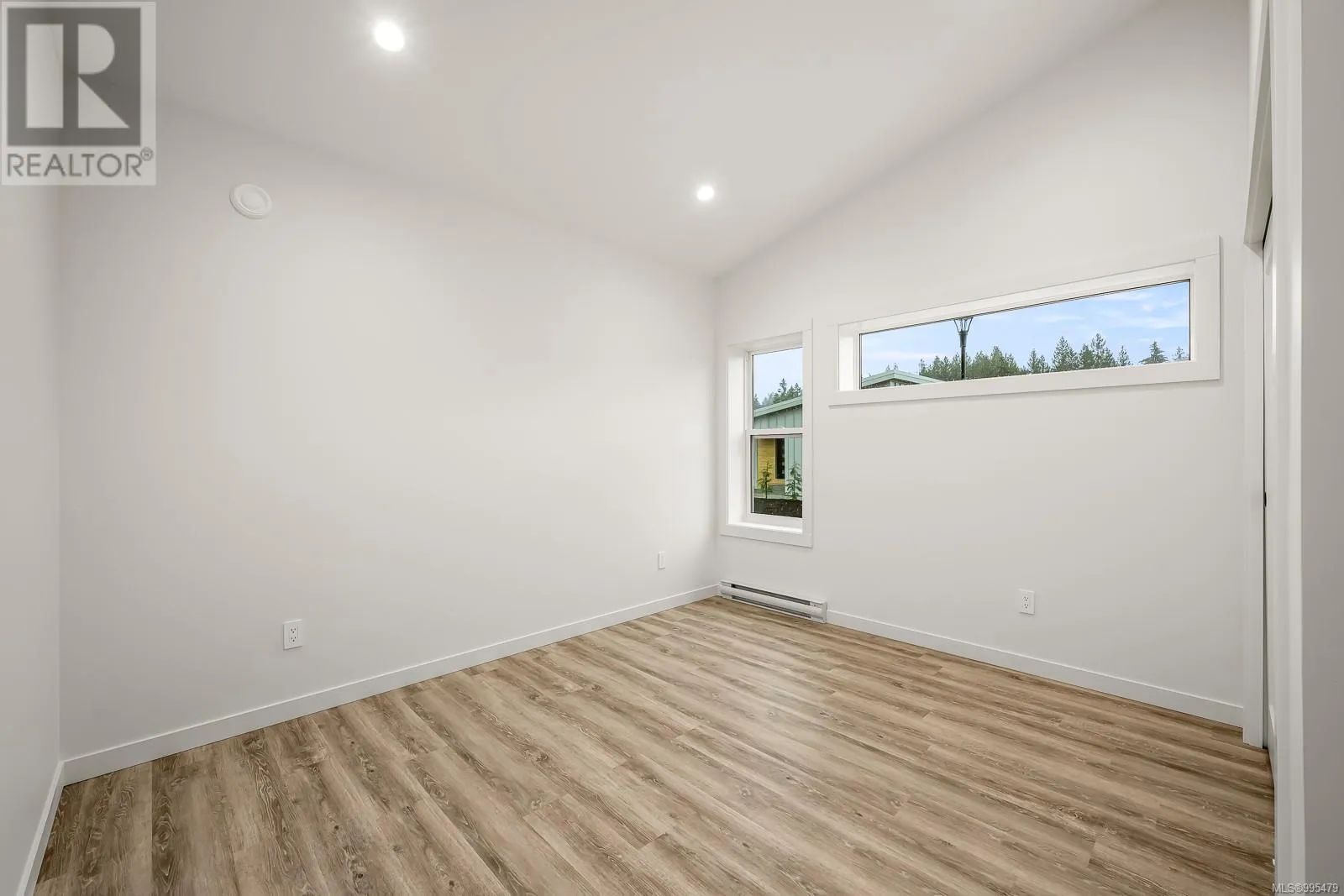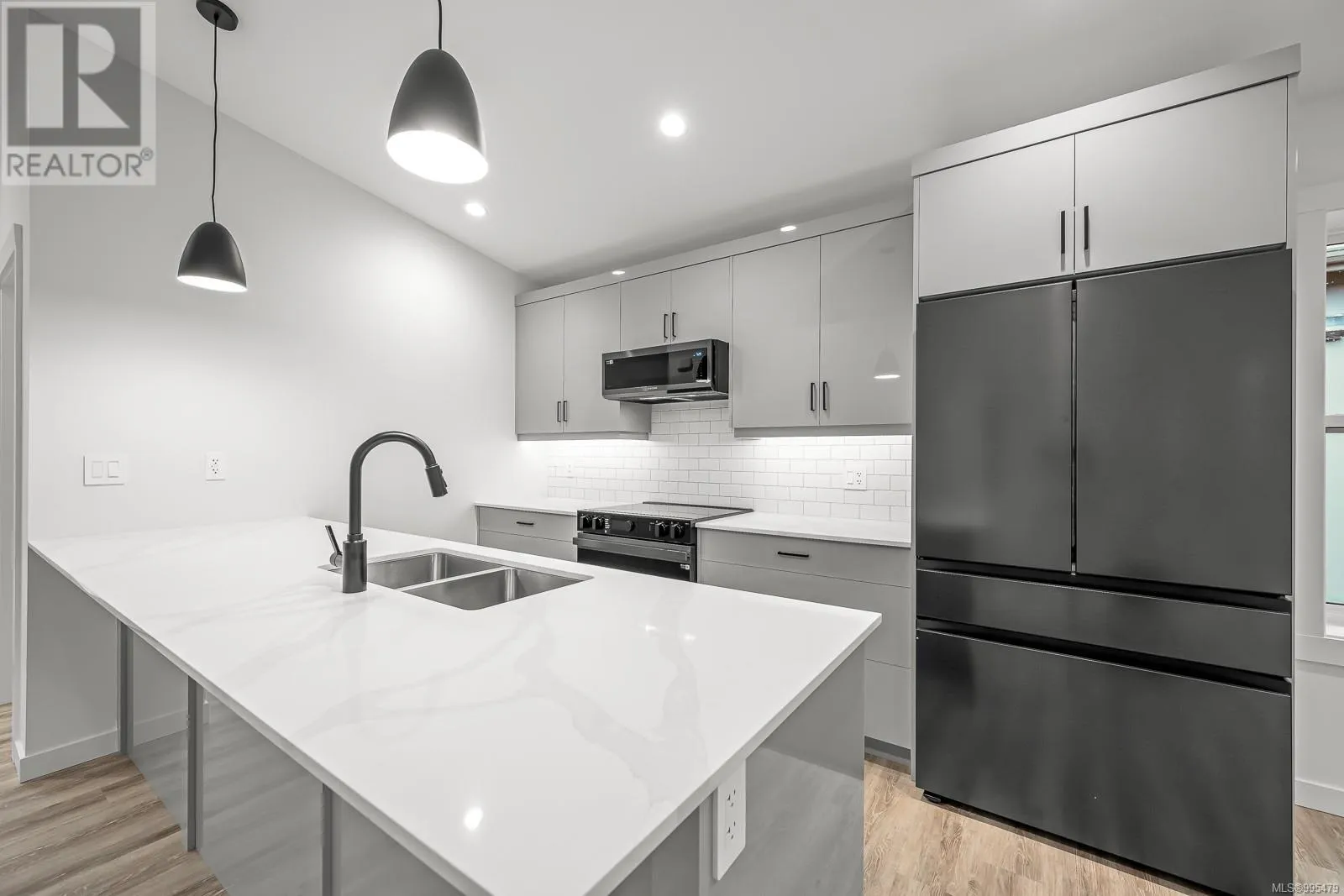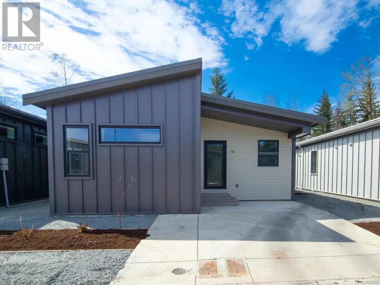 New and Improved, the Great Slaty is beautiful 3 bed 2 bath home offering incredible value. Spanning over 1,300 sq ft, you'll be Impressed with the spacious layout, contemporary design and high end finishings. Turn-Key ready with full appliance package, quartz countertops, heat pump, black accent fixtures, contemporary kitchen cabinets, large island and well appointed laundry room with storage. The open concept kitchen-dining-living area is light and airy with soaring 12 ft vaulted ceilings, 4 windows a large double patio door, great views over the forest. This home Is upgrade with a gas fireplace for easy warmth. The showstopper Is the 14' x 10' covered rear patio, perfect for relaxing with family and entertaining friends. With a metal frame, metal siding and metal roof, maintenance Is minimal. Enjoy the 12' walls, high energy performance and low running costs. GST applies. The Flats of Cumberland is a brand new community of 56 beautiful homes. (id:27476)