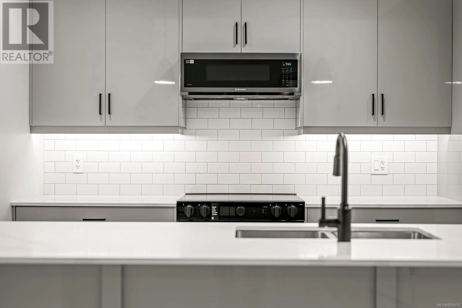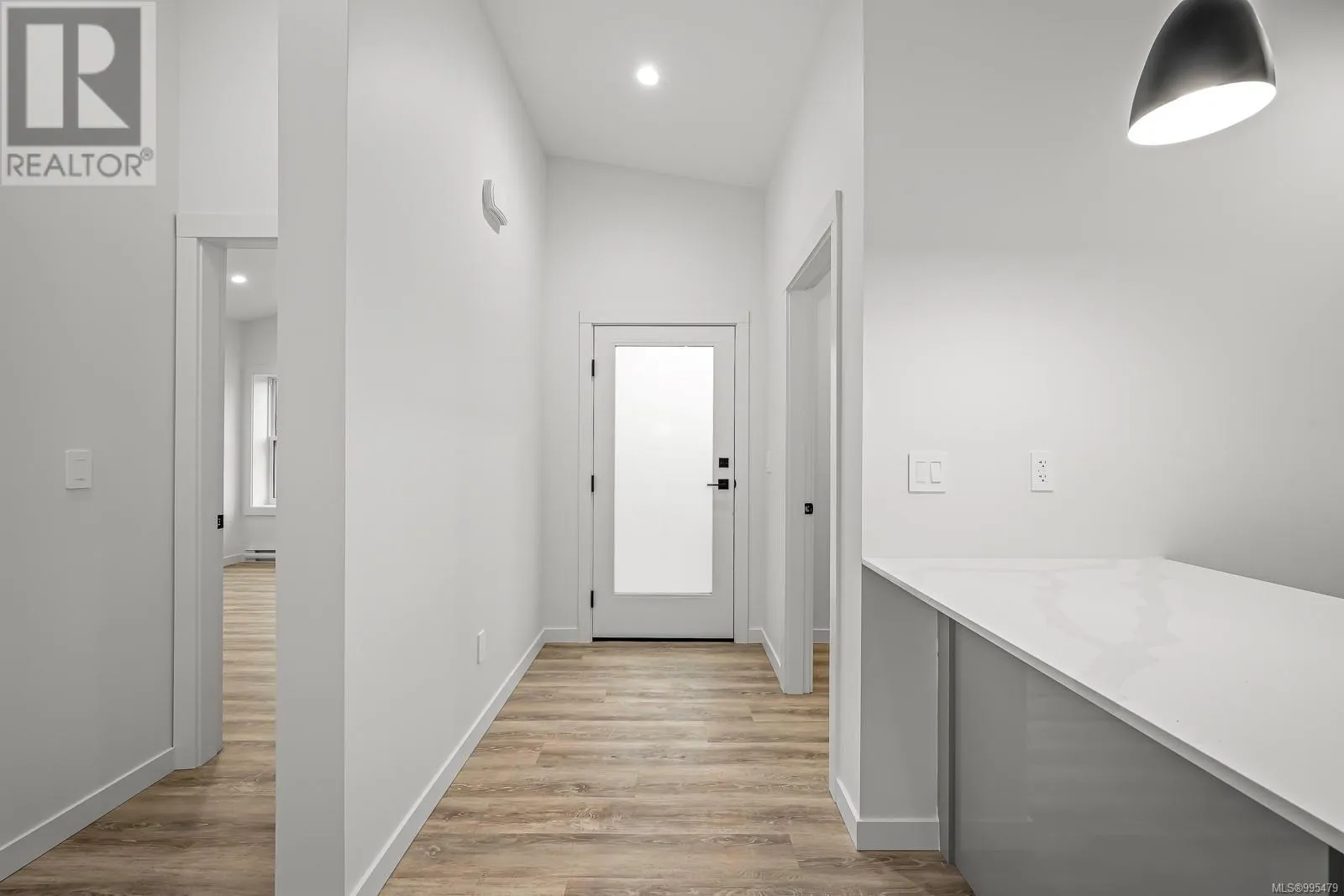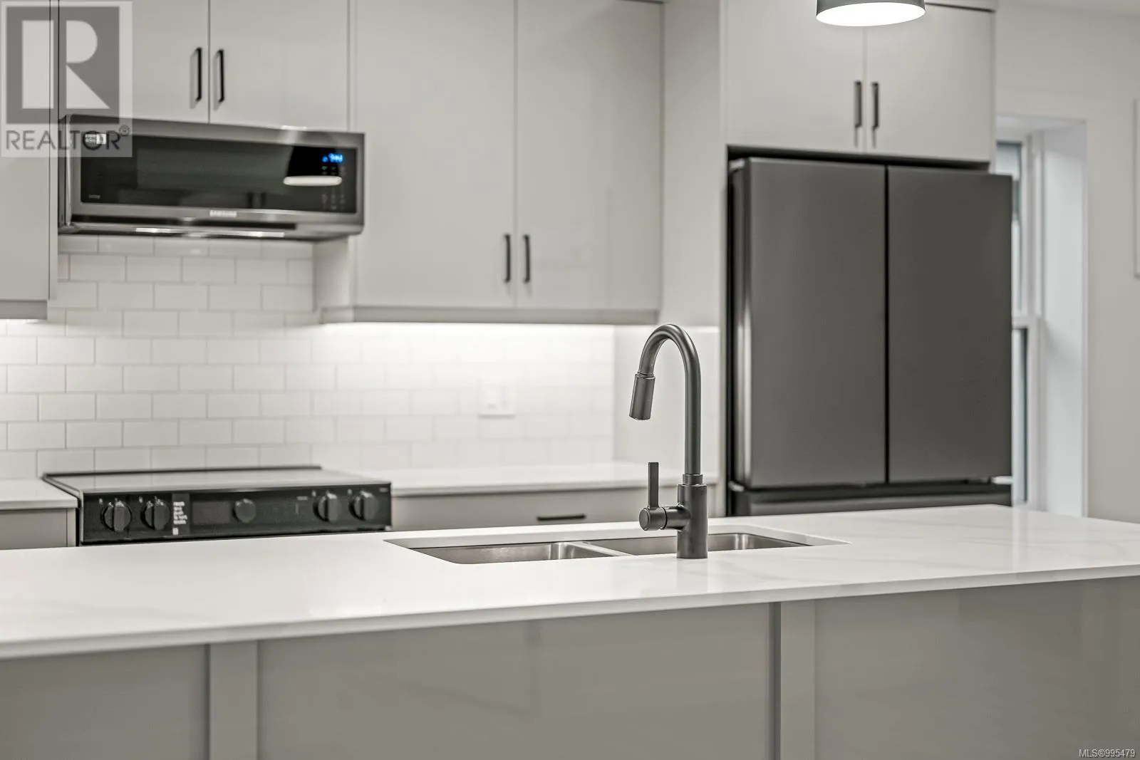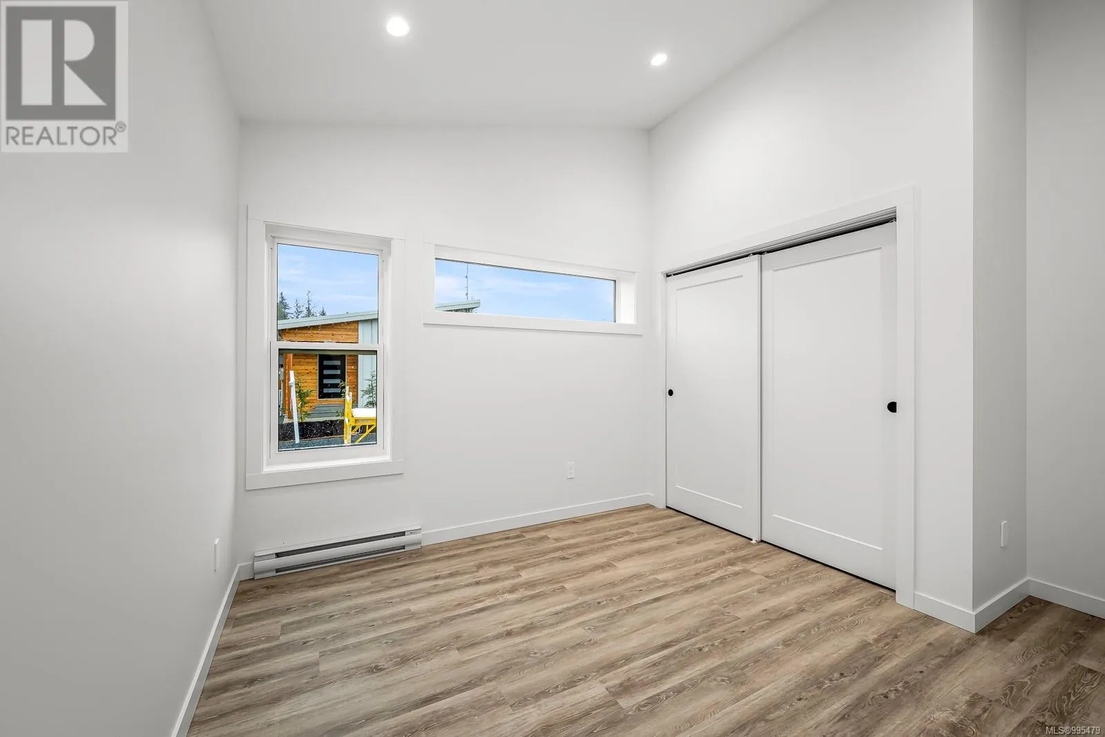 New and Improved, the Great Slaty is beautiful 3 bed 2 bath home offering incredible value. Spanning over 1,300 sq ft, you'll be Impressed with the spacious layout, contemporary design and high end finishings. Turn-Key ready with full appliance package, quartz countertops, heat pump, black accent fixtures, contemporary kitchen cabinets, large island and well appointed laundry room with storage. The open concept kitchen-dining-living area is light and airy with soaring 12 ft vaulted ceilings, 4 windows a large double patio door, great views over the forest. This home Is upgrade with a gas fireplace for easy warmth. The showstopper Is the 14' x 10' covered rear patio, perfect for relaxing with family and entertaining friends. With a metal frame, metal siding and metal roof, maintenance Is minimal. Enjoy the 12' walls, high energy performance and low running costs. GST applies. The Flats of Cumberland is a brand new community of 56 beautiful homes. (id:27476)