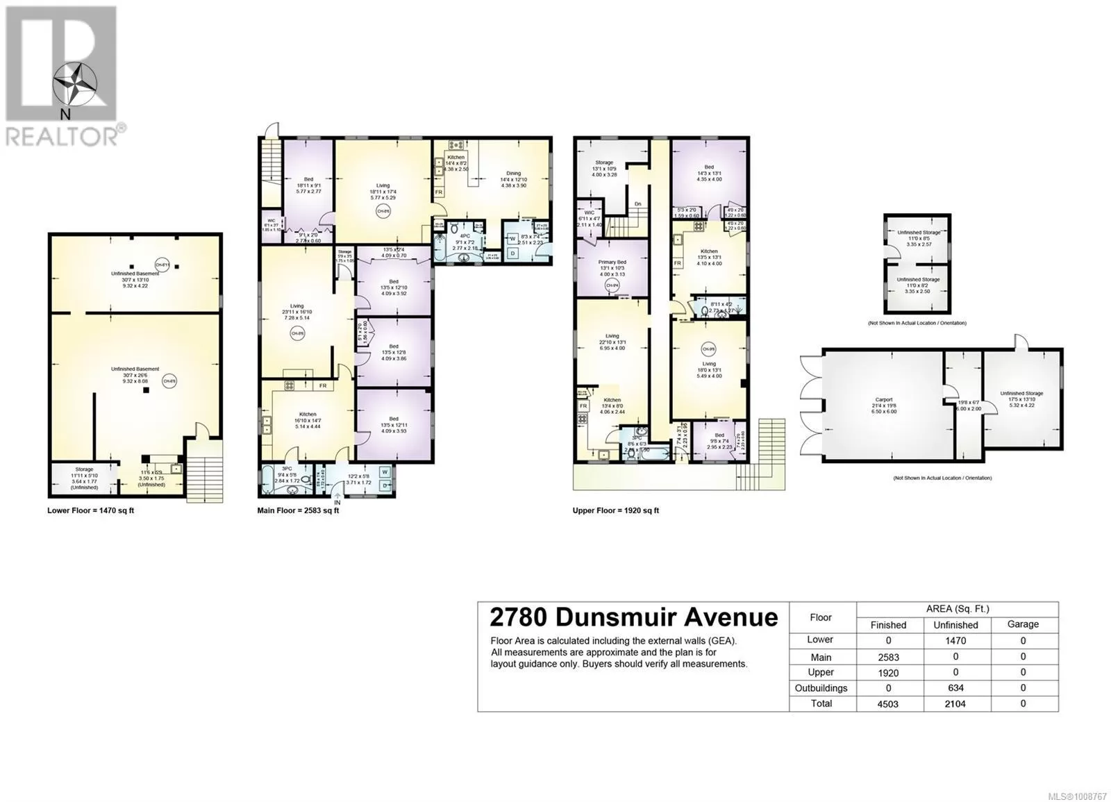 Welcome to 2780 Dunsmuir Avenue, a rare offering of this historic, commercially zoned multi-family building on the corner of Cumberland's Main Street and 5th Street. This building (with 4503 square feet of finished living space) currently houses 4 dwelling units: a 3-bedroom, a 2-bedroom, and two one-bedroom units. There is also a 1470 square foot unfinished basement that could be utilized for tenant storage or be repurposed to create storage income. The detached carport areas provide excellent covered storage for boats, bikes, tools, etc. Zoned VCMU-1, this property offers a diverse range of uses, including hotel/motel, professional services, retail, office, and residential apartments, among many other opportunities. An easy walk to the main shopping and cultural centre on Dunsmuir, close to the Village Park, BMX track, and all the mountain biking/hiking trails of the Cumberland Forest. For more information, please contact Ronni Lister at 250-702-7252 or ronnilister.com. You can also reach out to Aaron Kitto at 250-650-8088 or kittorealestate.com. (id:27476)