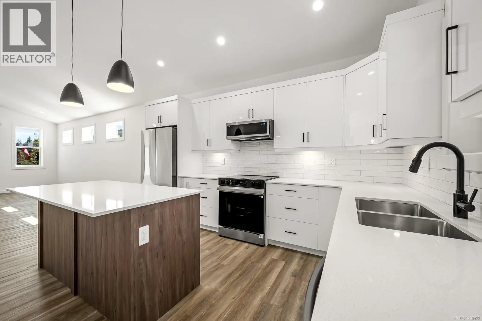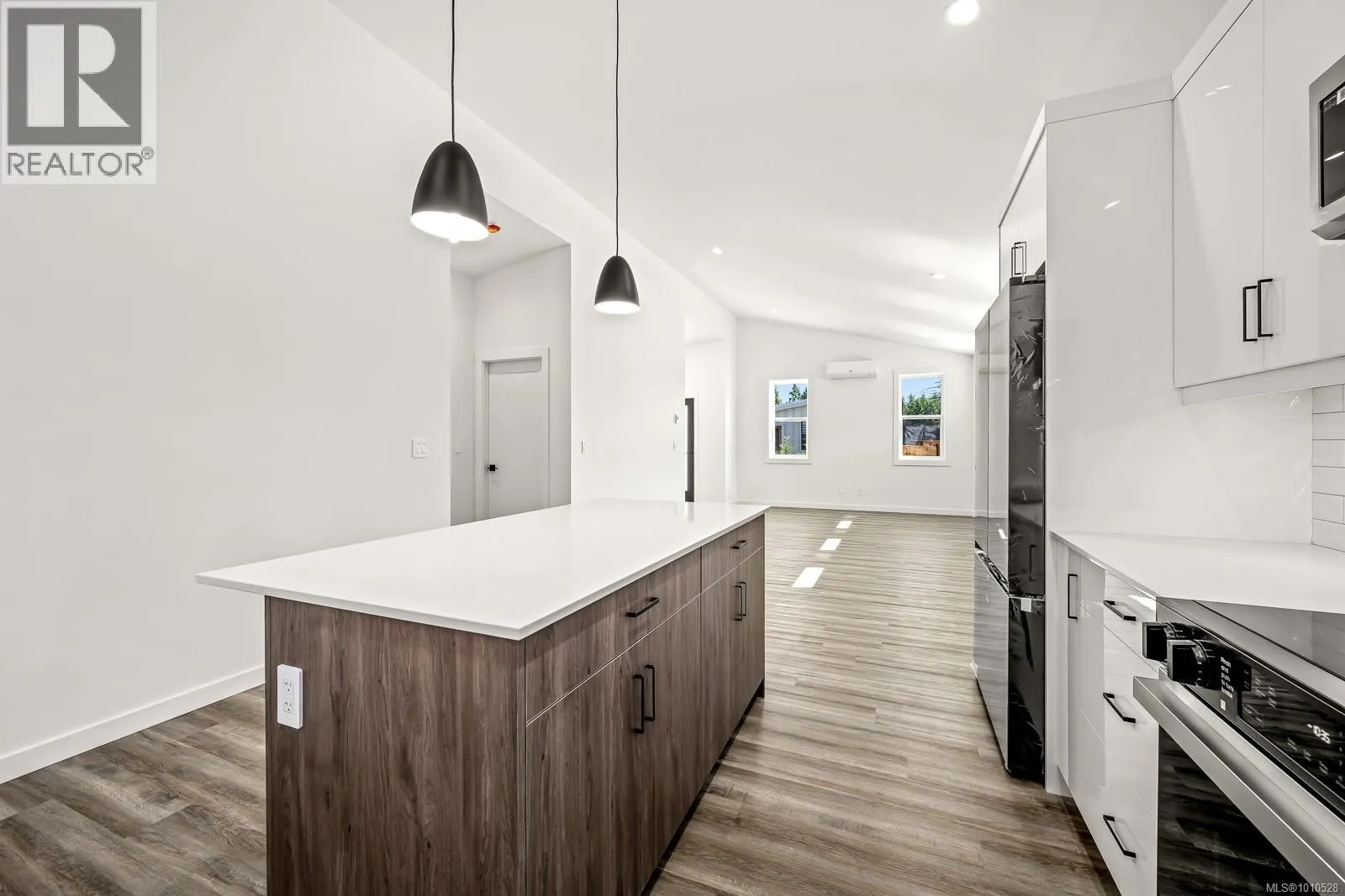 Welcome to the Bennett! You will love our newest layout at the Flats of Cumberland. Spanning an impressive 1,155 sq ft, this 2 bed 2 bath home is simply stunning. Immediately you'll be drawn to the 12' vaulted ceilings with plenty of natural light, modern white cabinetry in the kitchen and bathrooms, quartz countertops and accented kitchen island. The black accents pair beautifully with the finishing creating a timeless yet contemporary style. Bask on the sunny southeast facing back patio and enjoy a low low low maintenance yard. FuII appliance package included. Heat Pump as standard. Crawlspace for extra storage. Longer driveway = longer vehicles are no problem. With 4 other layouts available we have what you're looking for! GST Applies. Book your showing today. More info at www.theflatsofcumberland.ca (id:27476)