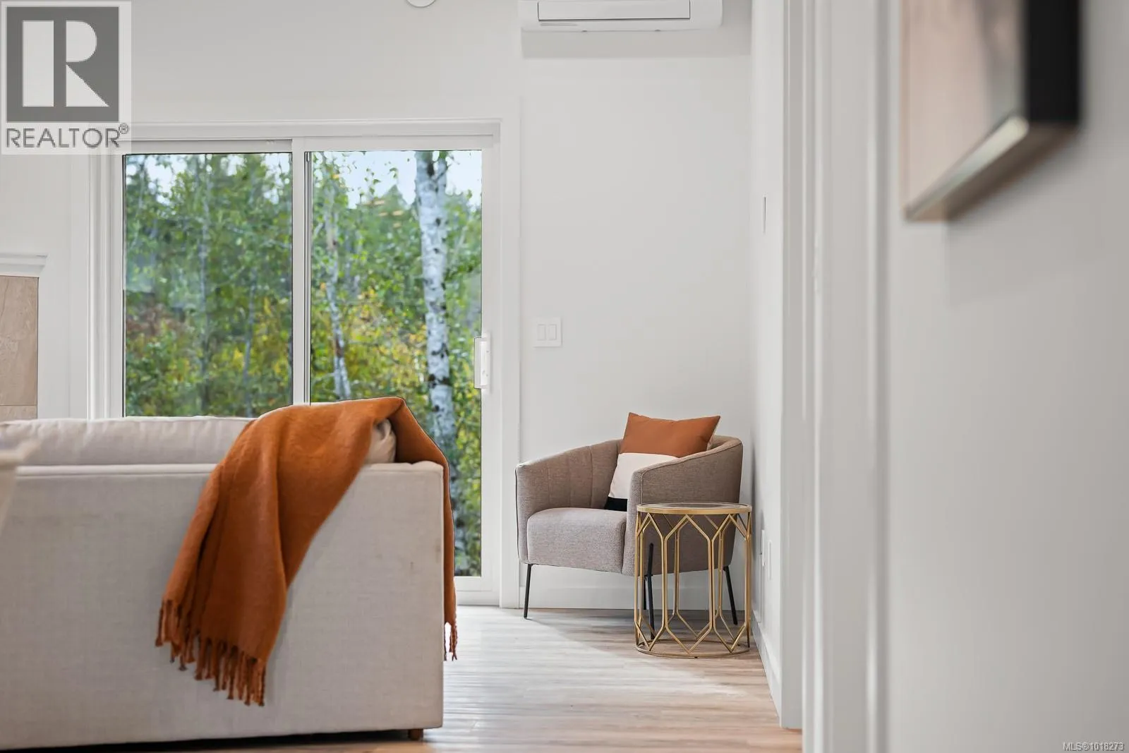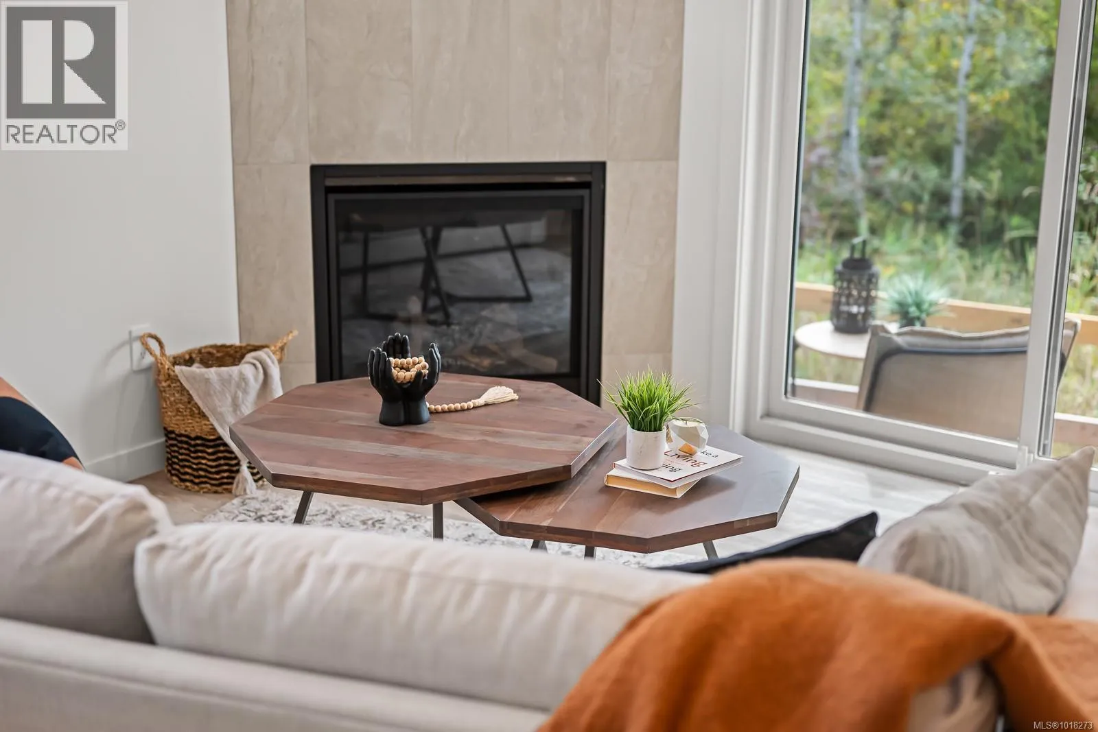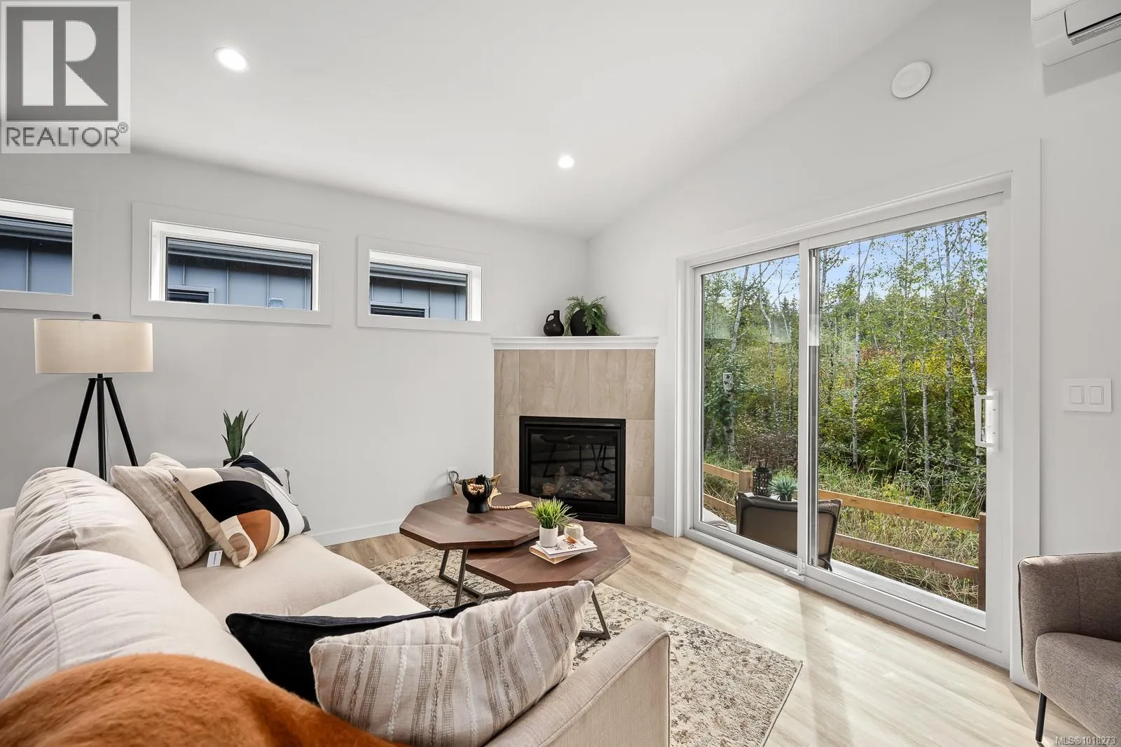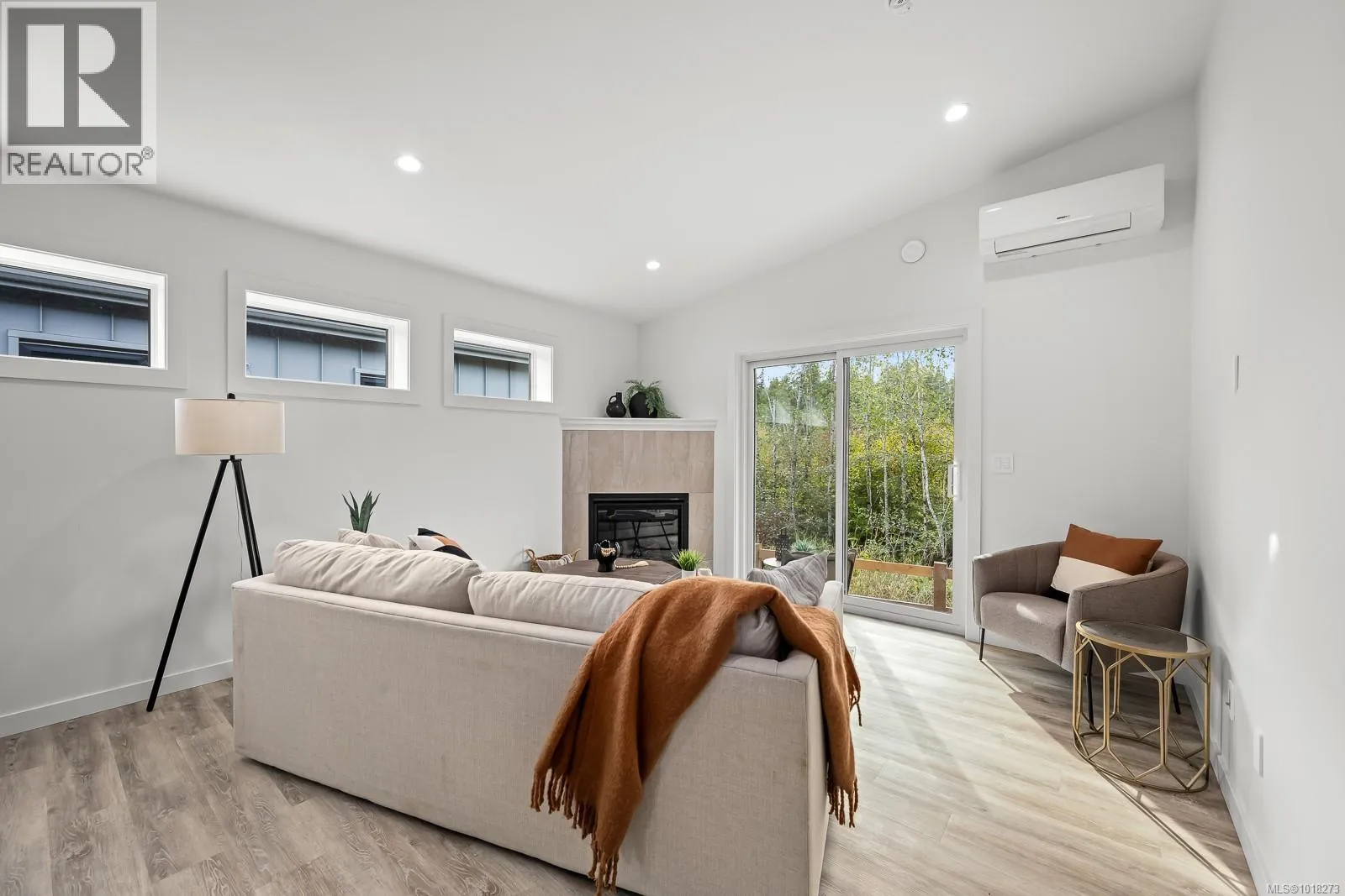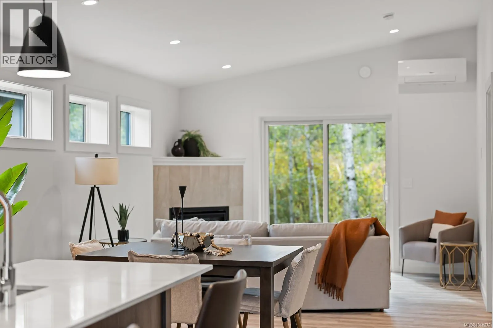Welcome to our newest layout and our newest show suite, The Williamson. It is 1,130 sq ft, and has 2 bedrooms, 2 bathrooms and a very flexible den space. The Williamson has a fantastic open concept design with a Kitchen, Dining, Living and Outdoor space all in a convenient flow. The kitchen island is long and perfect for entertaining family and friends. Relax in the vaulted ceilings whilst enjoying the warmth and coziness of the natural gas fireplace. In addition the heat pump will heat and cool efficiently. The rear private patio is your sanctuary to unwind and enjoy nature and forest views. The primary bedroom features a large built-in closet with two sliding doors and access to a serene 3 piece ensuite. Don't forget the laundry room and upper cabinet storage. The den offers so much potential as an office, exercise, hobby or spare room. Check out our video walkthroughs and information at www.theflatsofcumberland.ca GST applies. Book your showing today (id:27476)