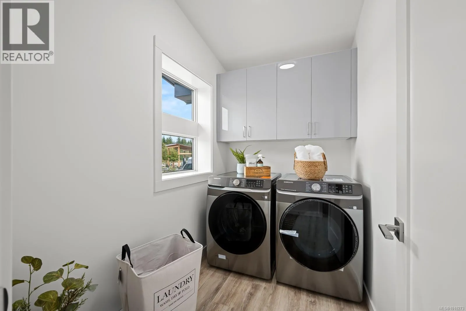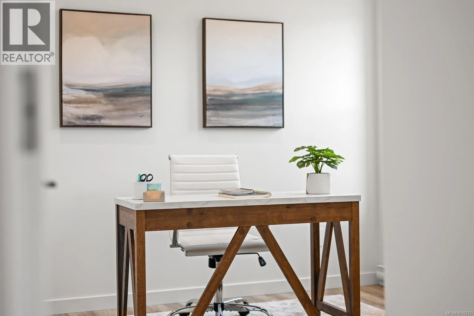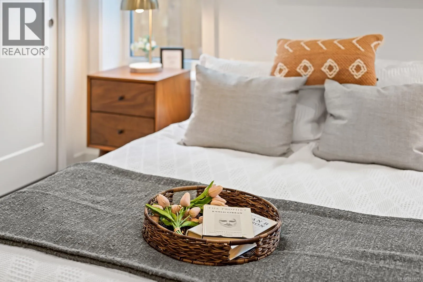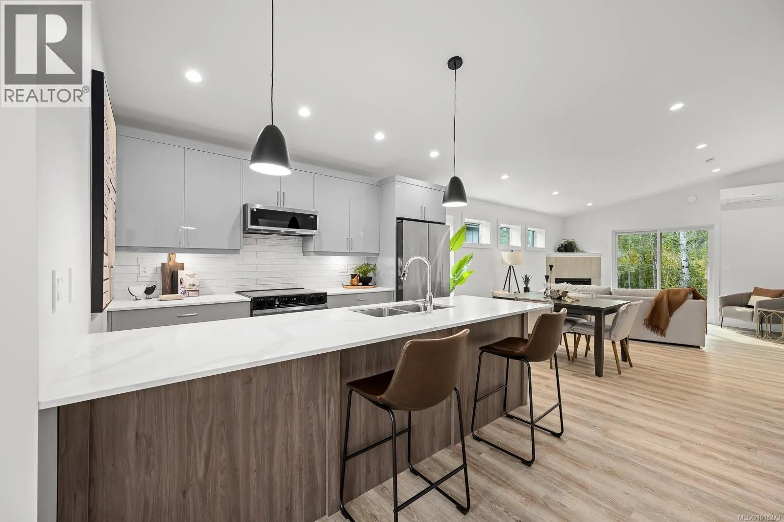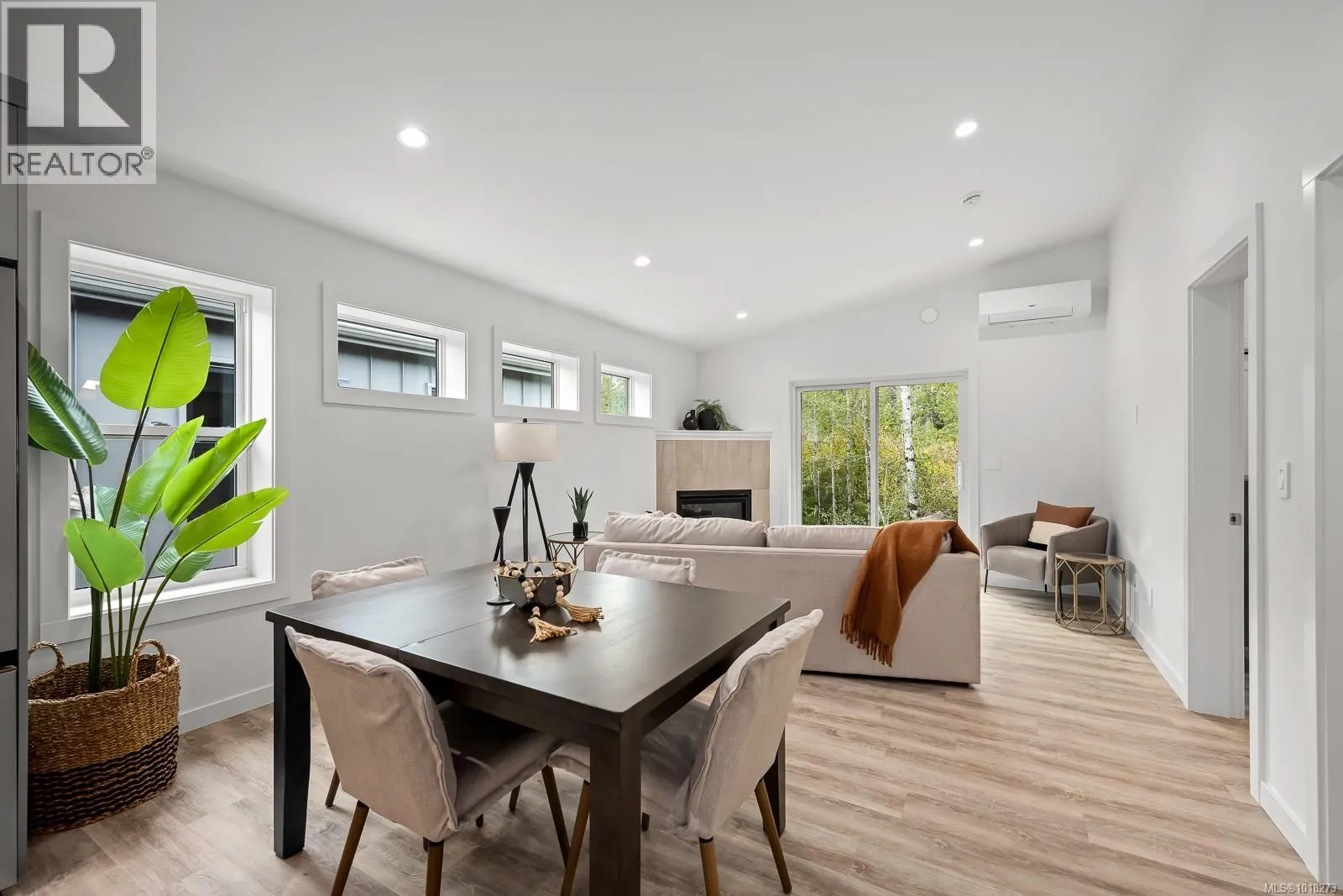 Welcome to our newest layout and our newest show suite, The Williamson. It is 1,130 sq ft, and has 2 bedrooms, 2 bathrooms and a very flexible den space. The Williamson has a fantastic open concept design with a Kitchen, Dining, Living and Outdoor space all in a convenient flow. The kitchen island is long and perfect for entertaining family and friends. Relax in the vaulted ceilings whilst enjoying the warmth and coziness of the natural gas fireplace. In addition the heat pump will heat and cool efficiently. The rear private patio is your sanctuary to unwind and enjoy nature and forest views. The primary bedroom features a large built-in closet with two sliding doors and access to a serene 3 piece ensuite. Don't forget the laundry room and upper cabinet storage. The den offers so much potential as an office, exercise, hobby or spare room. Check out our video walkthroughs and information at www.theflatsofcumberland.ca GST applies. Book your showing today (id:27476)