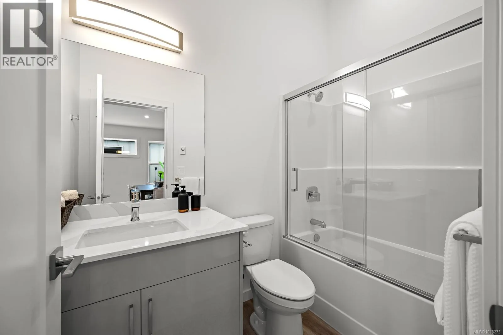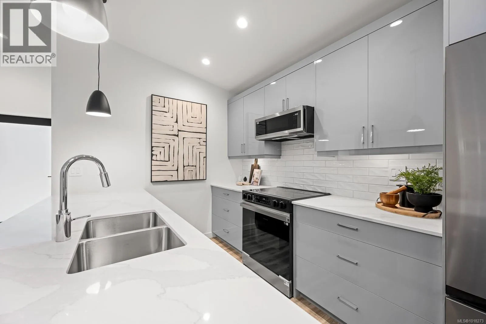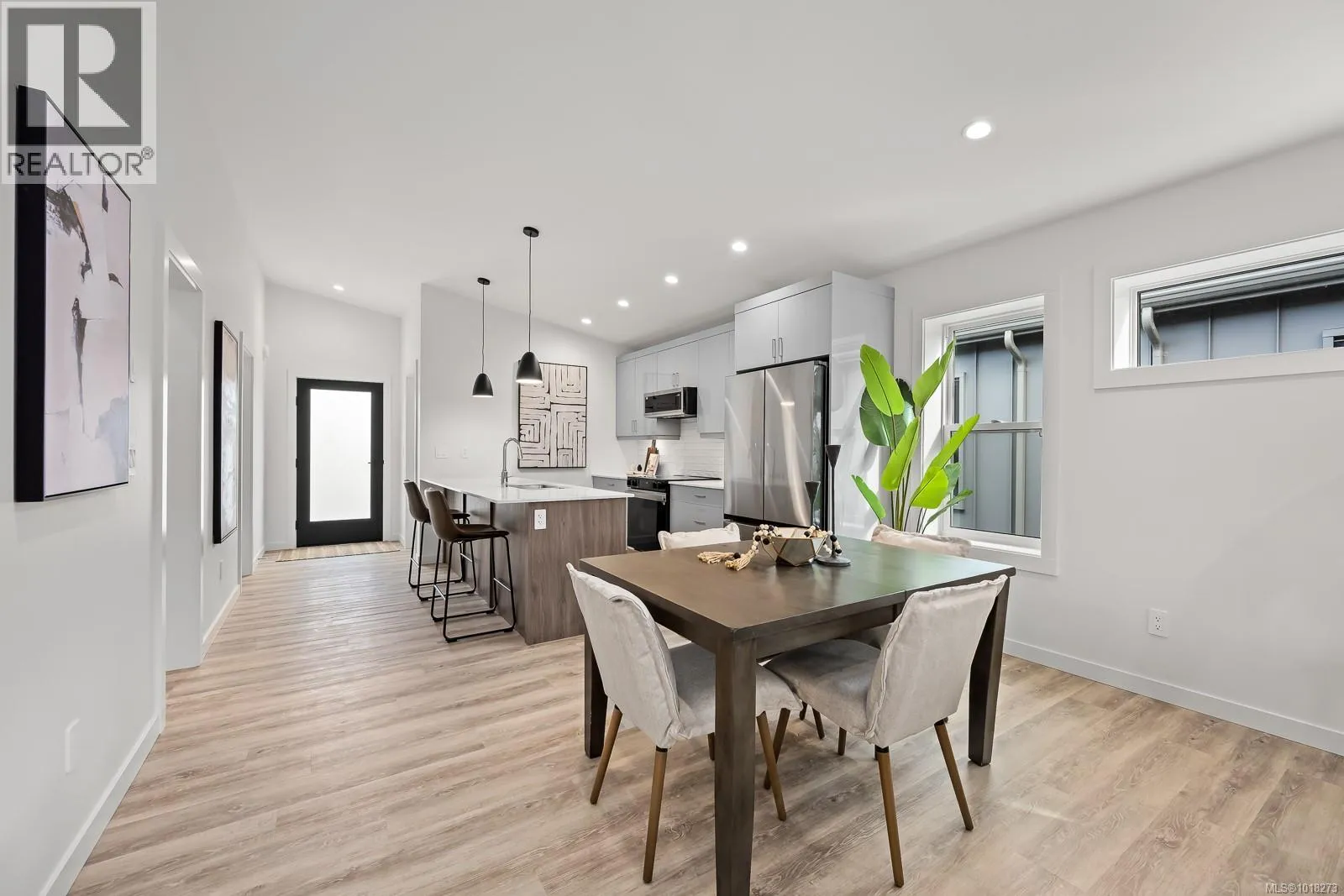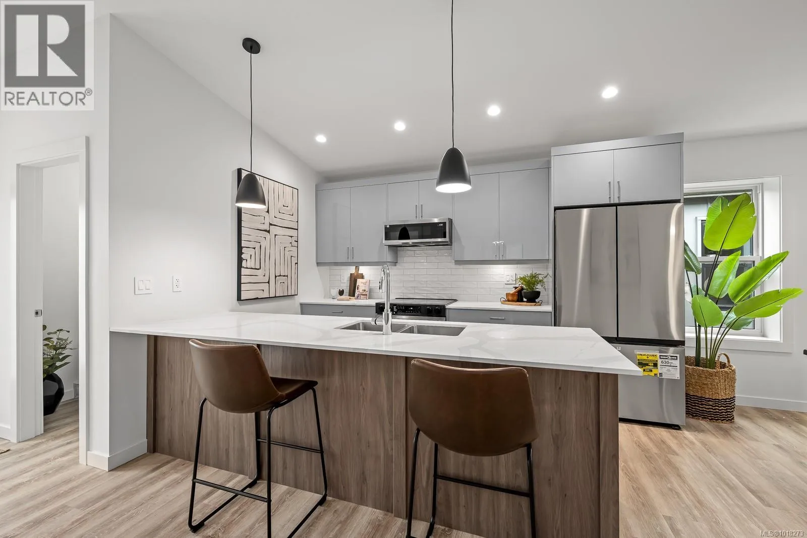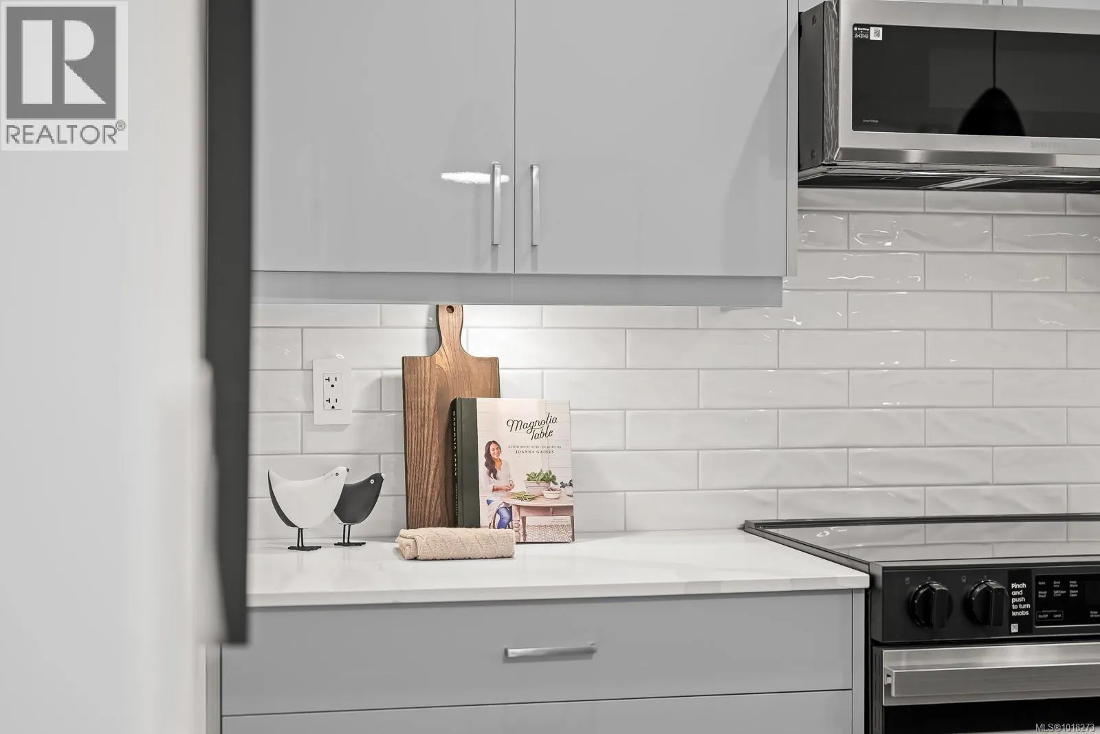 Welcome to our newest layout and our newest show suite, The Williamson. It is 1,130 sq ft, and has 2 bedrooms, 2 bathrooms and a very flexible den space. The Williamson has a fantastic open concept design with a Kitchen, Dining, Living and Outdoor space all in a convenient flow. The kitchen island is long and perfect for entertaining family and friends. Relax in the vaulted ceilings whilst enjoying the warmth and coziness of the natural gas fireplace. In addition the heat pump will heat and cool efficiently. The rear private patio is your sanctuary to unwind and enjoy nature and forest views. The primary bedroom features a large built-in closet with two sliding doors and access to a serene 3 piece ensuite. Don't forget the laundry room and upper cabinet storage. The den offers so much potential as an office, exercise, hobby or spare room. Check out our video walkthroughs and information at www.theflatsofcumberland.ca GST applies. Book your showing today (id:27476)