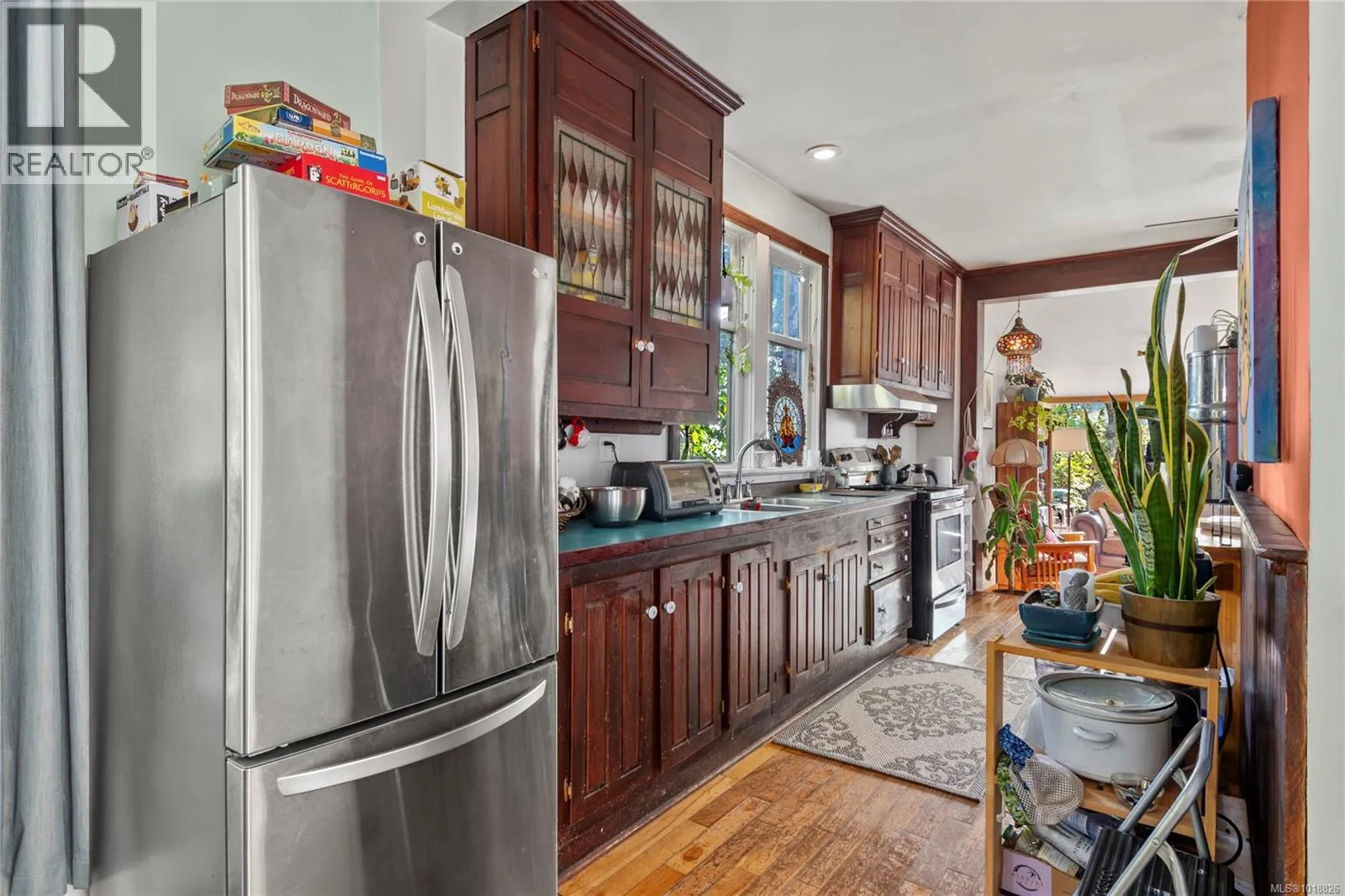 Located in the heart of Old Cumberland and steeped in rich history, this character-filled home was once a popular boarding house in the early 1900s. The home was lifted in 1991 and set on a new foundation, blending heritage charm with modern stability. Inside, the grand entrance and winding staircase set the tone, complemented by high ceilings and beautiful mountain views. The classic looking Alderlea woodstove (2014) creates a cozy focal point, while practical updates include new plumbing (2014) and an insulated attic (2024). Currently configured as three bedrooms, it can easily be converted back to four with the simple addition of one wall upstairs. Outside, enjoy a lush yard with mature pear, plum, and cherry trees, plus an established grape vineâan inviting space that perfectly captures the spirit of this storied Old Cumberland home. Pedal strokes from world class trails, 20 mins from the base of Mt Washington and Comox Int Airport. Book your showing today! (id:27476)