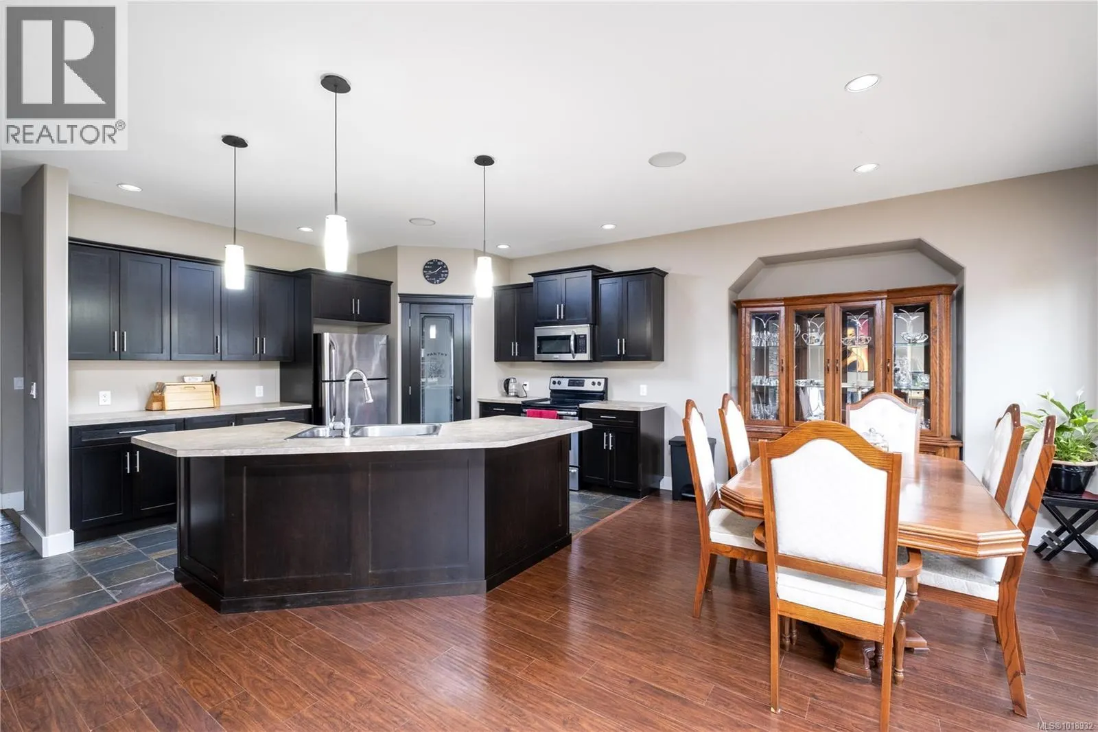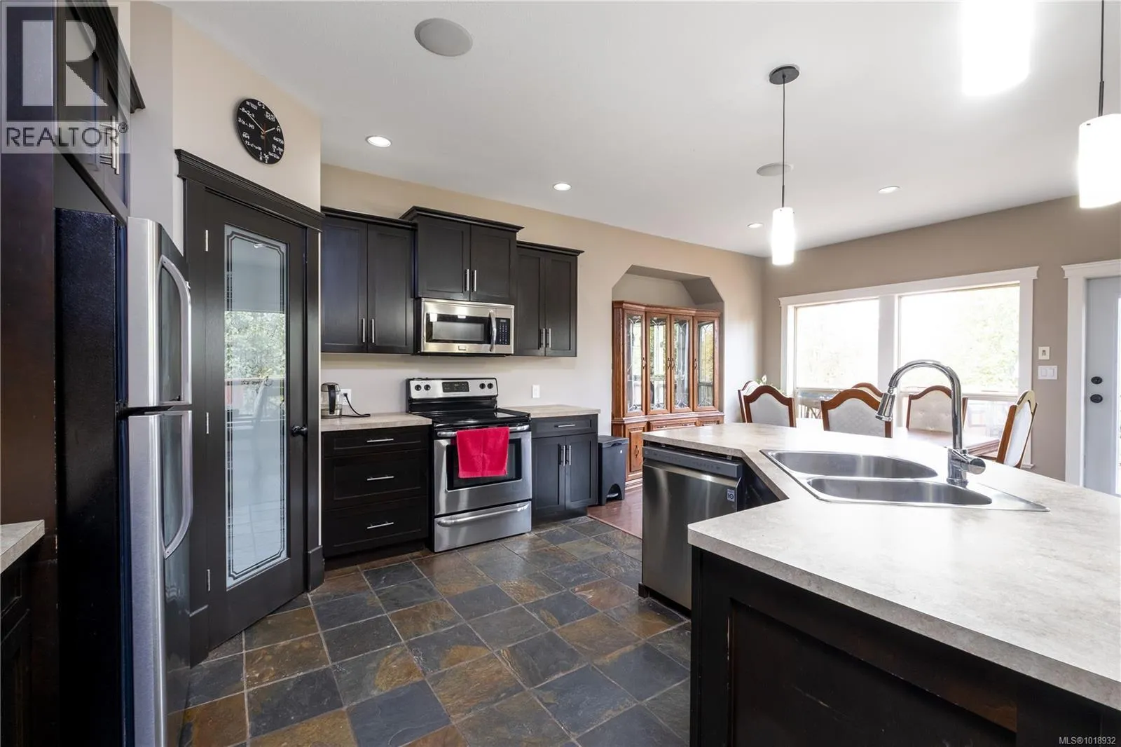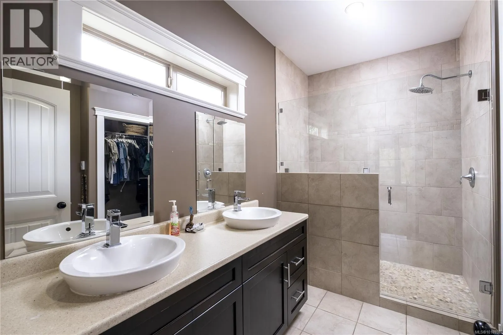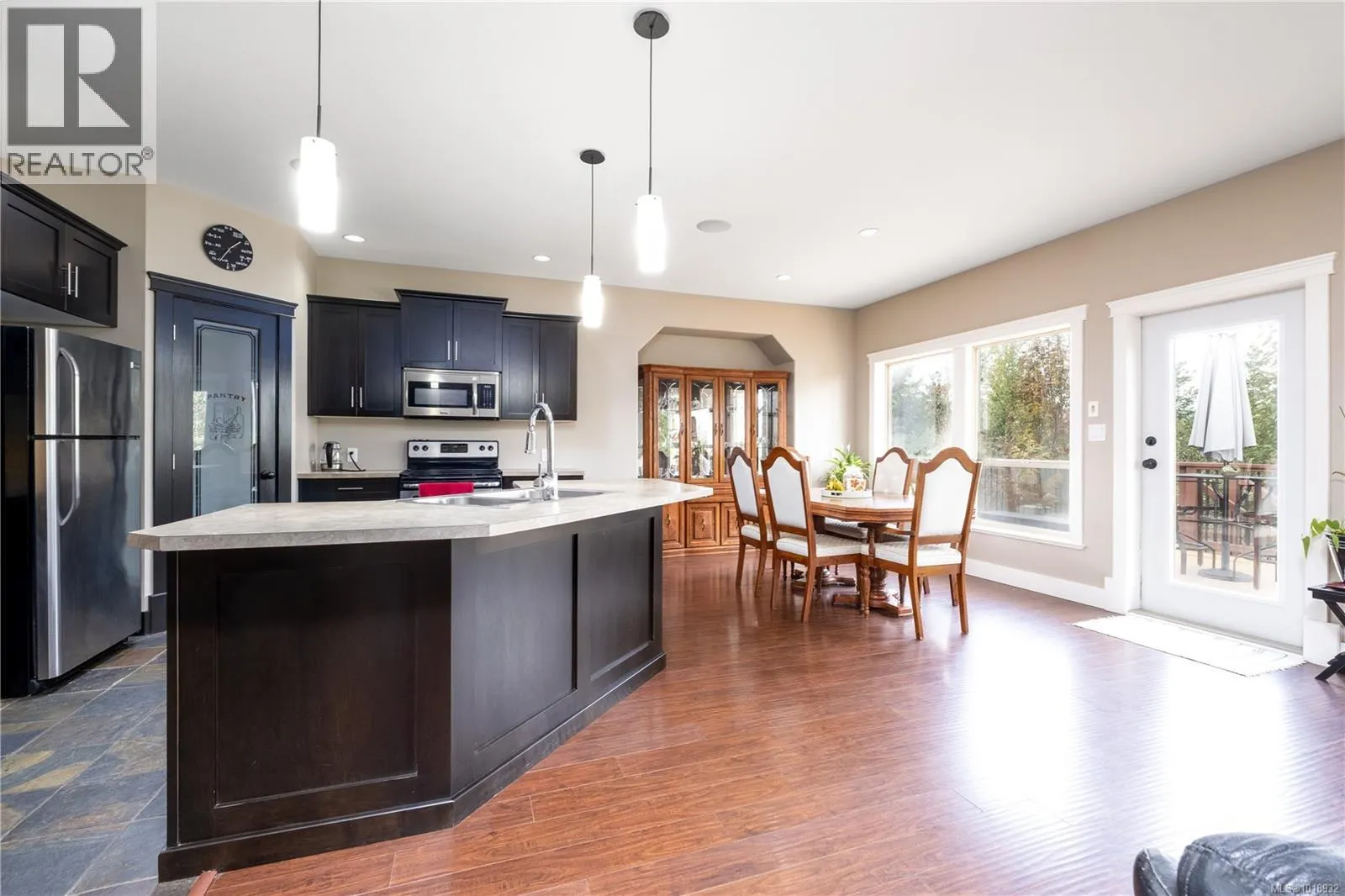 Modern 2600 sqft plus family home centrally located in the vibrant village of Cumberland. Highly desirable main floor entry with daylight basement means there's lots of light and room for everyone! This residence built in 2011 features an open concept living/dining/kitchen combo which is perfect for family life and entertaining. Large deck off back where one can sit back and enjoy the private backyard and green space behind. Backyard is a blank slate awaiting your ideas.Master bedroom is huge and sports a generous ensuite and walk in closet. Bedroom upfront near main entrance is ideal for an office or kids. Downstairs is an additional two bedrooms, rec room and family room. Storage solutions abound on both levels and the double garage easily holds vehicles, sports equipment etc. Heat pump offers energy efficient heating in winter and cooling in summer. Recreation, schools and vibrant village center are all within easy reach. Come check out and live the cool Cumberland lifestyle today! (id:27476)