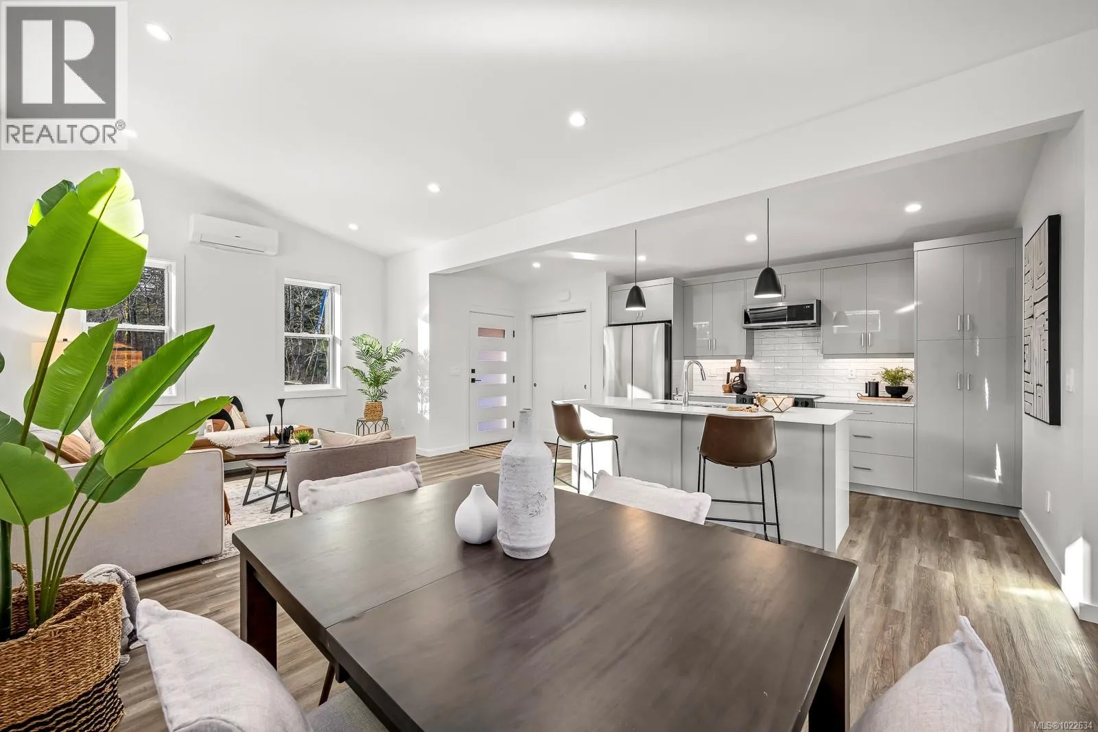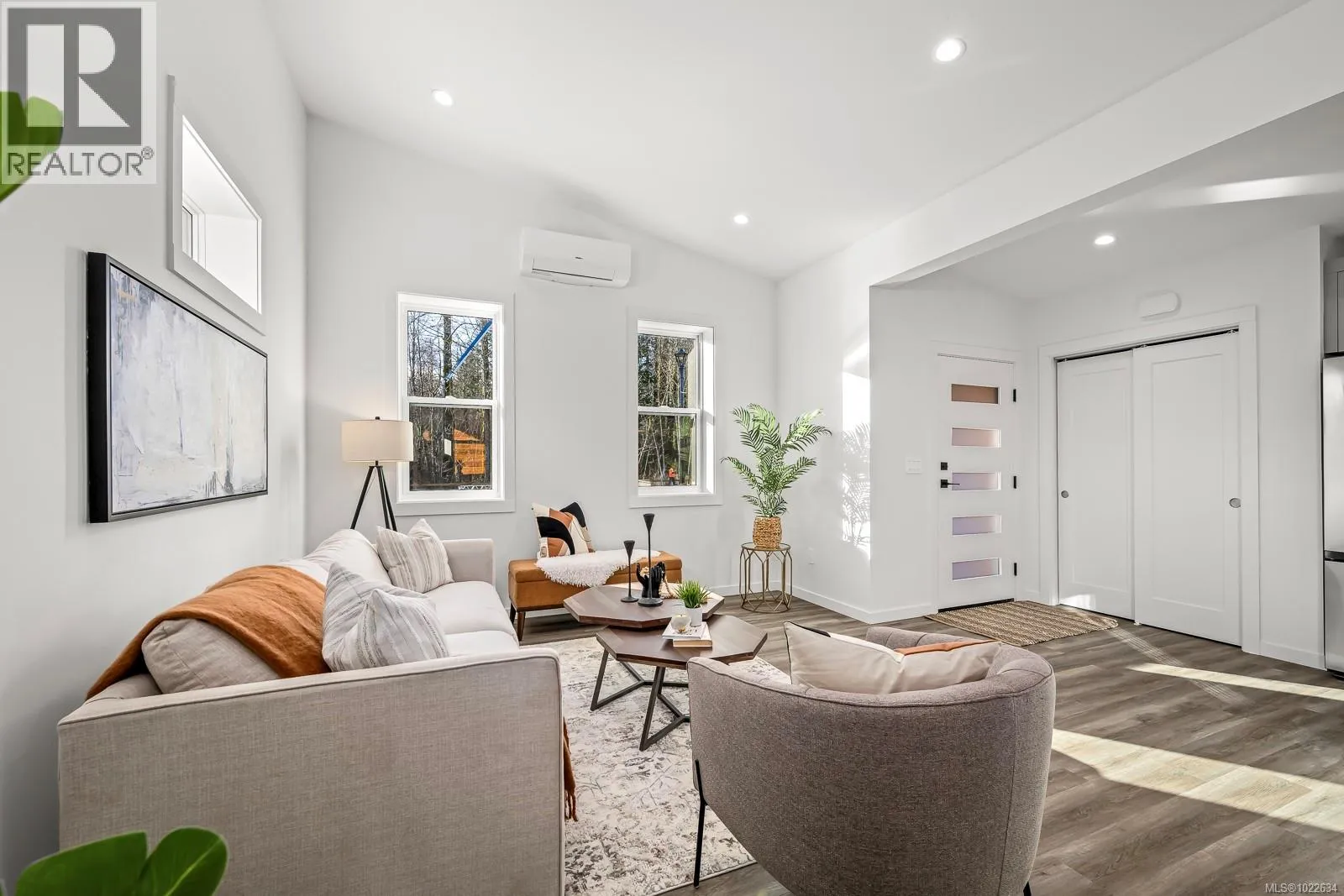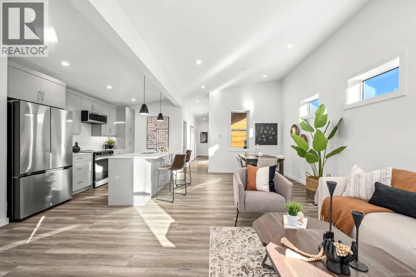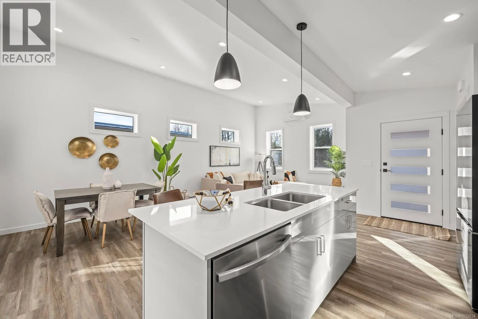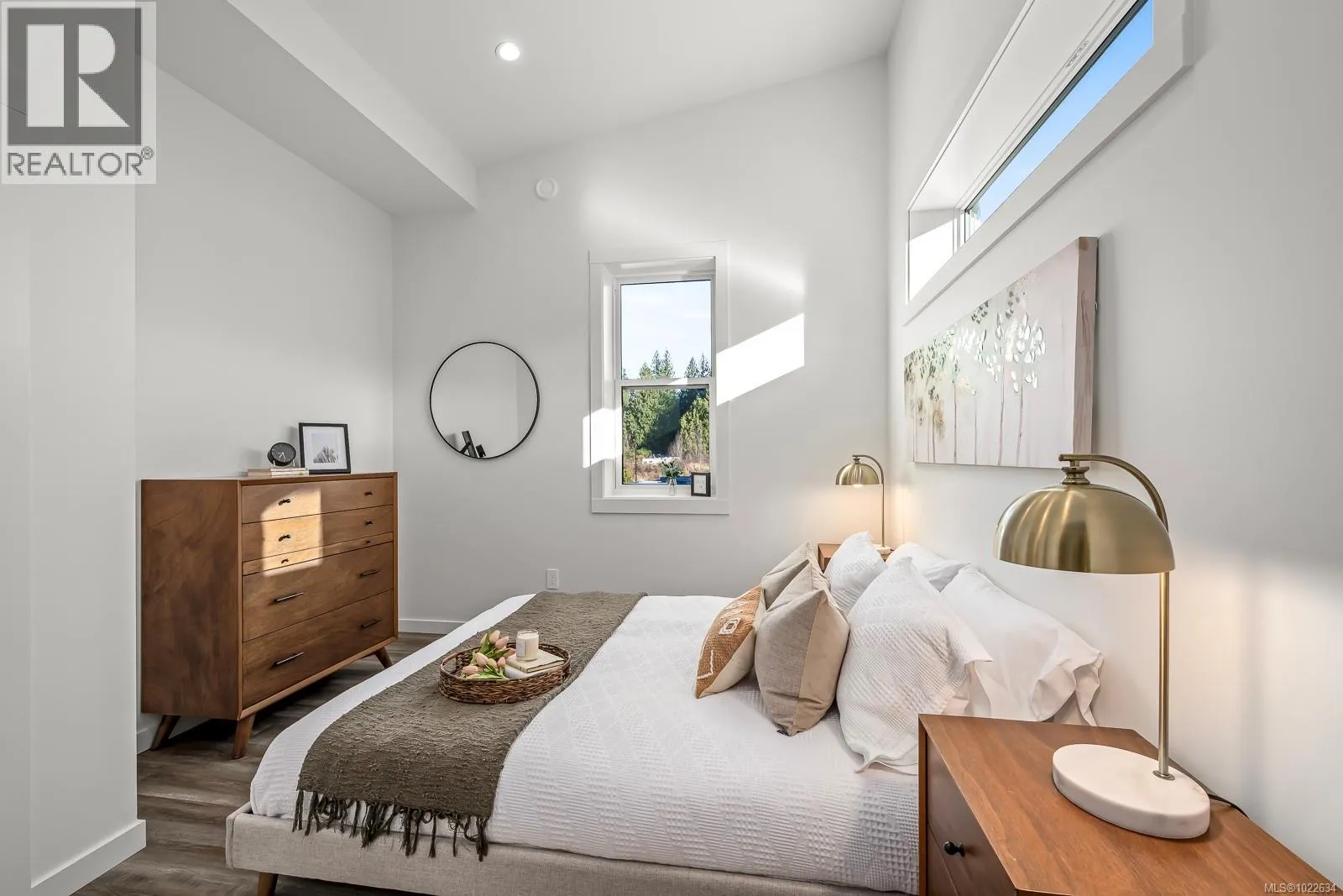 New and improved specification! The Phase 2 Lewis model is a gorgeous contemporary style home spanning 1,104 sq ft, with 2 bedrooms, 1 bathroom and a dreamy south-facing private covered patio. You'll love the open concept kitchen dining layout with soaring 11 7' ceilings, tasteful fixtures and accents throughout, modern high gloss white kitchen cabinets, tiled backsplash and quartz countertops. Don't forget the full appliance package. Large laundry room with sink and upper cabinets. Vaulted ceilings continue through to the bedrooms with large windows giving plenty of light. With steel frame construction, metal roof and metal siding, maintenance is minimal. The homes are incredibly well insulated and the efficient mini split heat pump will keep you warm and cool. Enjoy the extra long concrete driveway, fenced backyard, landscaping, irrigation and a shed as standard. Enjoy the plentiful storage space with numerous closets and a 5' poured concrete crawlspace. GST applies (id:27476)