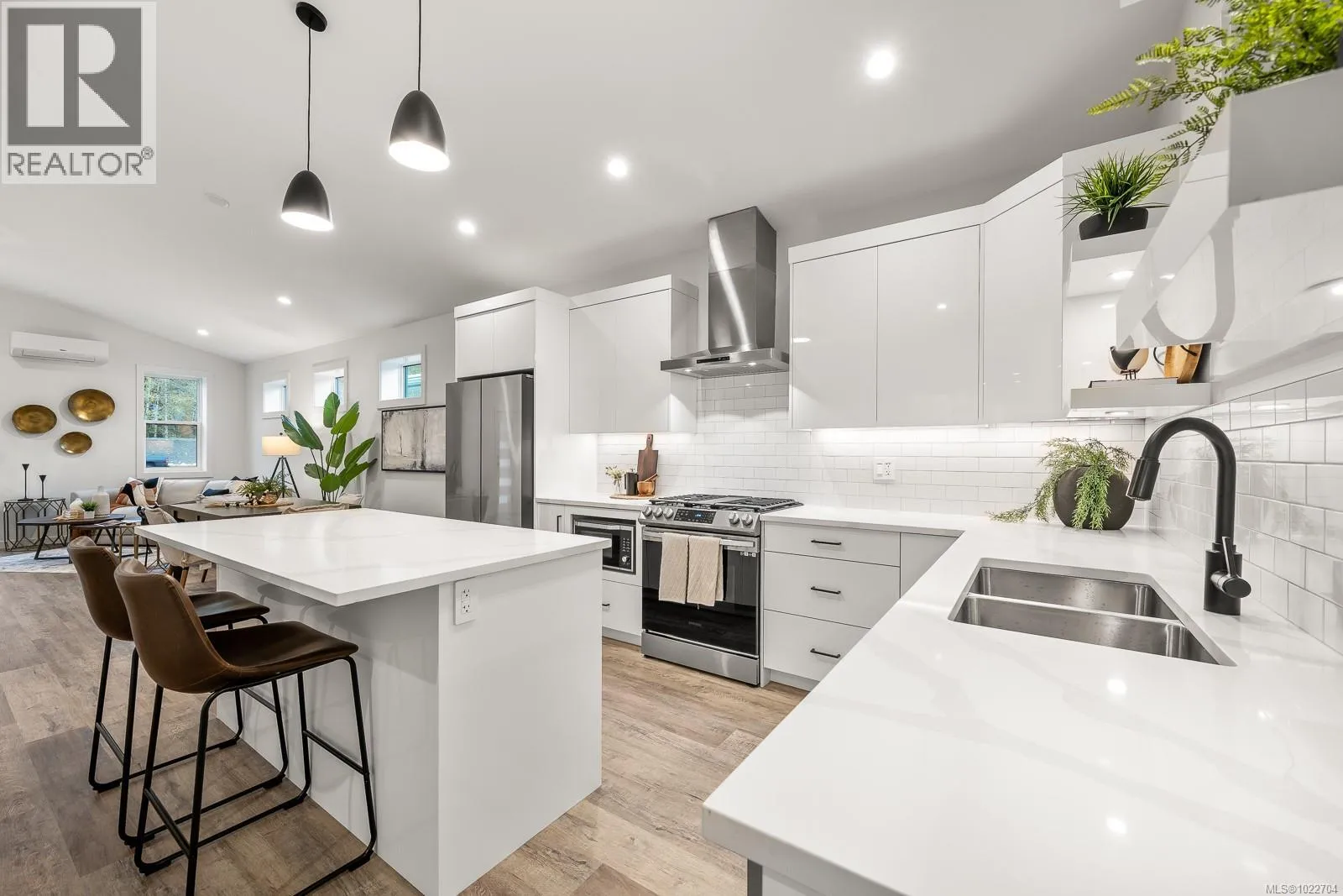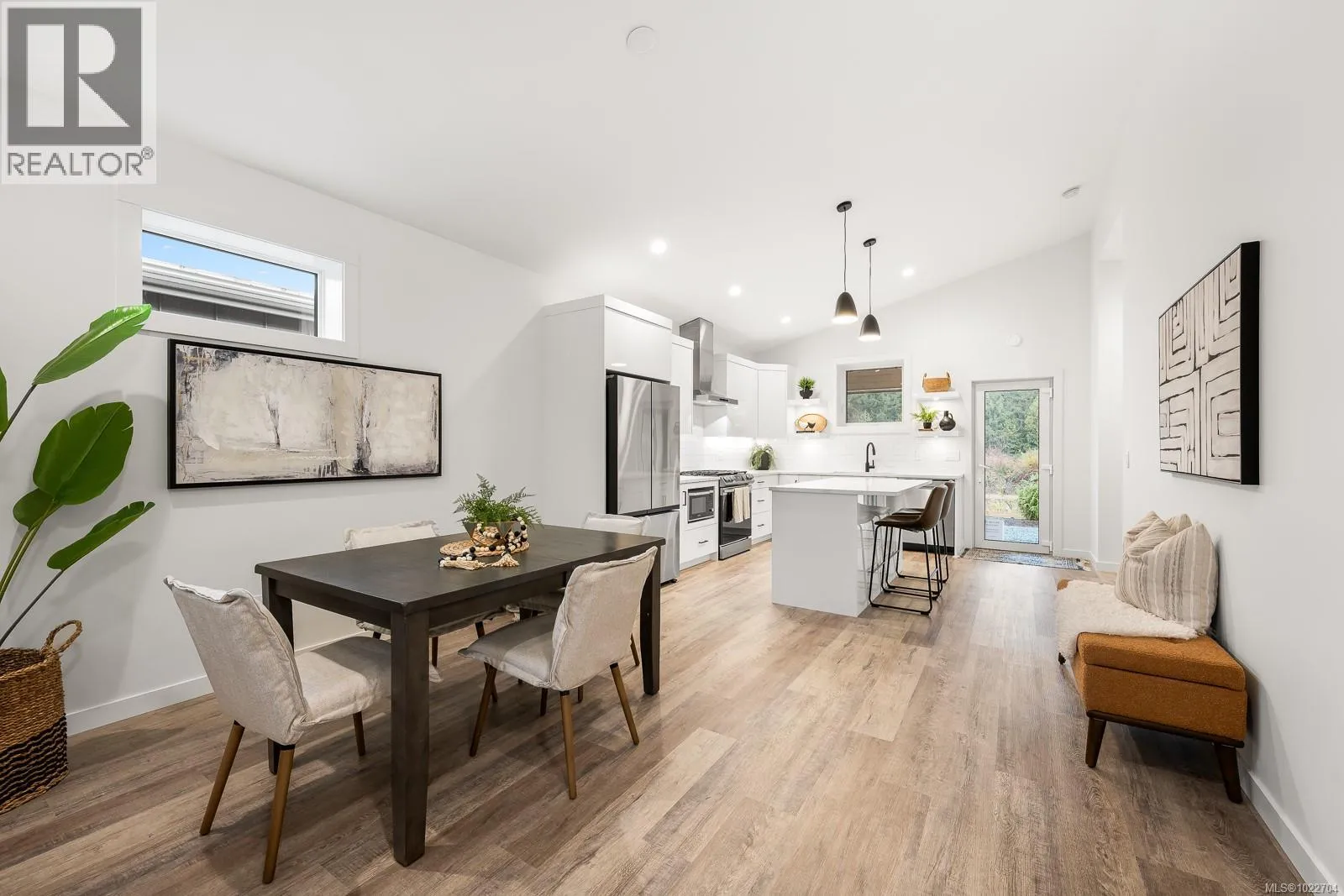 New and improved, The Northern Flicker is a stunning 2 bed 2 bath home offering incredible value. Spanning over 1,200 sq ft, you'll be impressed with the spacious layout, contemporary design and high end finishings. Turn-key ready with full appliance package, quartz countertops, heat pump, modern kitchen cabinets, large island and well appointed laundry room with storage, sink and quartz countertops. The open concept kitchen-dining-living area is light and airy with soaring 12 ft vaulted ceilings and 7 windows for plenty of natural light. The show stopper Is the 14' x 10' covered rear patio, perfect for relaxing with family and entertaining friends. With a metal frame, metal siding and metal roof, maintenance is minimal. Notice the thick 12' walls, high energy performance and low running costs. GST applies. The Flats of Cumberland is a brand new community of 56 beautiful homes (id:27476)