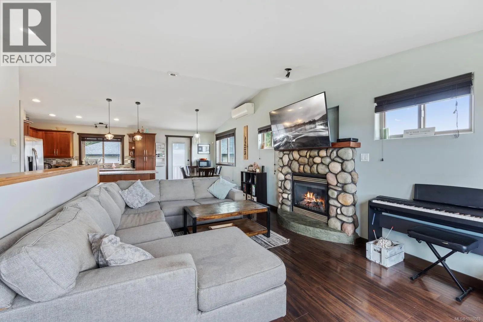 Custom built home with a legal one bedroom suite, ideally located in the vibrant Village of Cumberland. The thoughtful design and high quality construction create a home that offers both comfortable family living and excellent income potential. In the main level youâll find a bright open floor plan with vaulted ceilings through the living room, dining area, and eat in kitchen, creating a spacious and welcoming main living space. The dining area opens onto a 20x10 deck overlooking the fully fenced sunny backyard, providing a perfect extension of the living space for relaxing or entertaining. This level also includes a private primary suite complete with two closets and a three piece ensuite, two additional bedrooms, and a four piece bathroom. Comfort and efficiency are enhanced by an economical heat pump, a beautiful river rock gas fireplace, and most importantly, extra insulation between floors as well as between bedroom and bathroom walls. This additional sound separation was intentionally built in to help create quiet, private living spaces between the main home and the suite. The fully self contained one bedroom suite on the ground level features an open living, dining, and kitchen area, a four piece bathroom, its own laundry closet, and a 20x10 covered patio. With its own parking spot, private layout and added sound insulation, the suite provides excellent separation between units. At just under 2,000 square feet, this home offers the ideal setup for families looking to offset their mortgage with reliable rental income. The legal suite provides a valuable financial advantage, helping reduce monthly carrying costs while maintaining privacy and comfort. The suite will be vacant by the end of March, offering quick possession and the rare opportunity to select your own tenant at current market rental rates. All of this is located just minutes from Cumberlandâs vibrant downtown, renowned mountain biking, trails, parks, restaurants, and community amenities. (id:27476)
