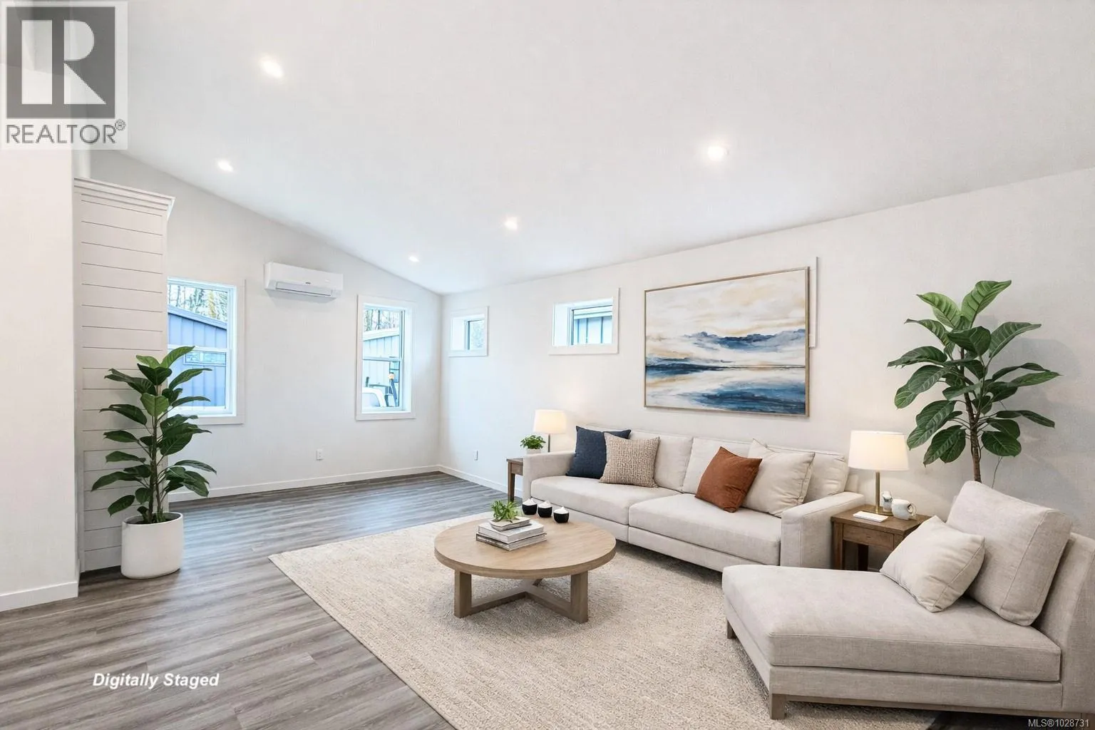 This Northern Flicker is a stunning 2 bed 2 bath home offering incredible value. Spanning over 1,200 sq ft, you'll be impressed with the spacious layout, contemporary design and high end finishings. Turn-key ready with full appliance package, quartz countertops, heat pump, modern kitchen cabinets, large island and well appointed laundry room with storage, sink and quartz countertops. Natural gas fireplace &Heat Pump! The open concept kitchen-dining-living area is light and airy with soaring 12 ft vaulted ceilings and7 windows for plenty of natural light. The show stopper is the 14' x 10' covered rear patio and spacious back garden, perfect for relaxing with family and entertaining friends. With a metal frame, metal siding and metal roof, maintenance is minimal. Notice the thick 12' walls, high energy performance and low running costs. GST applies. The Flats of Cumberland is a brand new community of 56 beautiful homes, more info at www.theflatsofcumberland.ca (id:27476)