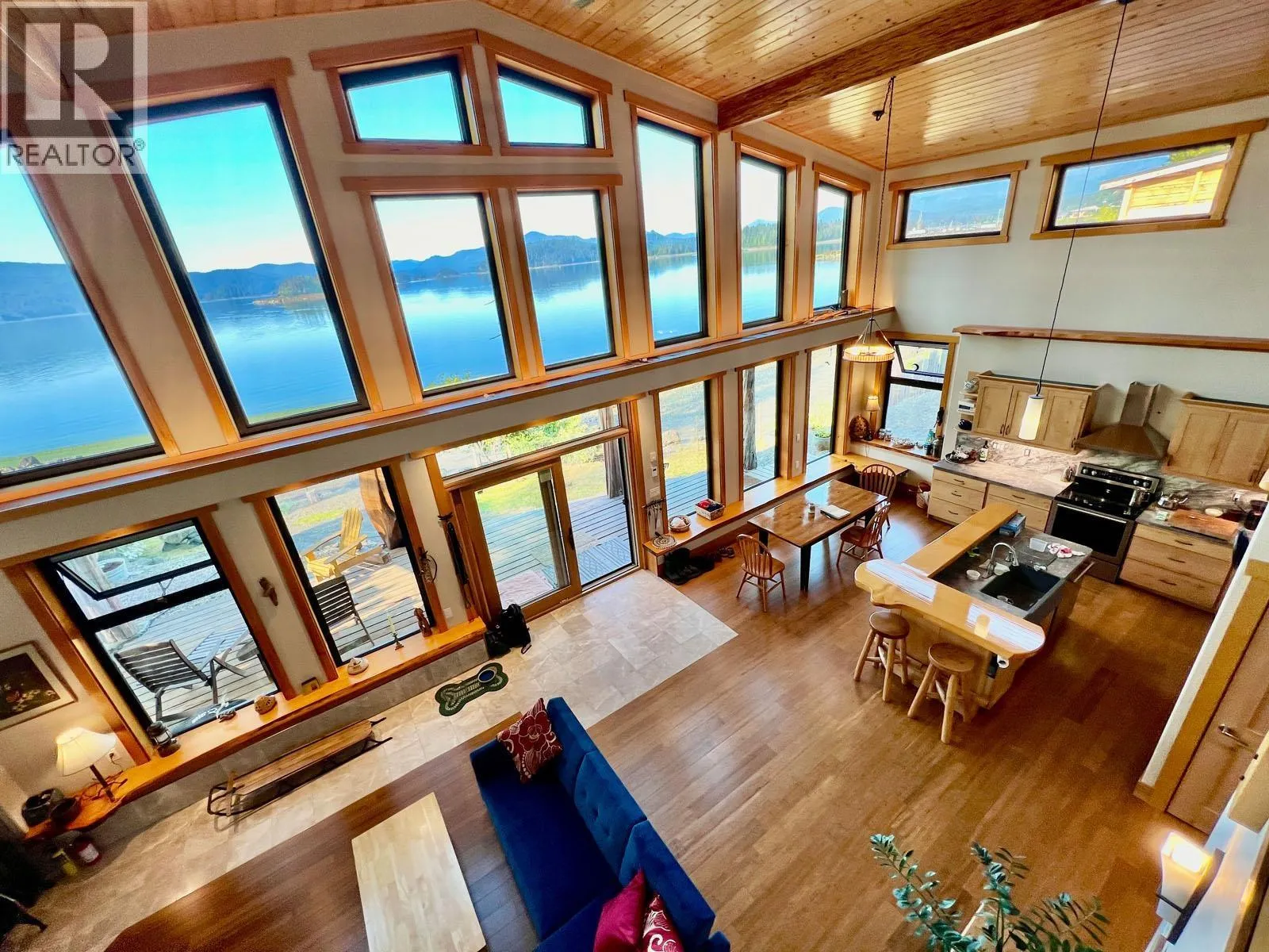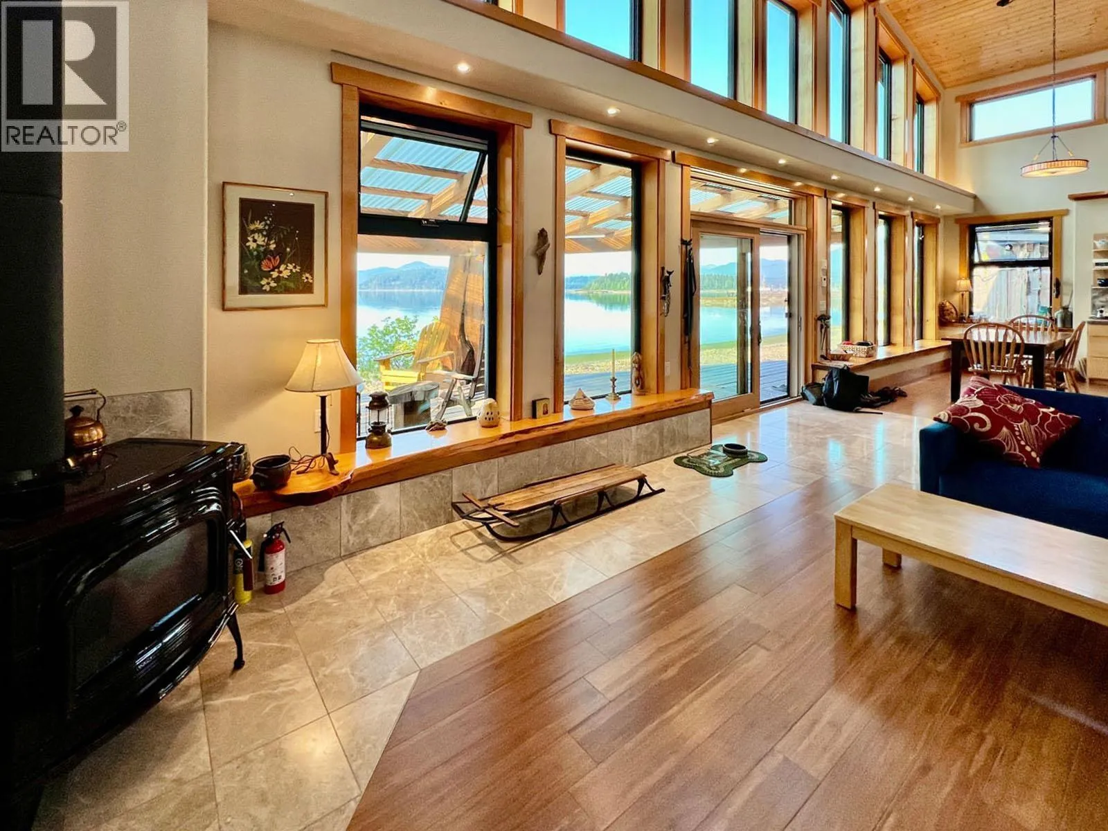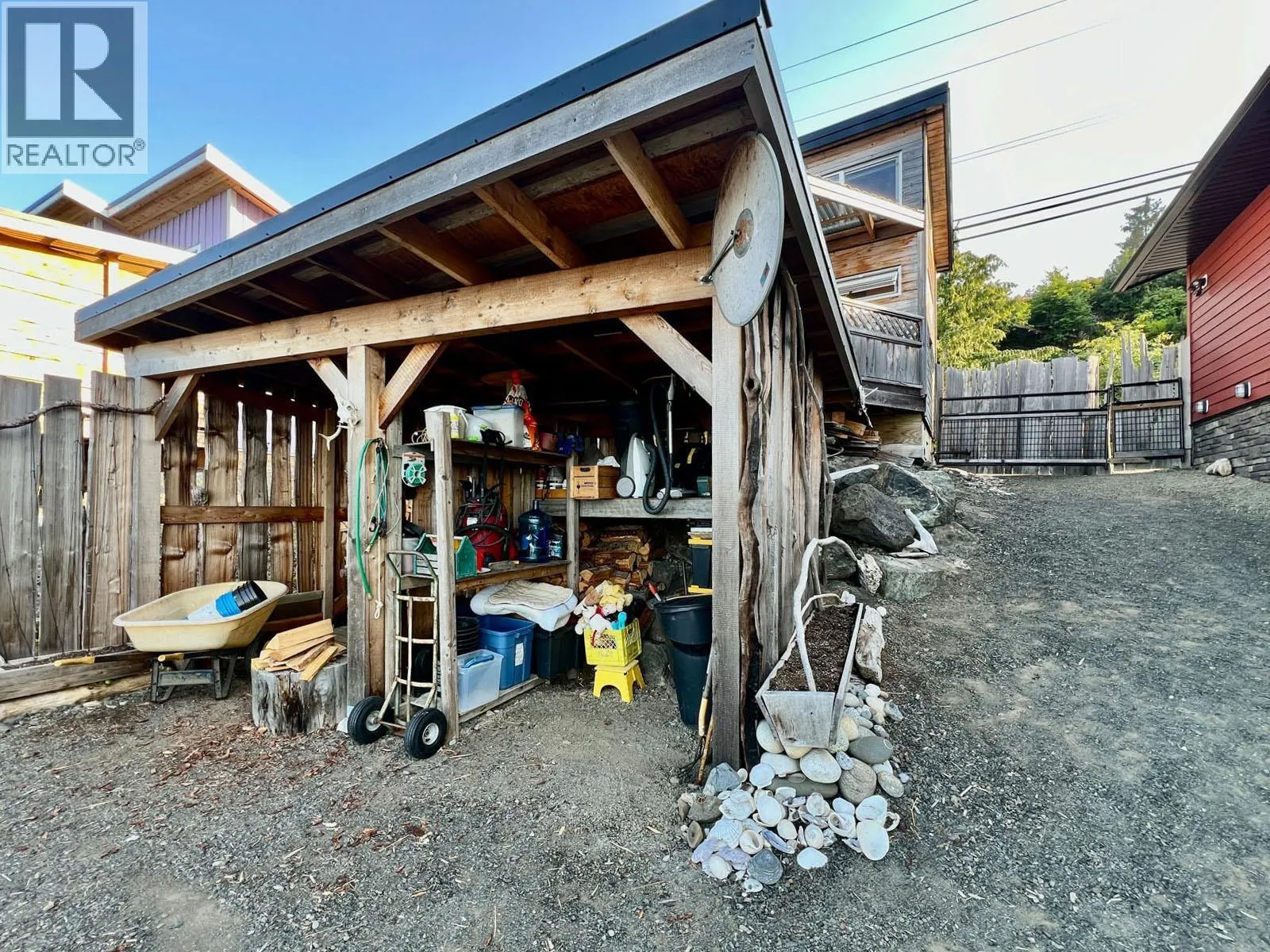 This oceanfront gem in Daajing Giids, Haida Gwaii, is a 1,800 sq. ft. custom 2017 home blending modern design w/ natural beauty. An open plan w/vaulted ceilings offers stunning southern views of Skidegate Inlet. Built w/local Yellow & Red Cedar, the interior features bamboo H/W floors, heated marble tiles, & a chef's kitchen w/Alder cabinets, Yellow Cedar live-edge island & SS appls. Main bath has heated tiles, soaker tub & large shower. A flex corner space serves as a studio or 2nd bdrm, & a woodstove provides cozy heat. Loft is used as the primary bdrm w/custom fir flrg, W/I closet, 2-pce ensuite & glass/Cedar pony wall - an extra bdrm could be added on the main level. Outside is a 400 sq. ft. cedar sundeck, fenced yard, RV prkg & serviced cabin included. (id:27476)