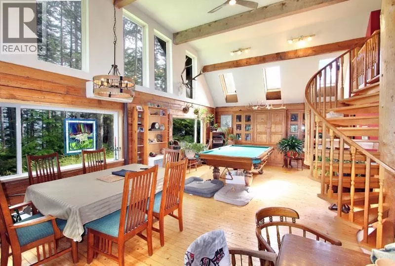 This skillfully crafted 3-story log home offers 3 bedrooms, 3 bathrooms and open concept living with vaulted ceilings and ocean views. It's situated on 4.2 acres of waterfront in the sought-after community of Tlell, where peaceful rural living is perfect for raising a family. The home blends rustic charm with thoughtful, high-quality construction-ideal for families seeking space, privacy, and waterfront ocean views. The property is rich with biodiversity: a variety of evergreen trees, fruit trees, gardens, and local wildlife. A fenced area provides a safe space for children and pets, while generous workshop space, storage, and ample parking for RVs, boats, and guests make this a practical and versatile 'as is where is' property. (id:27476)