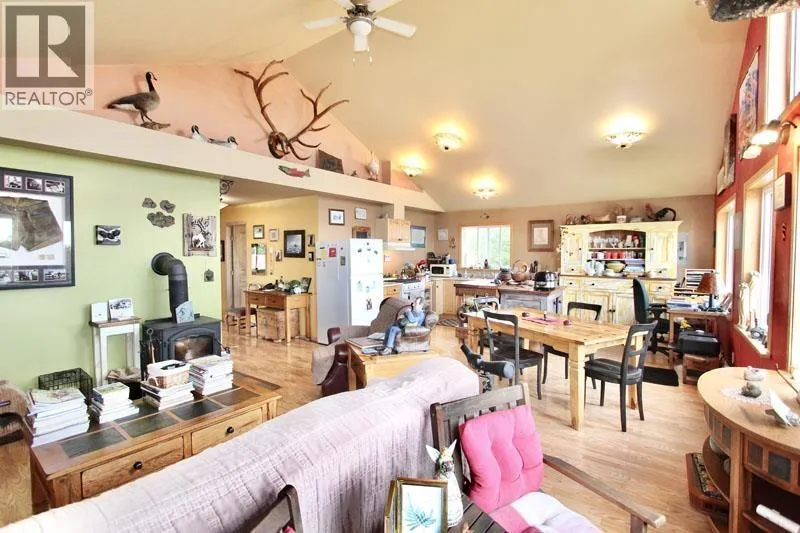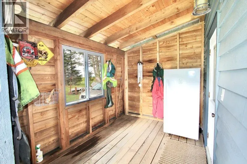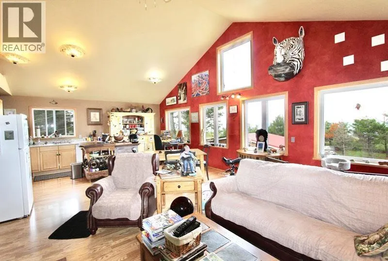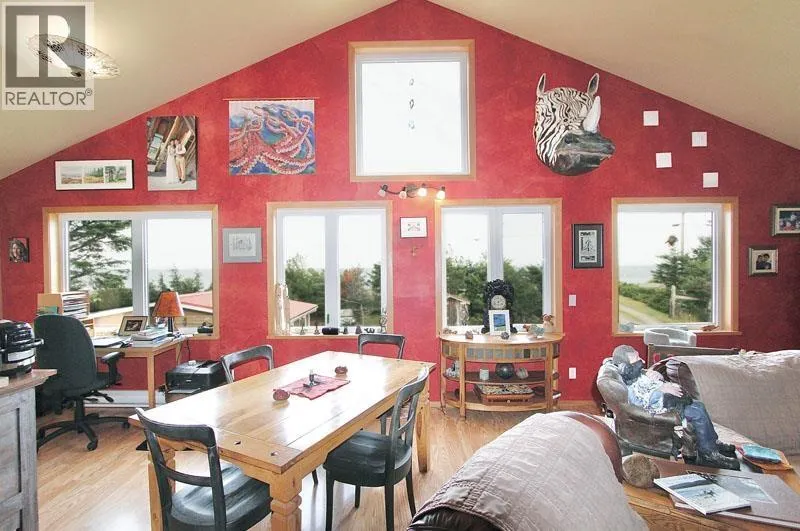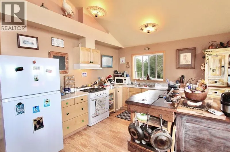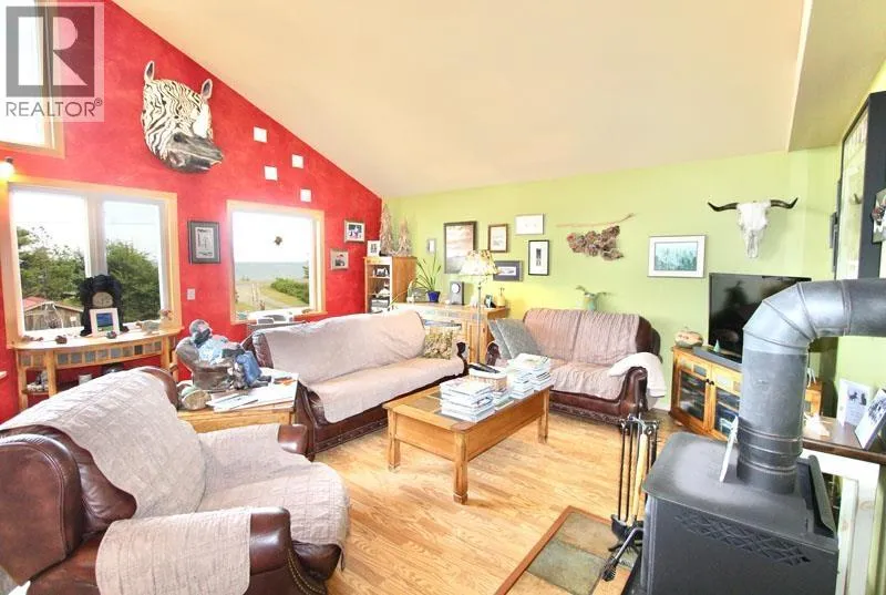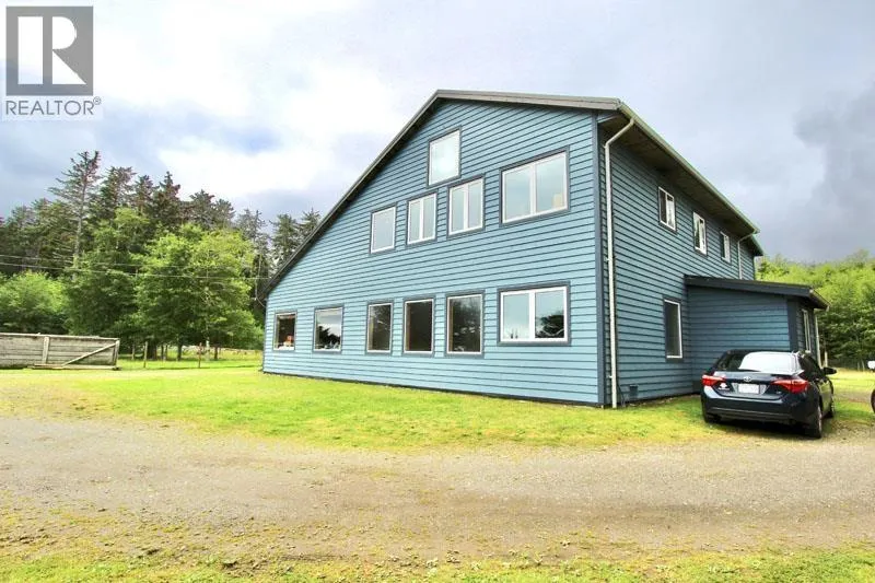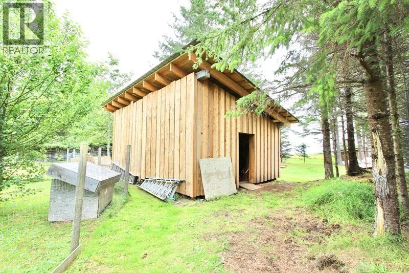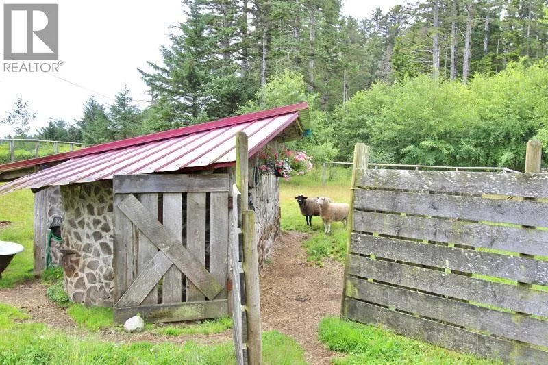 Ocean views highlight this 15.962-acre property, featuring a mix of pastures and forest. The home offers vaulted ceilings and stunning ocean views, an open-concept kitchen, living and dining area, two bedrooms, one bathroom, and laundry in the upper main floor. The lower level with a two-piece bath is currently used as a retail space but could be converted to rental accommodations. The property includes a workshop, stackwall sheep barn, two large sheds, a pump house, as well as a fire pit, gazebo, and shelter mid property on a ridge behind the house. There is full fencing for livestock or farm use. A driveway extends to the back of the acreage, with 2.044 acres leased to a local ranch. A large garden and a small orchard are established for those who enjoy gardening. (id:27476)