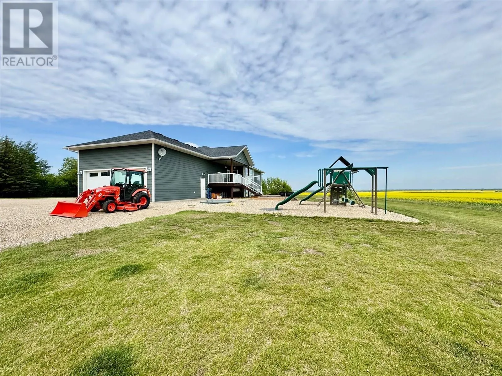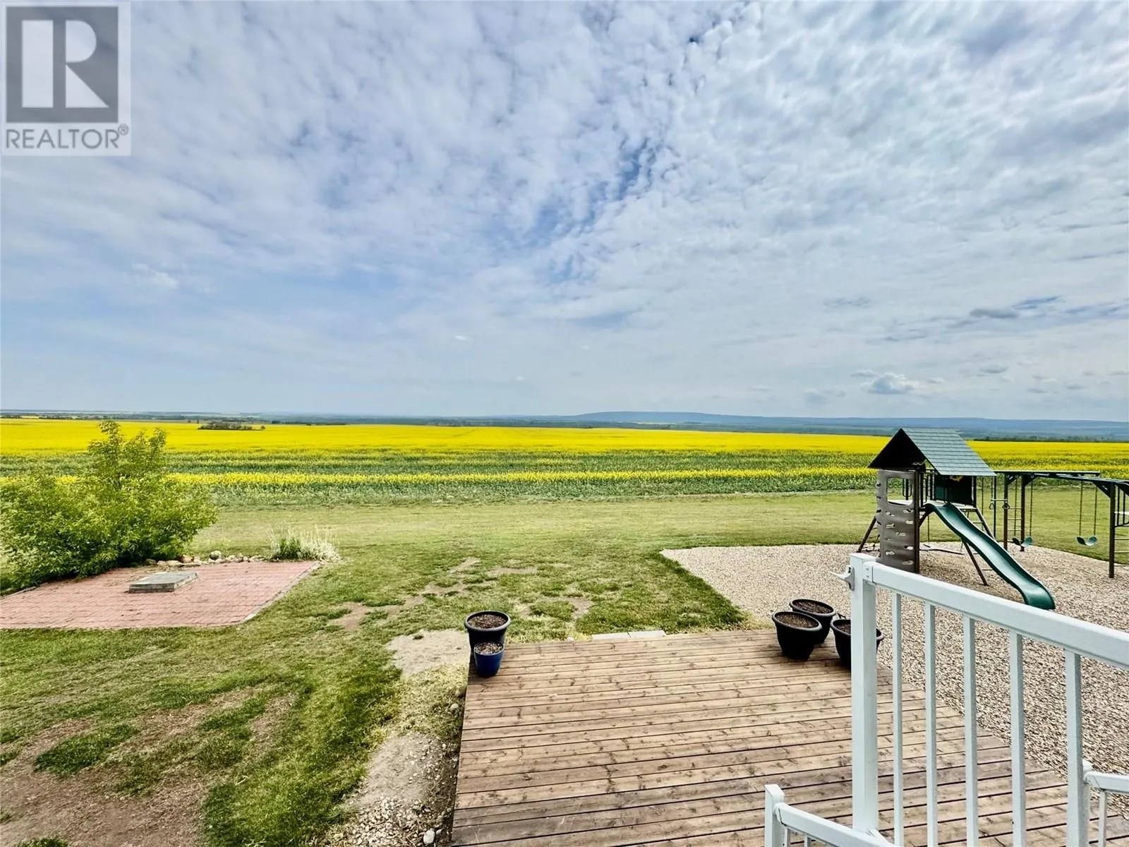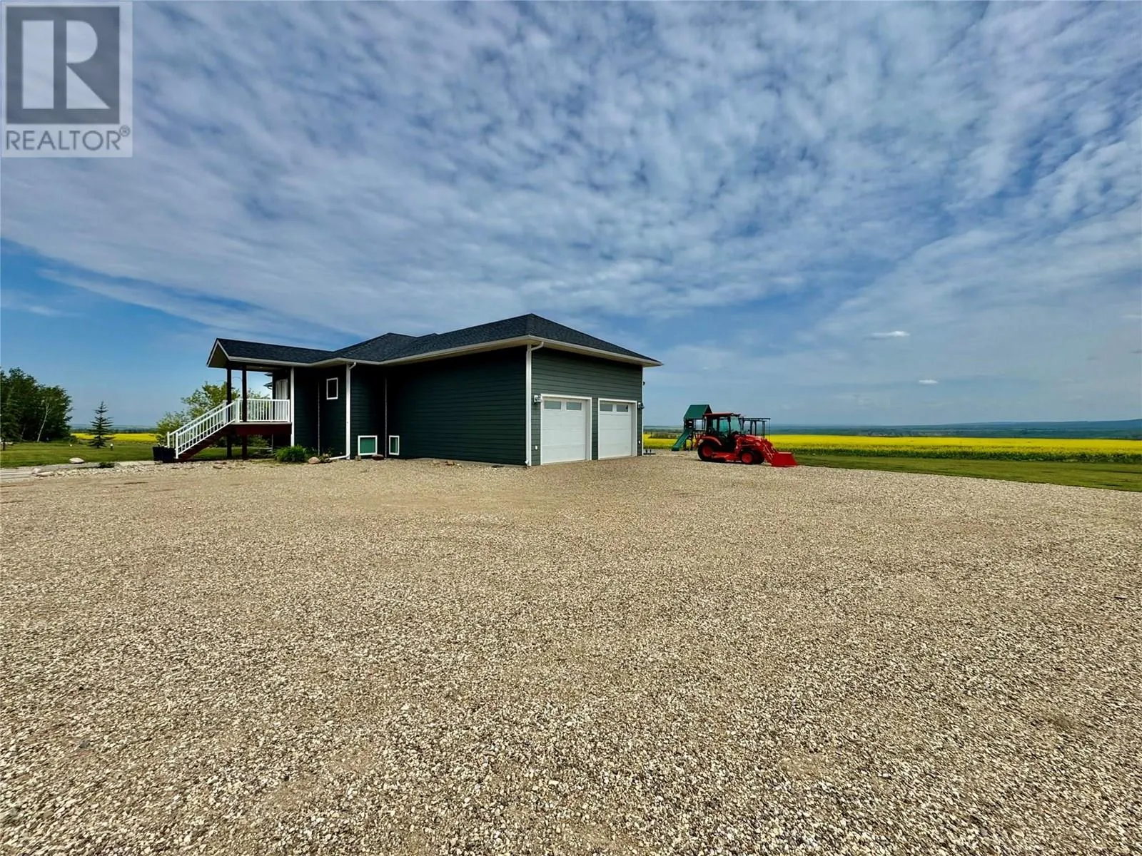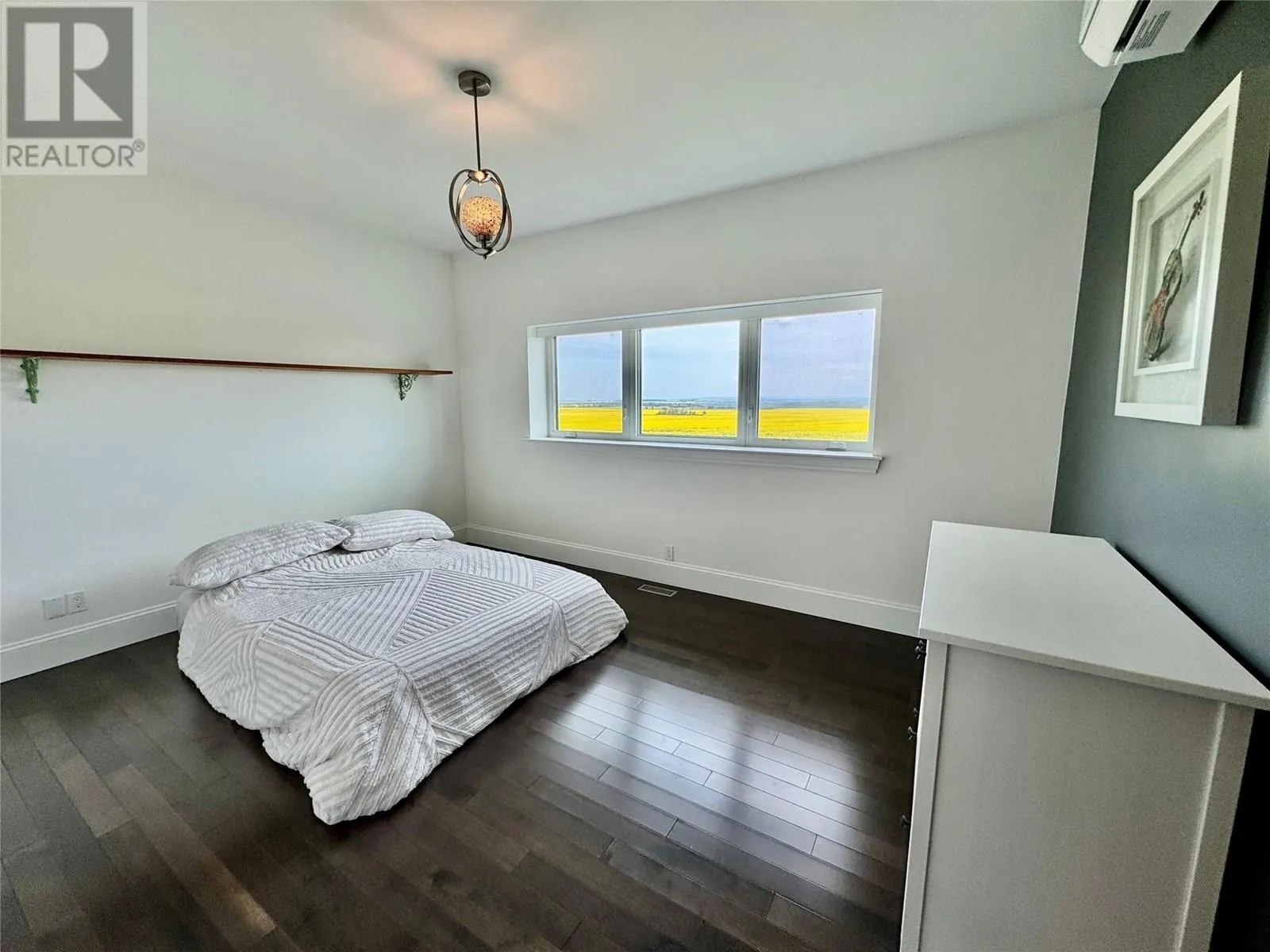 Stunning Custom Home on 9 Scenic Acres â Close to Town-This custom-designed beauty is the perfect blend of luxury and tranquility, nestled on a breathtaking 9-acre parcel just minutes from town. With sweeping views of golden canola fields stretching for miles, this exceptional home offers the peace of country living without sacrificing convenience. Once inside you will step into a spacious foyer and onto discover high-end finishings throughout, a gleaming kitchen with Stainless Steel appliances and expansive island designed for entertaining, and beautiful floors that flow seamlessly through the spacious, open-concept layout. Soaring ceilings and big, bright windows flood the home with natural light and capture the incredible prairie views in every direction. For the warmer days of summer this home offers air conditioning and a covered front deck for outdoor grilling right off the kitchen area . The living boasts a modern gas wall fireplace, the bedrooms are very spacious, and the Primary suite is a luxurious retreat with a Jetted tub , custom tile grande shower and double vanity .The oversized attached garage offers plenty of room for vehicles and storage, while the fully finished basement adds even more living space â ideal for guests, hobbies, or a growing family. Whether youâre relaxing in luxury or enjoying the wide-open spaces outdoors, this property is a rare find that checks every box. Donât miss your chance to own a private haven with unbeatable views, space to roam, and custom playground, separate garden area with raised beds and services already in place to build the shop of your dreams , all this and easy access to town amenities! (id:27476)