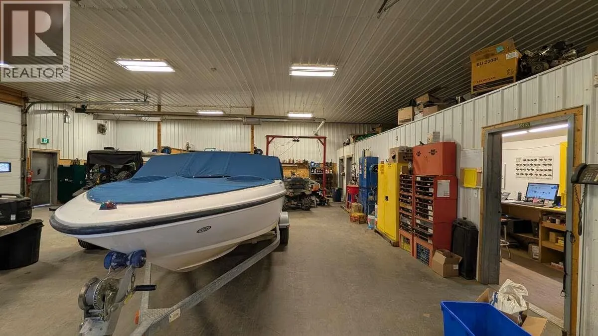 For more information, please click Brochure button. Located in the Dawson Creek airport subdivision, this property is designed for easy access by trucks and heavy machinery. The main building otters 5,000 sq. ft. on the ground level plus a 1,250 sq. ft. mezzanine situated above a kitchen, meeting room, two offices, and three bathrooms (one with a shower). There's also a 1,200 sq. ft. parts room outfitted with full parts shelving and its own mezzanine above. Attached to the primary structure is a 3,500 sq. ft. shop with a 2-piece bathroom, currently tenant-occupied and generating rent. The yard is fully fenced with arming wire to deter theft and is monitored by six video surveillance cameras. This property offers an exceptional opportunity for businesses seeking a well-built, secure, and versatile space in a prime industrial location - a solid investment with strong functionality, convenience, and long-term value. All measurements are approximate. (id:27476)