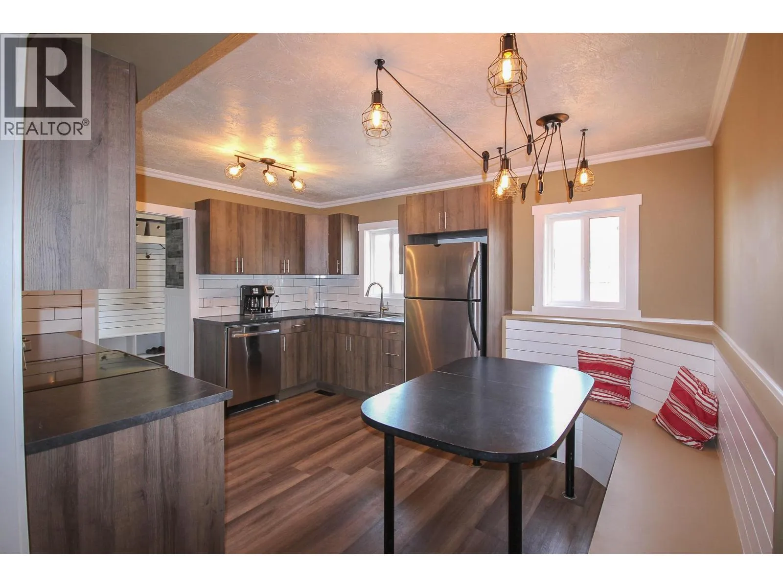 Tenants will be out at the end of March. Move in ready Rancher with a great shop close to Crescent Park! This home has had many upgrades and no carpet! Dates are approx. roof 2017, siding, doors and windows 2018. The inside has been completely done too! The entry has built-ins for your coats and boots and laundry. The kitchen offers modern cabinets with dark countertops, stainless steel appliances and vinyl flooring. The eat in kitchen also has a built-in booth seat and opens to the bright South facing living room. Down the hall you have 2 good sized secondary bedrooms with laminate floors and a 4pc bathroom that has been all redone with a soaker tub and a tiled surround. The large master even has a walk-in closet! Outside there is a ""drive through"" driveway, fully fenced back yard, large deck and a 12 x 14 shed. And a freshly built 24 by 24 garage with 10 foot ceilings and 9ft door. Garage is fully finished inside and out, wired and has forced air heat. (currently set up with propane). (id:27476)
