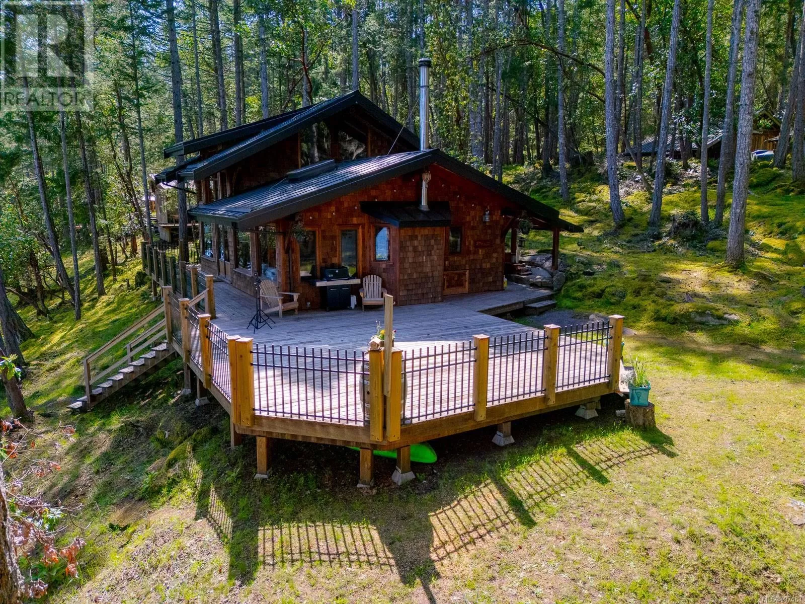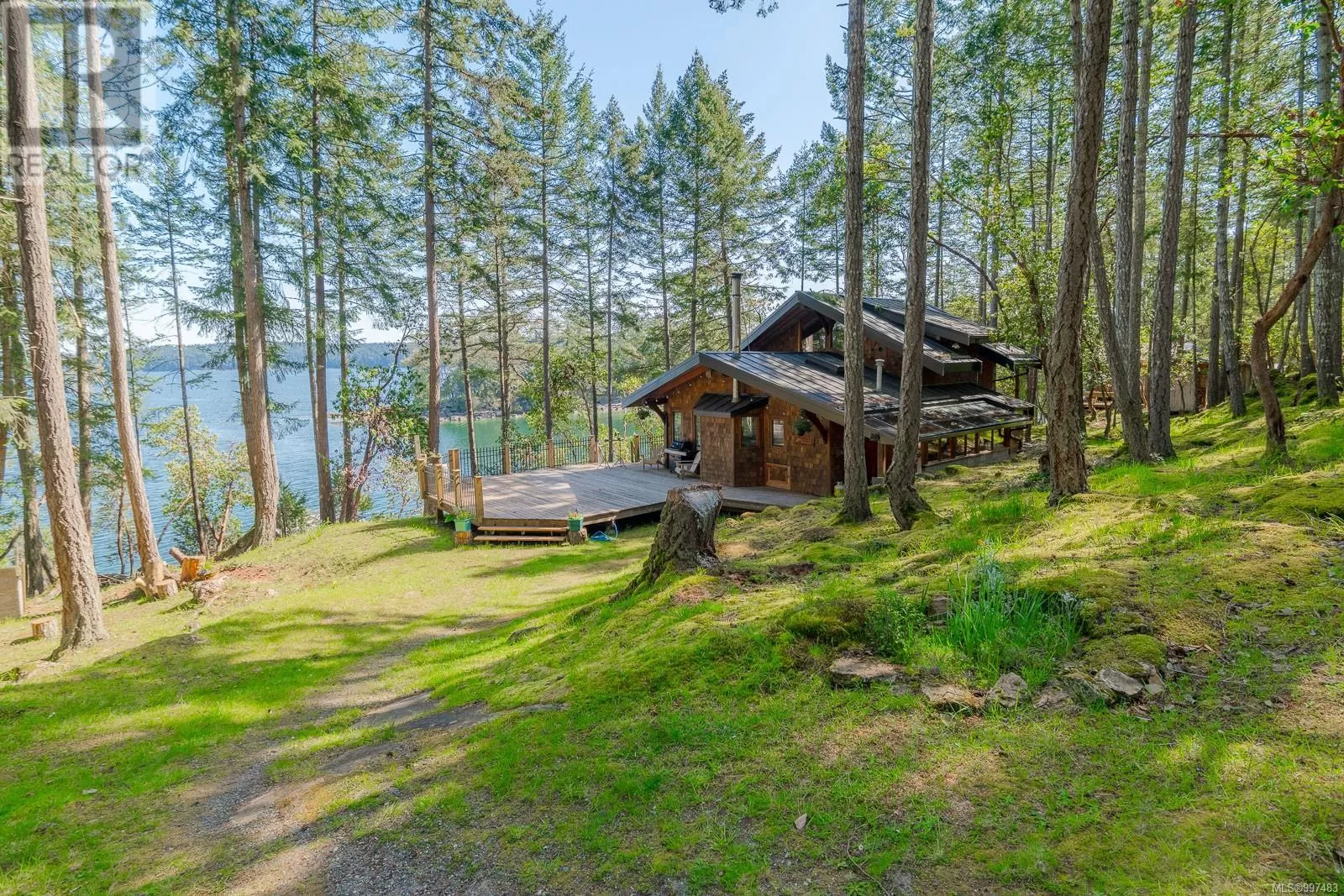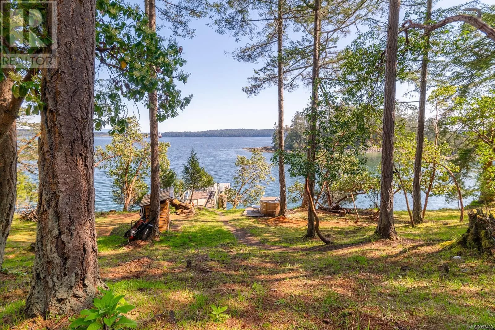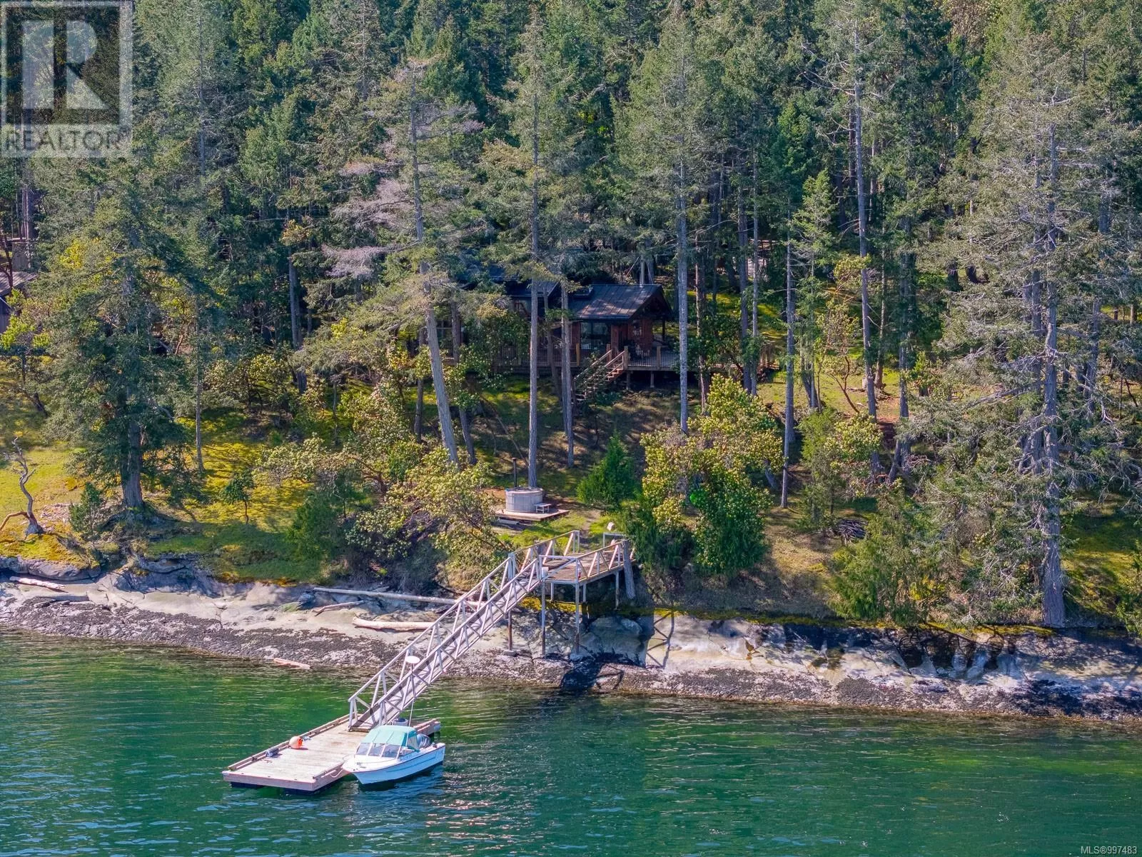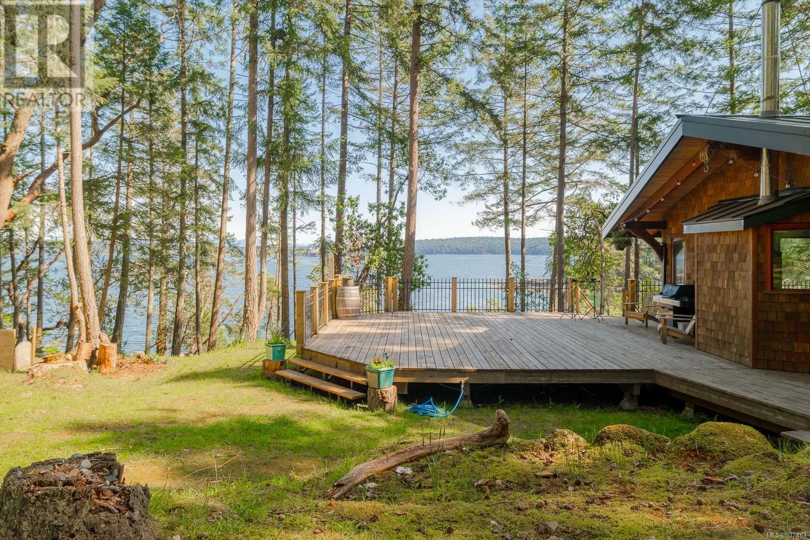 Rare opportunity to own a stunning low bank waterfront property in a quiet, protected bay on Decourcy Island. This turn-key recreational retreat boasts 145 ft of waterfront with your own private licensed dockâa newer 12ft by 30 ft float. Private docks are incredibly rare on Decourcy Island, making this offering truly special. The 2008 custom built Timber Frame home features exceptional craftsmanship throughout, including custom millwork, high ceilings with exposed wood beams and wide plank old growth wood flooring, all locally sourced. Soak up the sun on the expansive deck, perfect for outdoor living and entertaining. Enjoy over 1481 sqft of thoughtfully designed living space, the main floor includes 1 bedroom and 1 full bathroom with walk in shower and soaker tub while the spacious loft complete with a toiletâcomfortably sleeps multiple guests. The open concept great room is bright and airy, anchored by massive European- style tilt and turn windows that capture spectacular natural light and views. Built on a continuous poured foundation with a dry, accessible crawlspace, this well-constructed home is both solid and efficient. Equipped with modern off-grid systems include a state-of-the-art solar power system, a drilled well with cisterns and septic system. Set on .8 of an acre of useable land offers additional amenities such as an insulted Timber Frame outbuilding with powerâideal for guest accommodation or a workshop, concrete generator house, storage shed, fenced garden area and a wood-fired salt water hot tub near the waterâs edge. Whether you're seeking a serene escape or an easy-to-access recreational property, this exceptional waterfront getaway offers unparalleled privacy, comfort, and natural beauty. Donât miss your chance to own one of Decourcyâs most desirable waterfront properties. This is a must see! (id:27476)