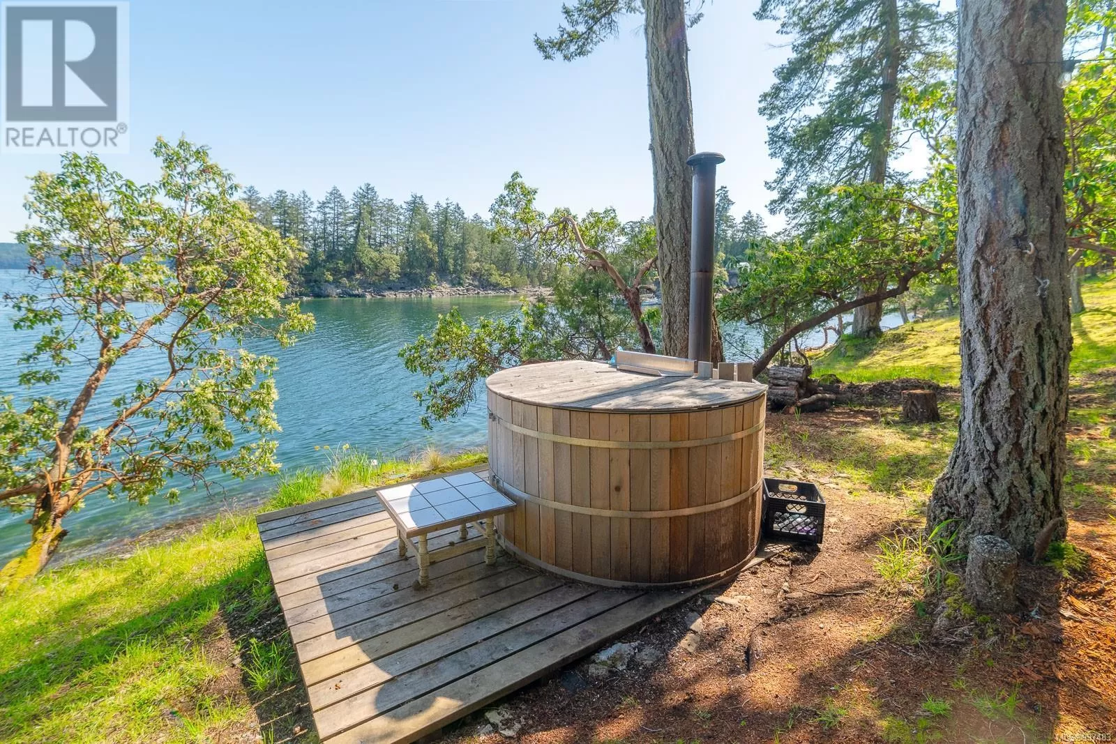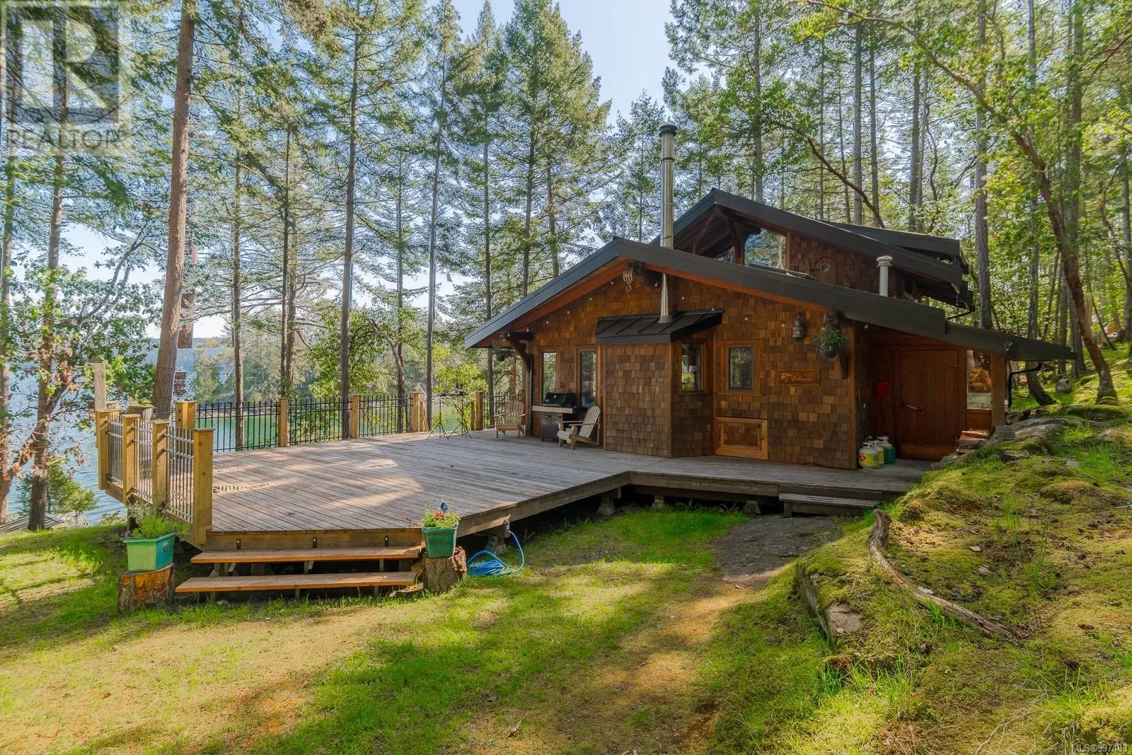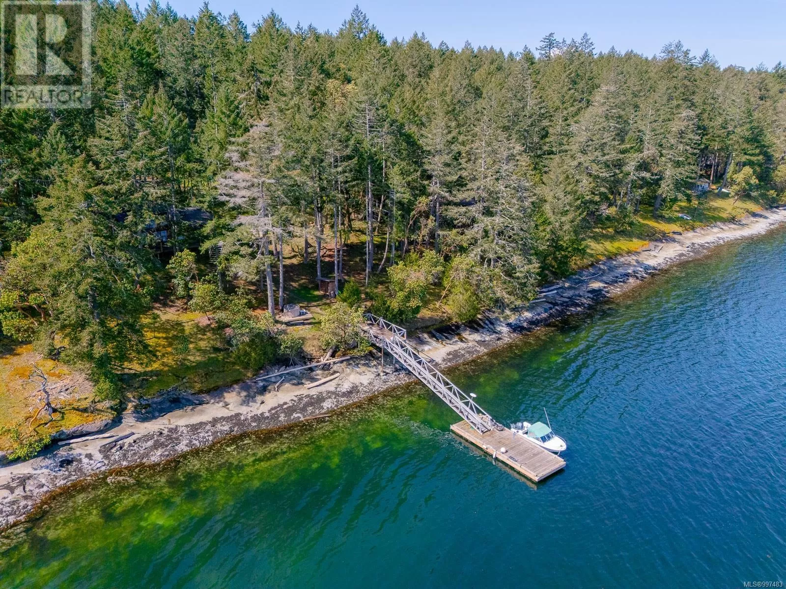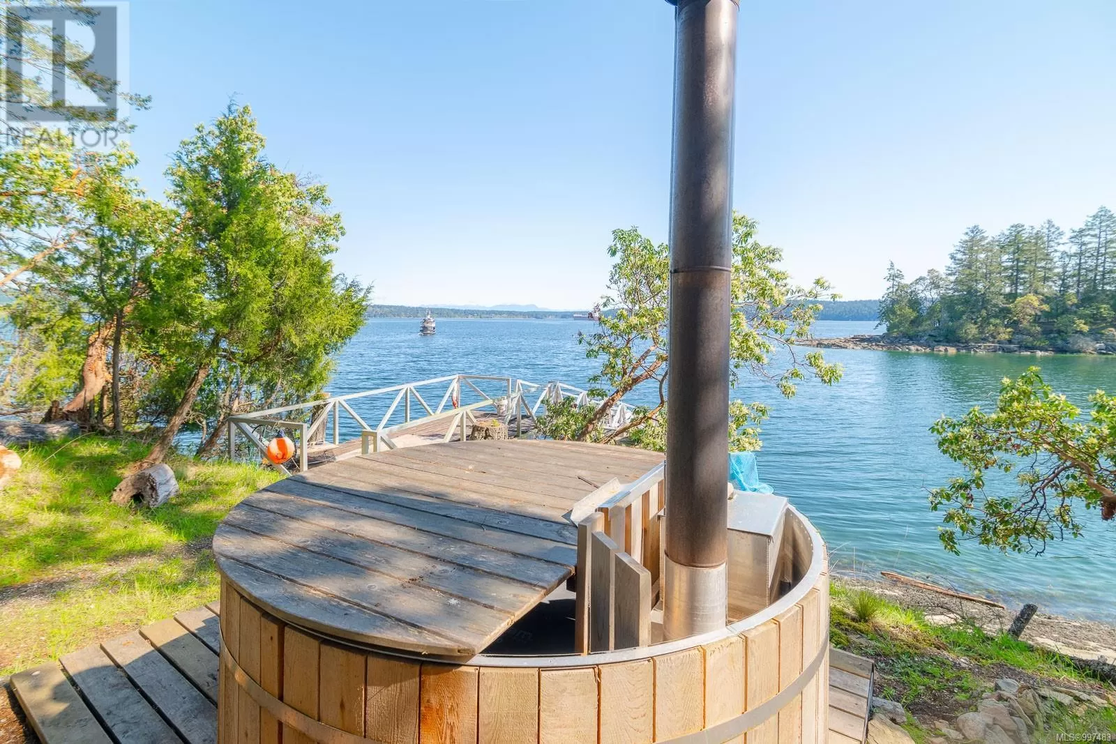 Rare opportunity to own a stunning low bank waterfront property in a quiet, protected bay on Decourcy Island. This turn-key recreational retreat boasts 145 ft of waterfront with your own private licensed dockâa newer 12ft by 30 ft float. Private docks are incredibly rare on Decourcy Island, making this offering truly special. The 2008 custom built Timber Frame home features exceptional craftsmanship throughout, including custom millwork, high ceilings with exposed wood beams and wide plank old growth wood flooring, all locally sourced. Soak up the sun on the expansive deck, perfect for outdoor living and entertaining. Enjoy over 1481 sqft of thoughtfully designed living space, the main floor includes 1 bedroom and 1 full bathroom with walk in shower and soaker tub while the spacious loft complete with a toiletâcomfortably sleeps multiple guests. The open concept great room is bright and airy, anchored by massive European- style tilt and turn windows that capture spectacular natural light and views. Built on a continuous poured foundation with a dry, accessible crawlspace, this well-constructed home is both solid and efficient. Equipped with modern off-grid systems include a state-of-the-art solar power system, a drilled well with cisterns and septic system. Set on .8 of an acre of useable land offers additional amenities such as an insulted Timber Frame outbuilding with powerâideal for guest accommodation or a workshop, concrete generator house, storage shed, fenced garden area and a wood-fired salt water hot tub near the waterâs edge. Whether you're seeking a serene escape or an easy-to-access recreational property, this exceptional waterfront getaway offers unparalleled privacy, comfort, and natural beauty. Donât miss your chance to own one of Decourcyâs most desirable waterfront properties. This is a must see! (id:27476)