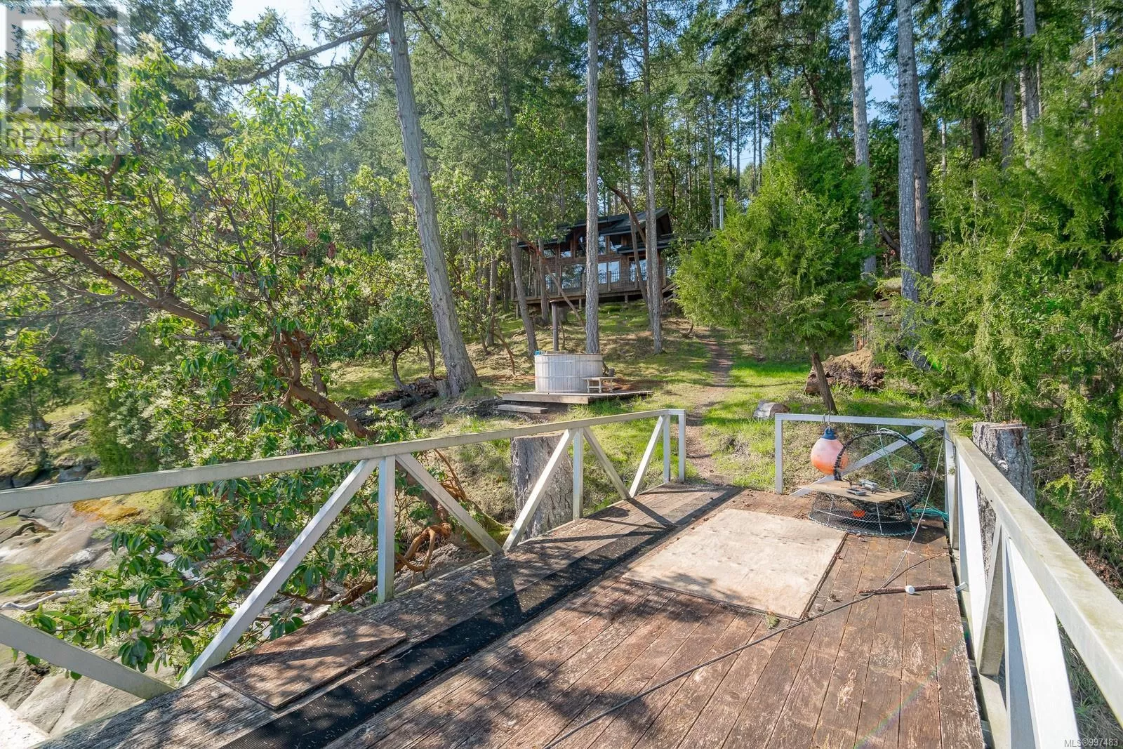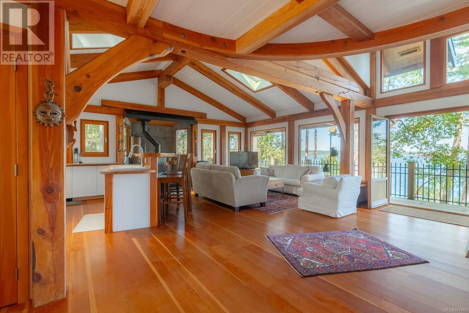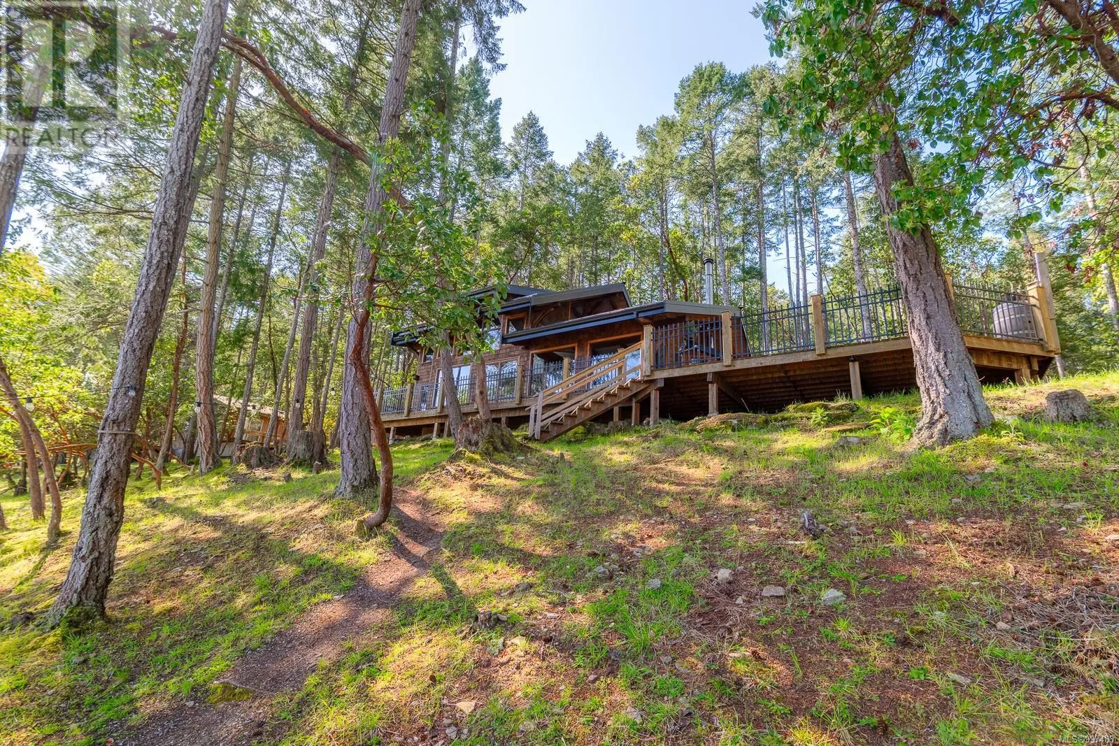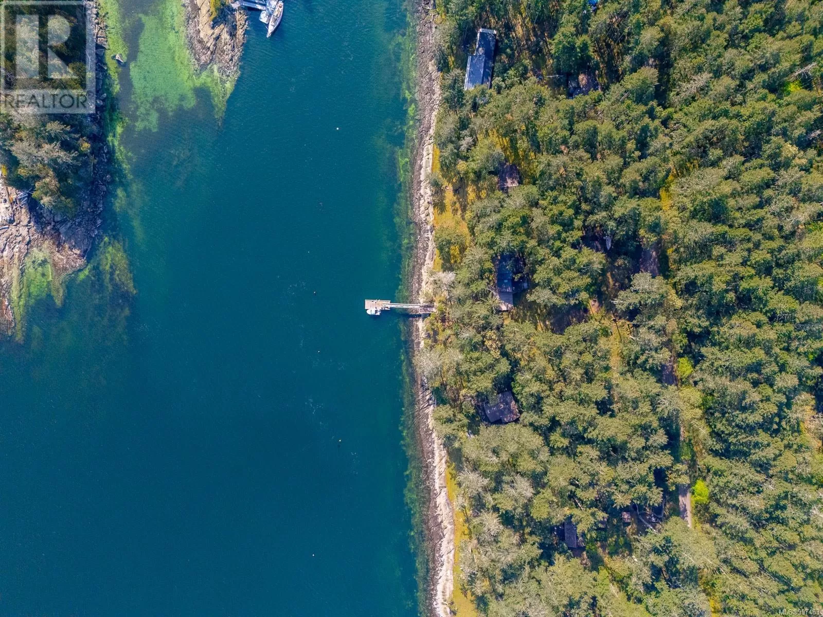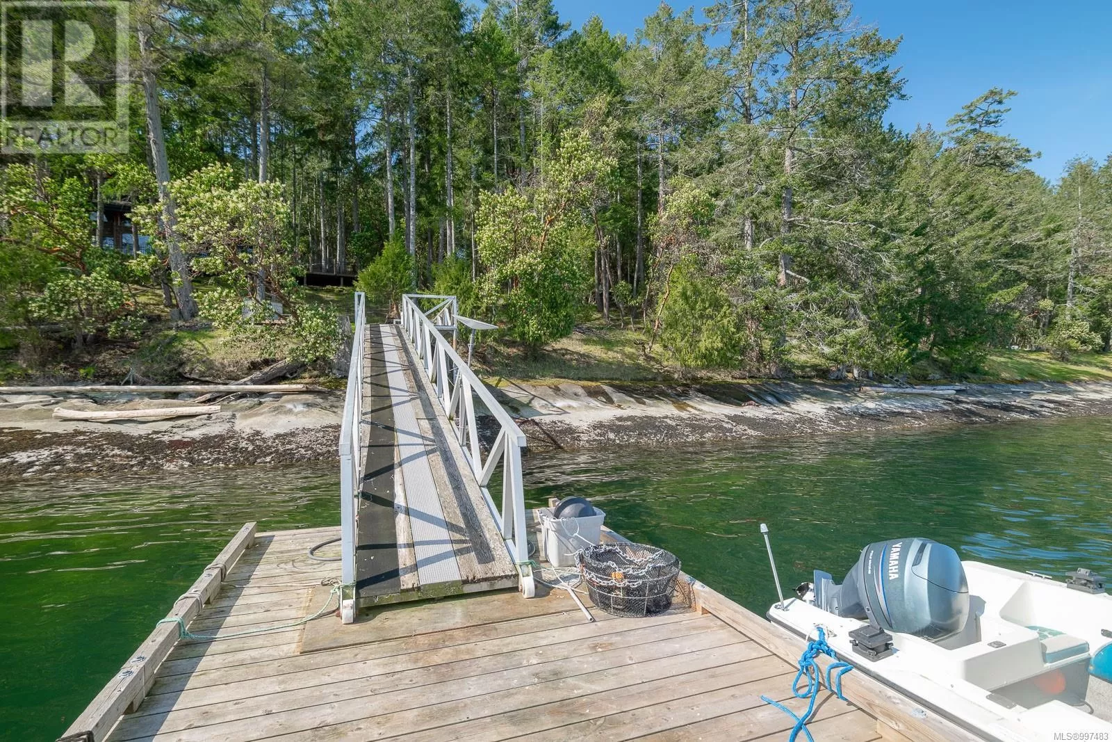Rare opportunity to own a stunning low bank waterfront property in a quiet, protected bay on Decourcy Island. This turn-key recreational retreat boasts 145 ft of waterfront with your own private licensed dockâa newer 12ft by 30 ft float. Private docks are incredibly rare on Decourcy Island, making this offering truly special. The 2008 custom built Timber Frame home features exceptional craftsmanship throughout, including custom millwork, high ceilings with exposed wood beams and wide plank old growth wood flooring, all locally sourced. Soak up the sun on the expansive deck, perfect for outdoor living and entertaining. Enjoy over 1481 sqft of thoughtfully designed living space, the main floor includes 1 bedroom and 1 full bathroom with walk in shower and soaker tub while the spacious loft complete with a toiletâcomfortably sleeps multiple guests. The open concept great room is bright and airy, anchored by massive European- style tilt and turn windows that capture spectacular natural light and views. Built on a continuous poured foundation with a dry, accessible crawlspace, this well-constructed home is both solid and efficient. Equipped with modern off-grid systems include a state-of-the-art solar power system, a drilled well with cisterns and septic system. Set on .8 of an acre of useable land offers additional amenities such as an insulted Timber Frame outbuilding with powerâideal for guest accommodation or a workshop, concrete generator house, storage shed, fenced garden area and a wood-fired salt water hot tub near the waterâs edge. Whether you're seeking a serene escape or an easy-to-access recreational property, this exceptional waterfront getaway offers unparalleled privacy, comfort, and natural beauty. Donât miss your chance to own one of Decourcyâs most desirable waterfront properties. This is a must see! (id:27476)