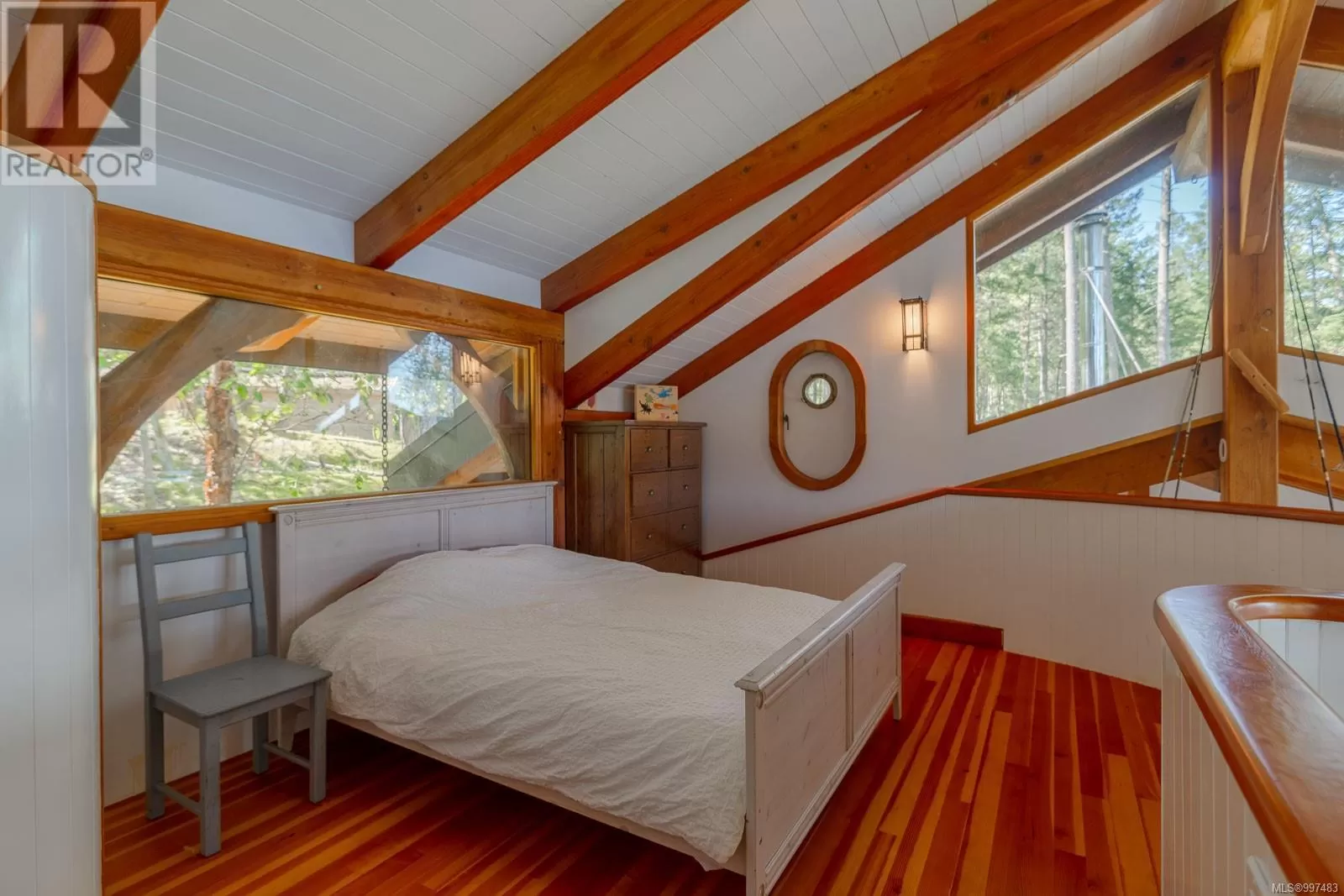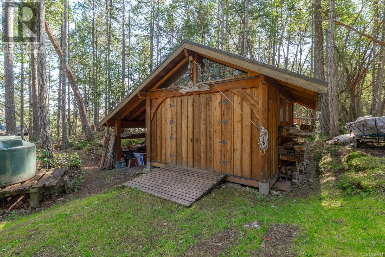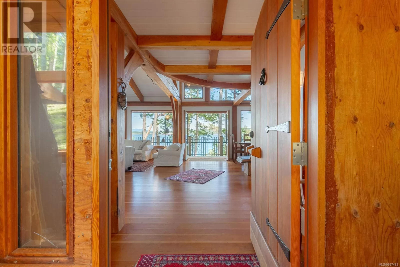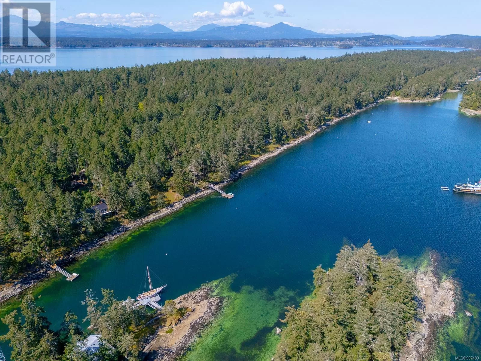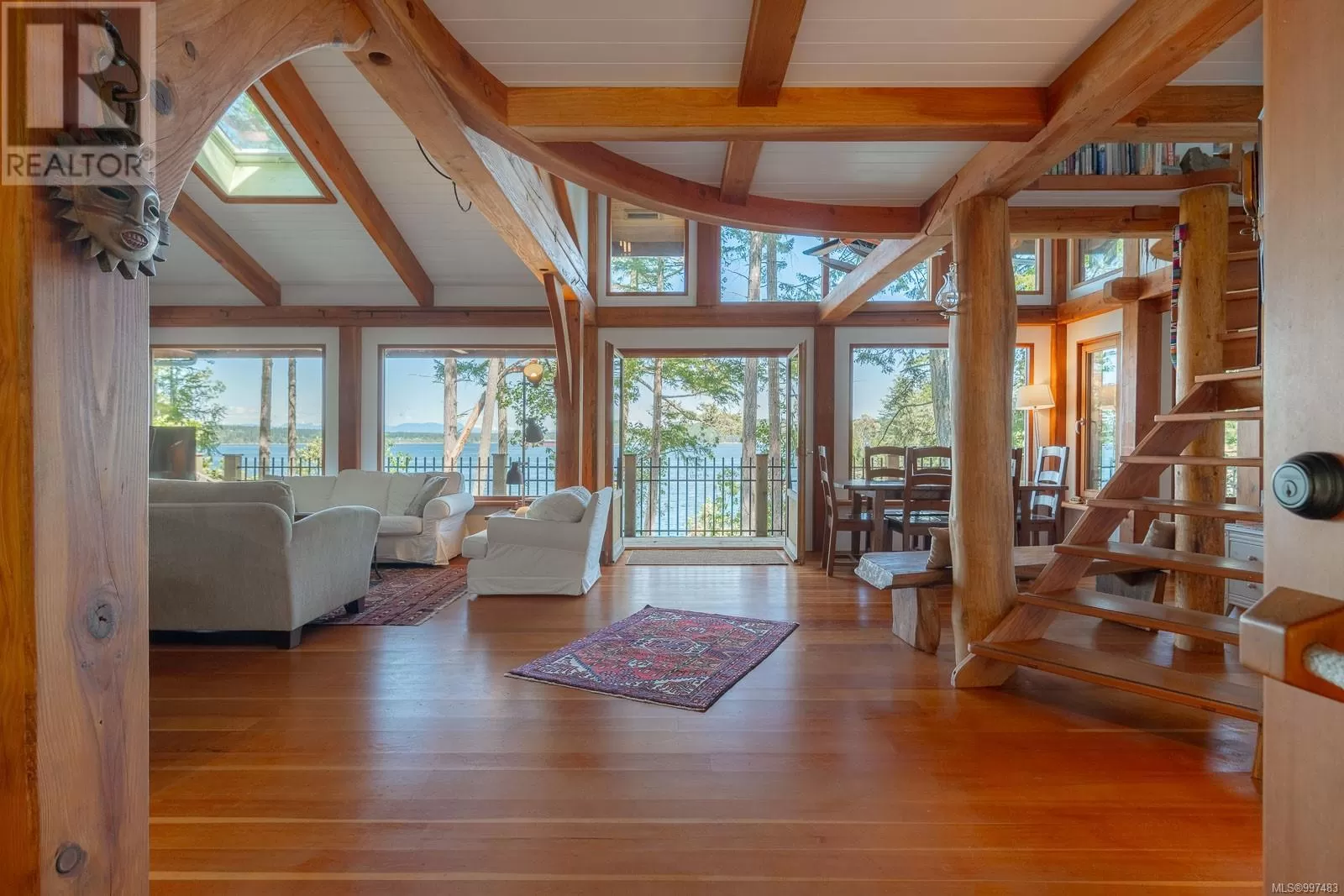 Rare opportunity to own a stunning low bank waterfront property in a quiet, protected bay on Decourcy Island. This turn-key recreational retreat boasts 145 ft of waterfront with your own private licensed dockâa newer 12ft by 30 ft float. Private docks are incredibly rare on Decourcy Island, making this offering truly special. The 2008 custom built Timber Frame home features exceptional craftsmanship throughout, including custom millwork, high ceilings with exposed wood beams and wide plank old growth wood flooring, all locally sourced. Soak up the sun on the expansive deck, perfect for outdoor living and entertaining. Enjoy over 1481 sqft of thoughtfully designed living space, the main floor includes 1 bedroom and 1 full bathroom with walk in shower and soaker tub while the spacious loft complete with a toiletâcomfortably sleeps multiple guests. The open concept great room is bright and airy, anchored by massive European- style tilt and turn windows that capture spectacular natural light and views. Built on a continuous poured foundation with a dry, accessible crawlspace, this well-constructed home is both solid and efficient. Equipped with modern off-grid systems include a state-of-the-art solar power system, a drilled well with cisterns and septic system. Set on .8 of an acre of useable land offers additional amenities such as an insulted Timber Frame outbuilding with powerâideal for guest accommodation or a workshop, concrete generator house, storage shed, fenced garden area and a wood-fired salt water hot tub near the waterâs edge. Whether you're seeking a serene escape or an easy-to-access recreational property, this exceptional waterfront getaway offers unparalleled privacy, comfort, and natural beauty. Donât miss your chance to own one of Decourcyâs most desirable waterfront properties. This is a must see! (id:27476)