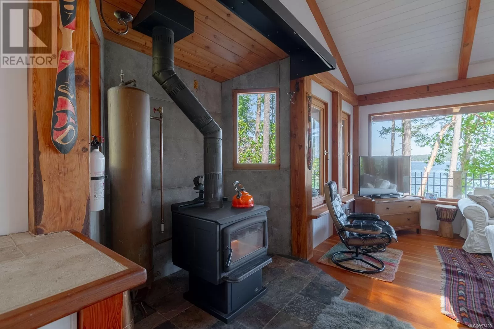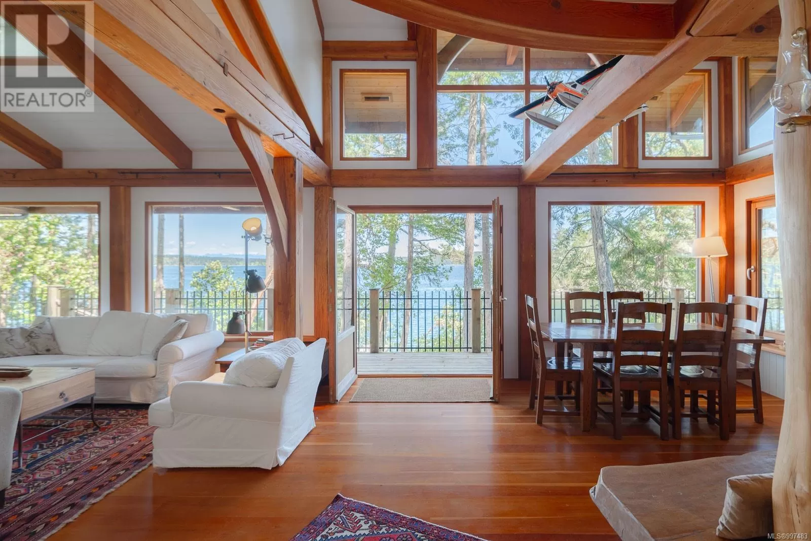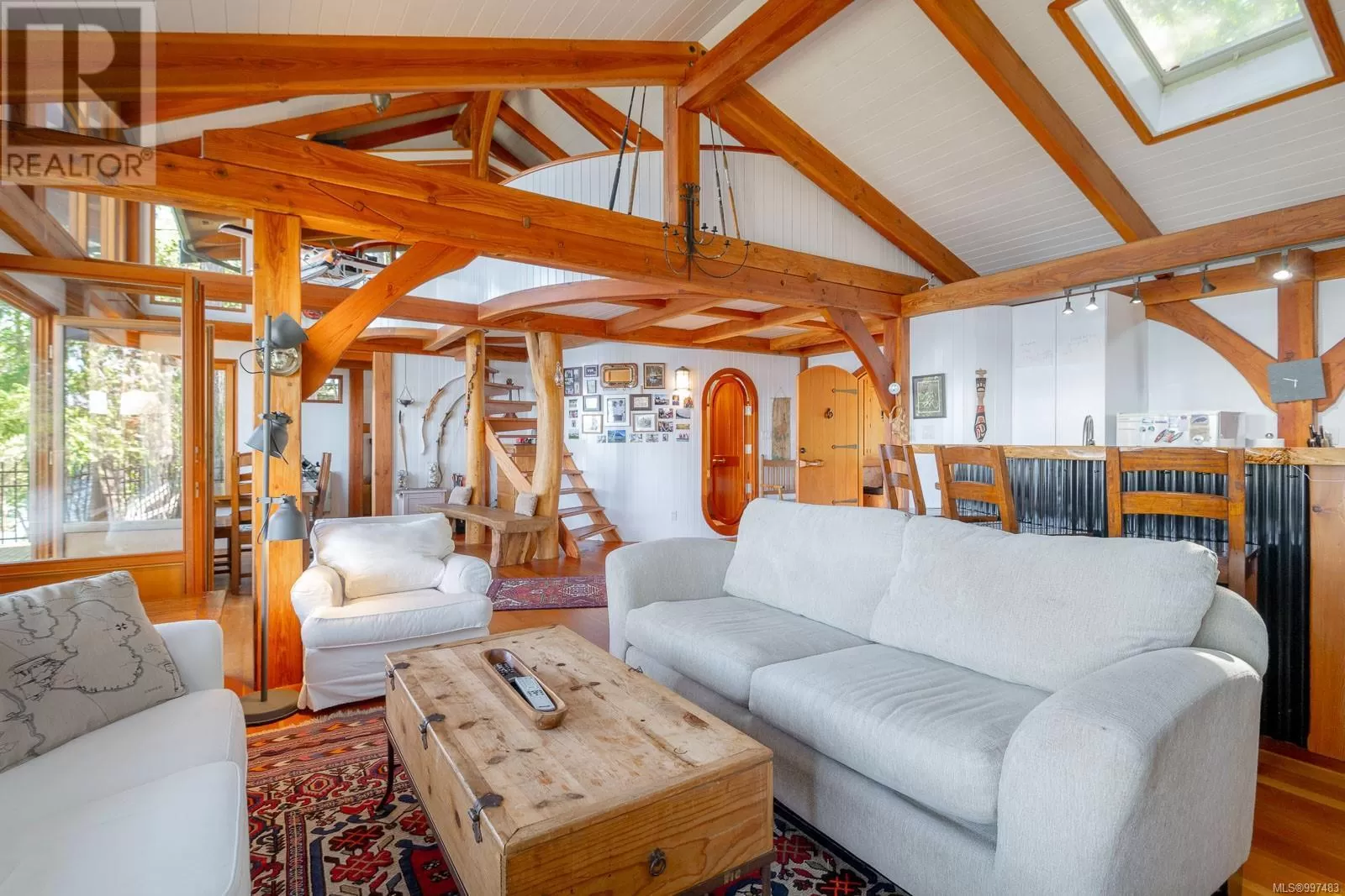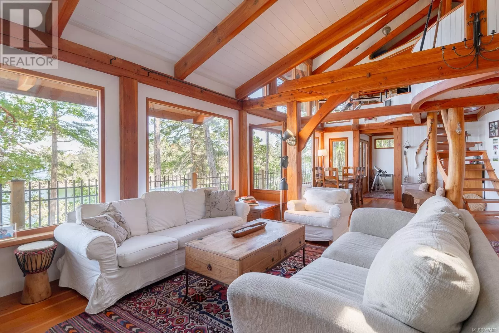 Rare opportunity to own a stunning low bank waterfront property in a quiet, protected bay on Decourcy Island. This turn-key recreational retreat boasts 145 ft of waterfront with your own private licensed dockâa newer 12ft by 30 ft float. Private docks are incredibly rare on Decourcy Island, making this offering truly special. The 2008 custom built Timber Frame home features exceptional craftsmanship throughout, including custom millwork, high ceilings with exposed wood beams and wide plank old growth wood flooring, all locally sourced. Soak up the sun on the expansive deck, perfect for outdoor living and entertaining. Enjoy over 1481 sqft of thoughtfully designed living space, the main floor includes 1 bedroom and 1 full bathroom with walk in shower and soaker tub while the spacious loft complete with a toiletâcomfortably sleeps multiple guests. The open concept great room is bright and airy, anchored by massive European- style tilt and turn windows that capture spectacular natural light and views. Built on a continuous poured foundation with a dry, accessible crawlspace, this well-constructed home is both solid and efficient. Equipped with modern off-grid systems include a state-of-the-art solar power system, a drilled well with cisterns and septic system. Set on .8 of an acre of useable land offers additional amenities such as an insulted Timber Frame outbuilding with powerâideal for guest accommodation or a workshop, concrete generator house, storage shed, fenced garden area and a wood-fired salt water hot tub near the waterâs edge. Whether you're seeking a serene escape or an easy-to-access recreational property, this exceptional waterfront getaway offers unparalleled privacy, comfort, and natural beauty. Donât miss your chance to own one of Decourcyâs most desirable waterfront properties. This is a must see! (id:27476)
