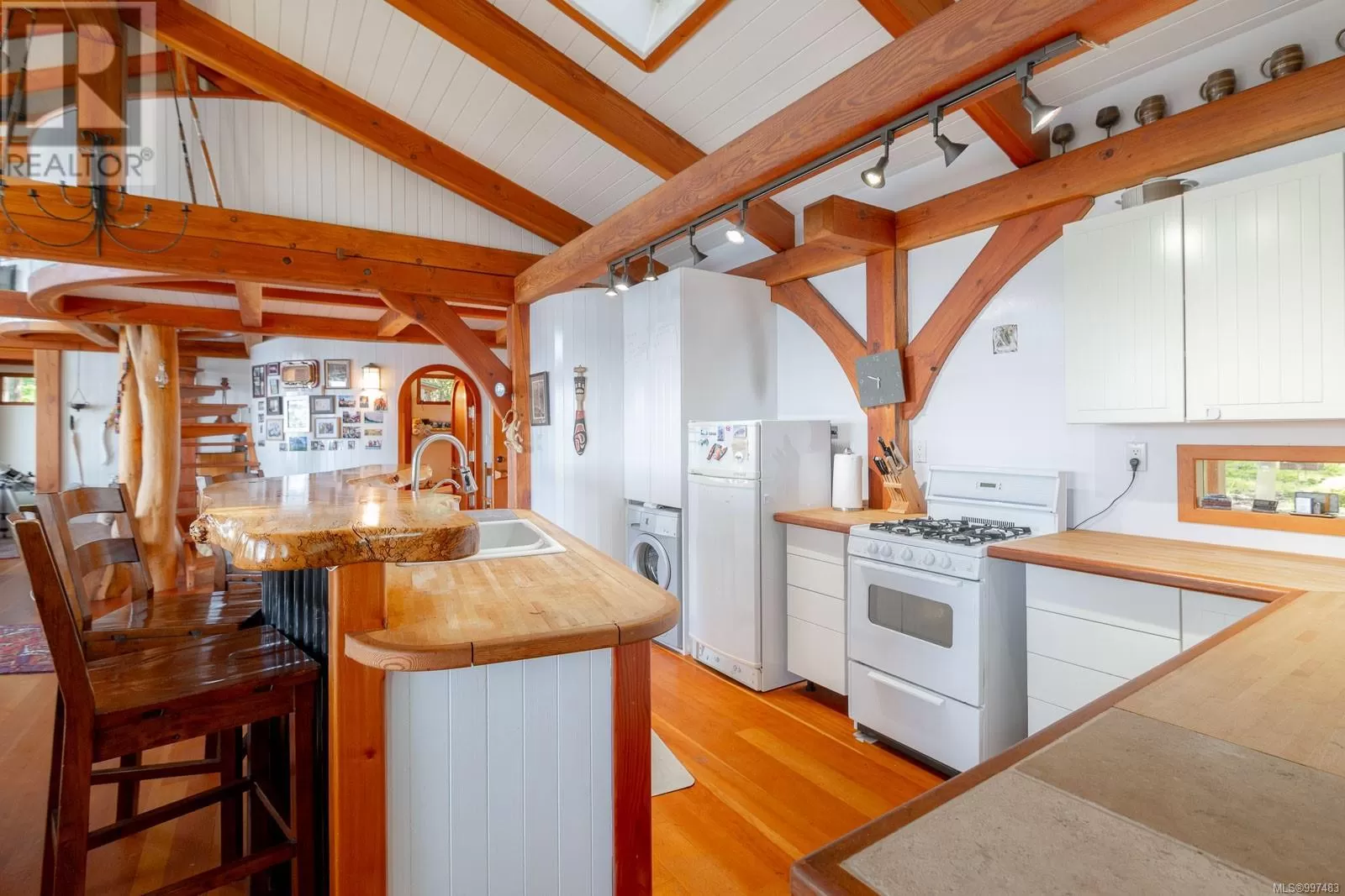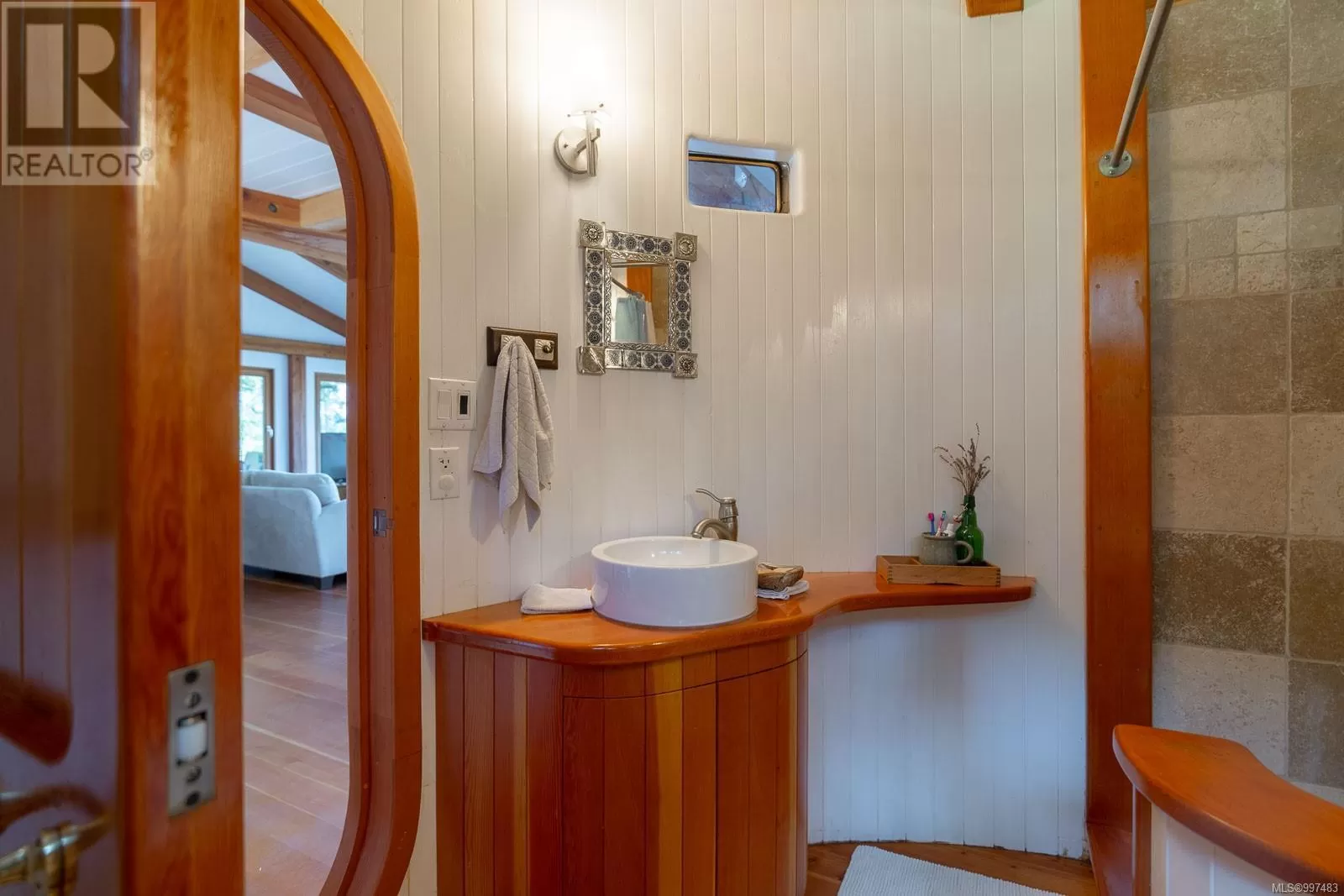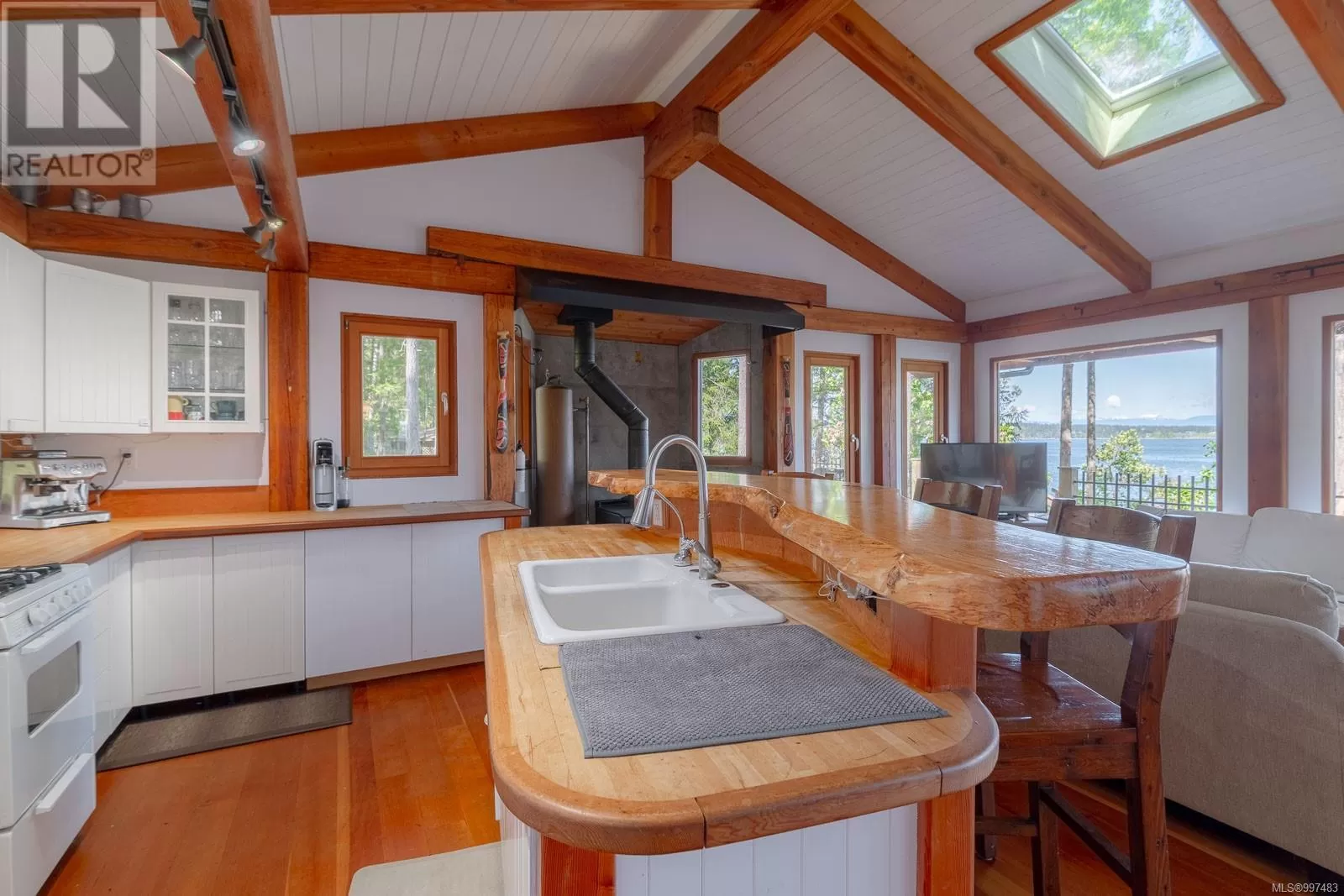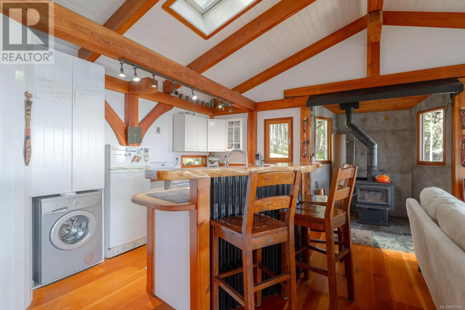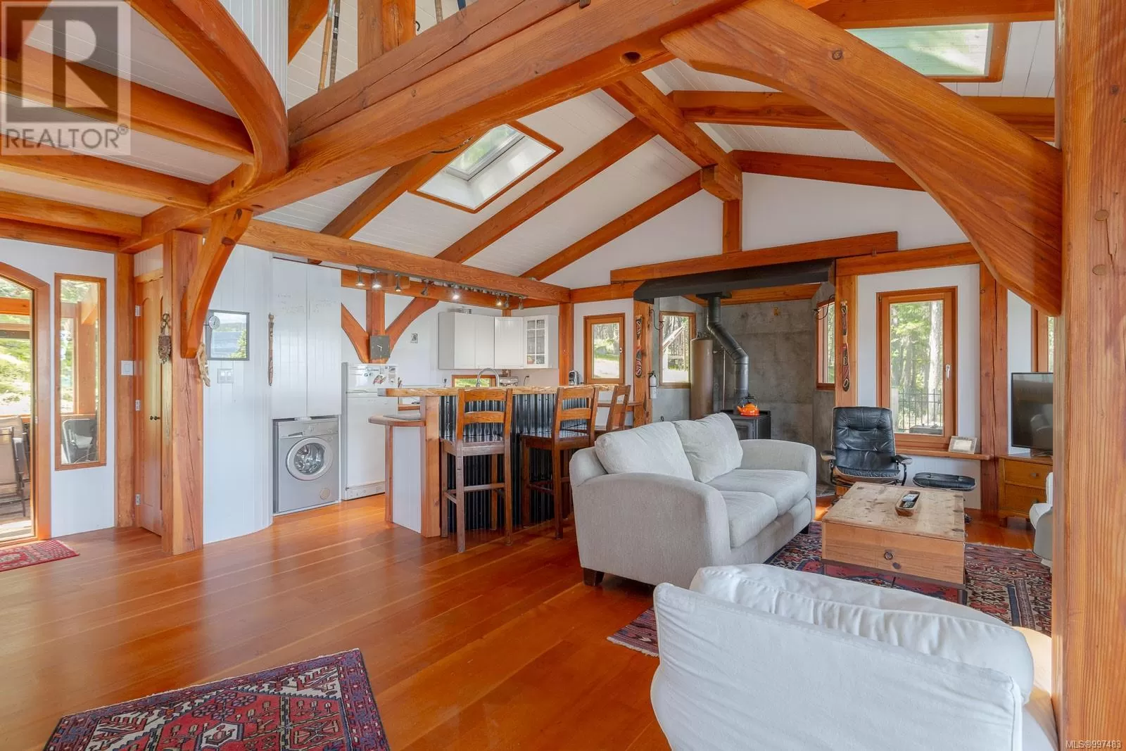 Rare opportunity to own a stunning low bank waterfront property in a quiet, protected bay on Decourcy Island. This turn-key recreational retreat boasts 145 ft of waterfront with your own private licensed dockâa newer 12ft by 30 ft float. Private docks are incredibly rare on Decourcy Island, making this offering truly special. The 2008 custom built Timber Frame home features exceptional craftsmanship throughout, including custom millwork, high ceilings with exposed wood beams and wide plank old growth wood flooring, all locally sourced. Soak up the sun on the expansive deck, perfect for outdoor living and entertaining. Enjoy over 1481 sqft of thoughtfully designed living space, the main floor includes 1 bedroom and 1 full bathroom with walk in shower and soaker tub while the spacious loft complete with a toiletâcomfortably sleeps multiple guests. The open concept great room is bright and airy, anchored by massive European- style tilt and turn windows that capture spectacular natural light and views. Built on a continuous poured foundation with a dry, accessible crawlspace, this well-constructed home is both solid and efficient. Equipped with modern off-grid systems include a state-of-the-art solar power system, a drilled well with cisterns and septic system. Set on .8 of an acre of useable land offers additional amenities such as an insulted Timber Frame outbuilding with powerâideal for guest accommodation or a workshop, concrete generator house, storage shed, fenced garden area and a wood-fired salt water hot tub near the waterâs edge. Whether you're seeking a serene escape or an easy-to-access recreational property, this exceptional waterfront getaway offers unparalleled privacy, comfort, and natural beauty. Donât miss your chance to own one of Decourcyâs most desirable waterfront properties. This is a must see! (id:27476)