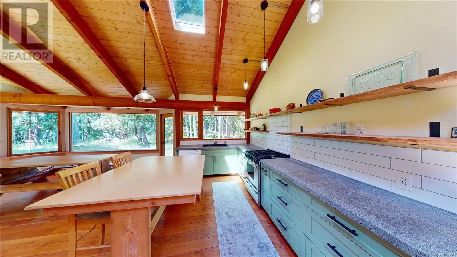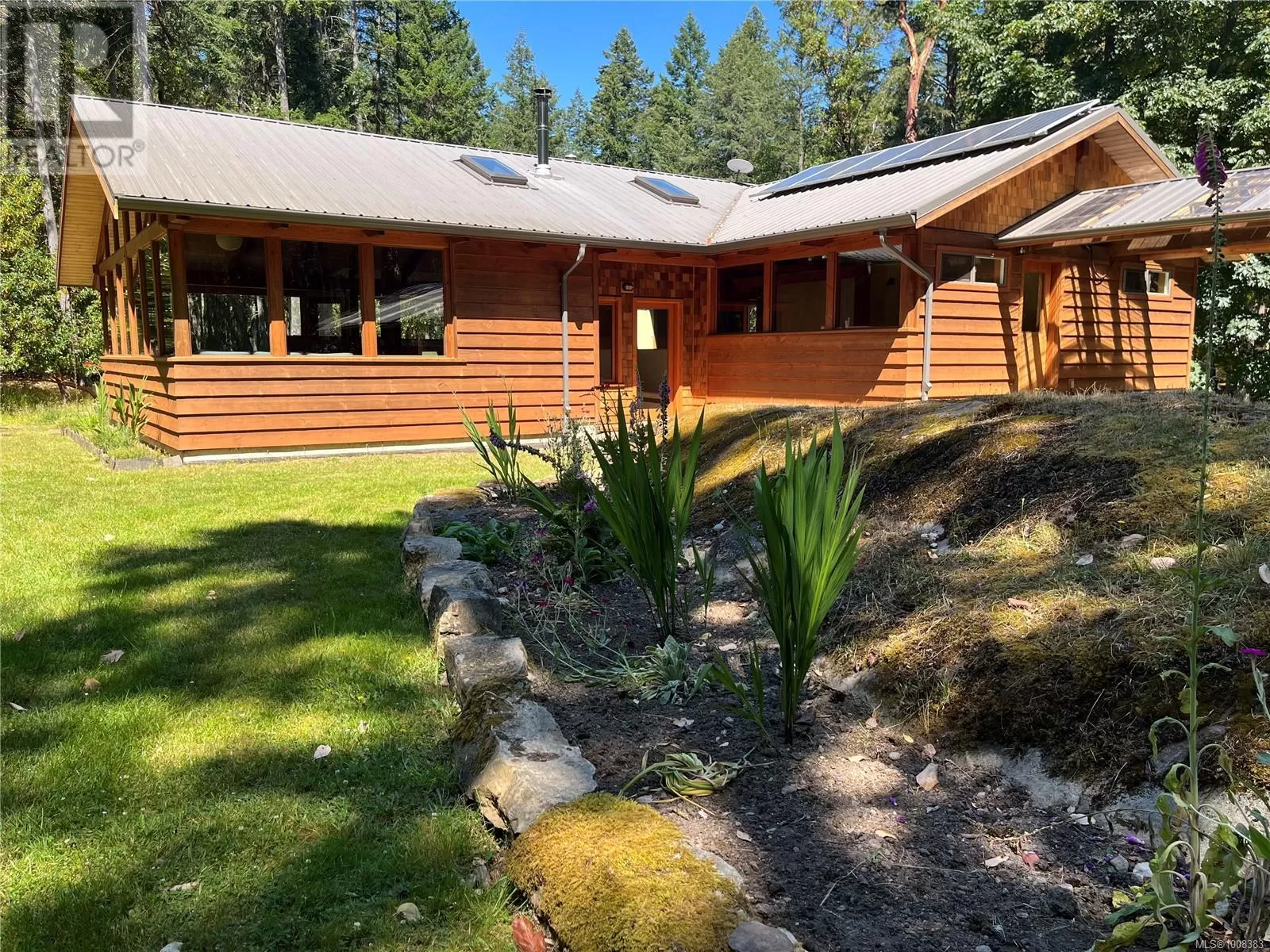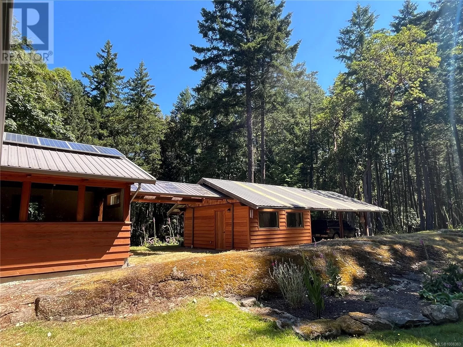 Discover the ultimate Gulf Island lifestyle with this exquisitely crafted timber frame home on 12 acres of pristine forested land on DeCourcy Island. Thoughtfully designed and beautifully built, the home features stunning custom Douglas Fir timber work, highlighting impeccable craftsmanship and attention to detail throughout. Located on the coveted sunny southwest side of the island, the property enjoys gentle ocean glimpses and serene surroundings. A rare blend of natural beauty and functionality, the land includes a large workshop, a cleared area for gardening, a pond, and a reliable drilled well. Most of the acreage remains untouched, preserving a majestic stand of mature Douglas Fir forest. Designed for self-sufficient living, the home is powered by modern off-grid systems, including Starlink internet connectivity, offering comfort without compromise. Zoning could allow for a four-parcel subdivision, creating a unique opportunity for investment or multi-generational living. DeCourcy Island is accessible by private boat and features a well-maintained private marina. Additionally, a regular floatplane service from Vancouver ensures convenient access year-round. Whether you're seeking a peaceful retreat, an off-grid lifestyle, or a long-term investment, this exceptional property offers it all. Donât miss your chance to own a piece of paradise in the Southern Gulf Islands. (id:27476)