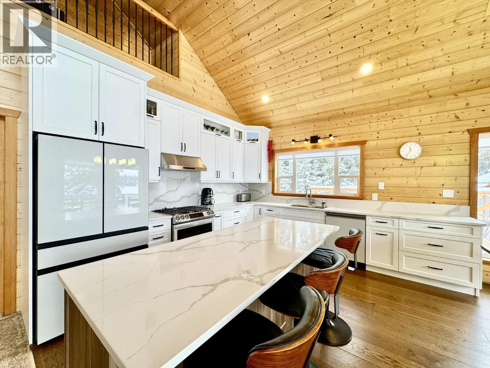 TURN KEY WATERFRONT ESTATE! Beautiful custom home situated on one of the nicest lots on Deka Lake! This 1.68 acre property is gated, fully flat and usable with 150 feet of southern exposed low bank waterfront - perfect for year round living or recreation. This home features open concept main floor living with vaulted ceilings and a wall of windows to enjoy your view. 3 bedrooms, 2 bathrooms, a recently updated high-end stunning Kitchen and a large loft currently used as a games room but could be additional bedrooms if needed. Bonus 296 sq ft (+ loft) cabin is fully serviced and great for guests. Outside you will find a new dock system, fenced yard, greenhouse and two 1360 sq. foot shops for your vehicles & toys, including a fitness centre with sauna. This is a real must see! (id:27476)